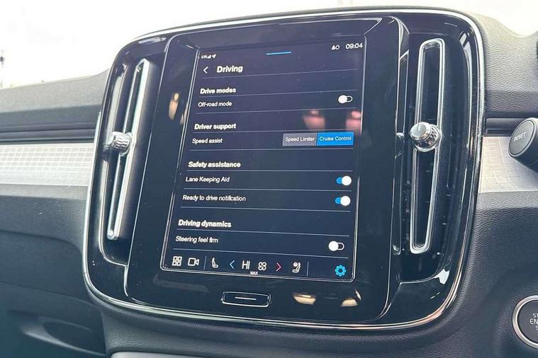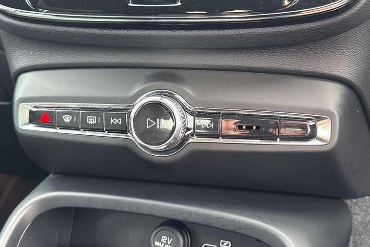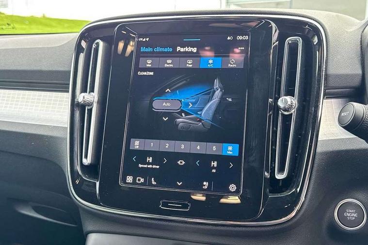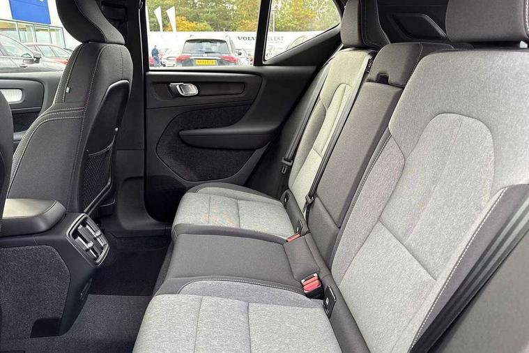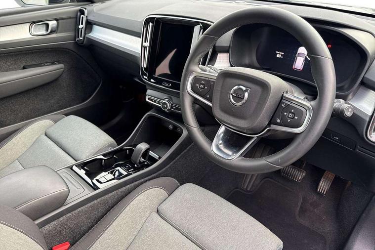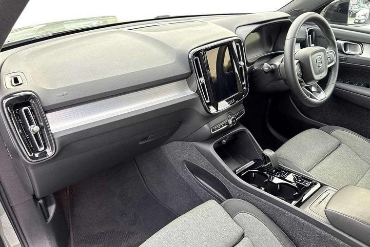12.3" Progressive Driver Display, 360 degree surround view parking camera with side proximity sensors, 9" centre console portrait touch screen, Adjustable steering wheel force, Bluetooth hands free telephone kit, Cruise control, E-call, Front park assist, Google automatic services - Nav with google maps, apple carplay/android auto, voice recognition with google assistant, Hands free power tailgate, Lane keep assist with driver alert control, Oncoming Lane Mitigation, Rear park assist, Speed limiter, Speed sensitive steering, Wireless/Inductive Mobile Phone Charging, Dynamic chassis, DAB Digital radio, High performance sound, 8 speakers/250W, front USB and 2 rear type C USB, Steering wheel mounted remote controls, Adaptive brake lights with high level LED brake lights, Auto dimming feature for exterior door mirrors, Auto dimming interior mirror, Automatic headlamp levelling, Automatic LED Headlights + Active high beam incorporating daytime running lights, Front aluminium tread plates, Front and rear electric windows, High gloss black front and rear skid plate, High gloss black mesh front grille with high gloss black surround, High gloss black window trim, Home safe and approach lighting, Integrated roof rails in high gloss black, LED front fog lights, Puddle lights, Rain sensor with automatic windscreen wiper activation, Rear side wing doors, Rear wiper, Roof antenna, Roof spoiler, Visible VIN plate, 12V socket in front tunnel console and luggage compartment, 2-Zone electronic climate control with CleanZone air quality system and pollen filter, 3 seat bench in 2nd row, 3 Spoke tailored steering wheel with chrome trim, 60/40 versatile split folding rear seat, A-pillar parking ticket holder, Ambient front door and instrumental panel lighting, Centre console cupholders and storage, Flexible load floor and grocery bag holder, Floor mats, Front door pocket and front cupholder illumination, Front footwell illumination, Front headrests, Front reading light and theatre lighting, Front seat cushion extensions, Front tunnel pocket, Glovebox bag hook, Heated front seats, Height adjustable passenger seat, Height/reach adjustable steering column, High gloss centre tunnel deco, Illuminated glovebox, Illuminated luggage compartment, Illuminated tailgate, Illuminated vanity mirrors, Integrated waste bin, Isofix attachments on outer rear seats, Load protection net, Multi directional lumbar support, Power driver seat with memory + exterior mirrors memory, Rear armrest / integral cup holders / storage tray, Rear headrests, Rear reading and courtesy lights, Single front passenger seat, Underfloor cargo storage, Climate pack without heated front seats - XC40, 3x3 point rear seatbelts, City safety with steering support with Pedestrian + cyclist + front collision warning with full auto brake and rear auto brake, Drivers knee airbag, Dual stage driver/passenger airbags, Electronic parking brake with auto hold, First aid kit, Front and outer rear seatbelt reminder and pretensioners, Front seats SIPS airbags, Hill descent control, Hill start assist, Inflatable curtain, Passenger airbag cut-off device, Power child locks on rear doors, Road sign information display, Run off Road Mitigation, Run off Road Protection, SIPS (Side Impact Protection System), Slippery road and hazard light alert, Stability and Traction Control with Spin control, Engine Drag Control and Corner Traction Control, Tyre pressure monitoring system, Vehicle deceleration control with Anti-lock Brake System, Electronic Brake Distribution and Emergency Brake Assist, Warning triangle, WHIPS whiplash protection system - front, Anti-theft alarm including immobiliser/volume sensor + level sensor, Key integrated remote control central locking + fuel flap with deadlocking system and auto open/close power windows, Keyless drive includes keyless entry and keyless start, Locking wheel nuts,