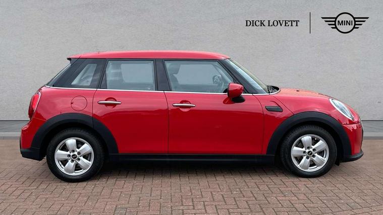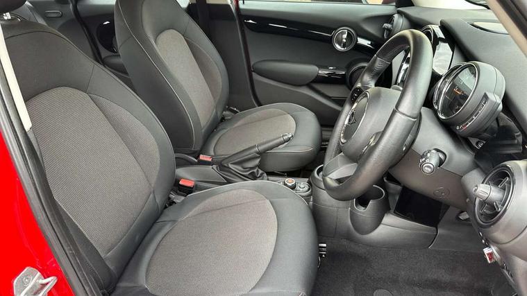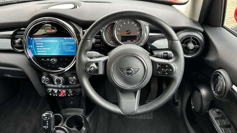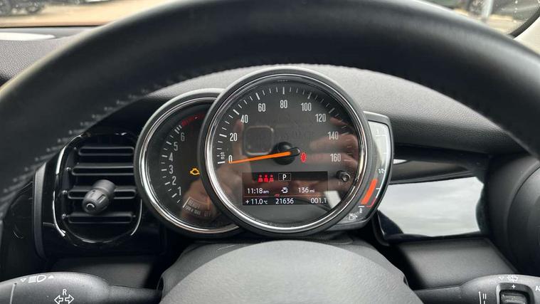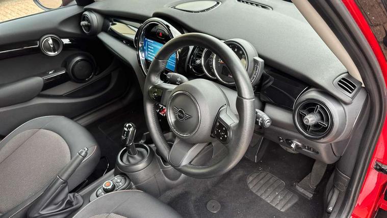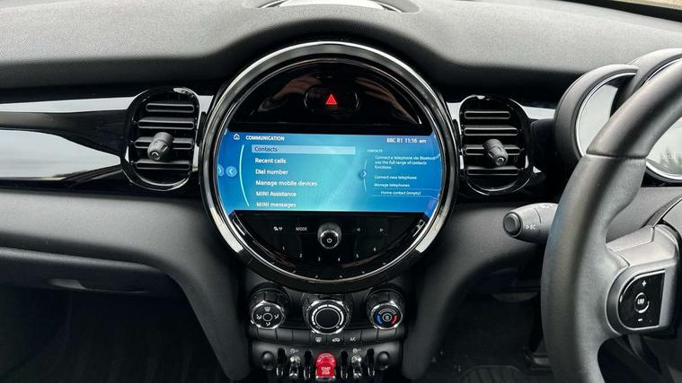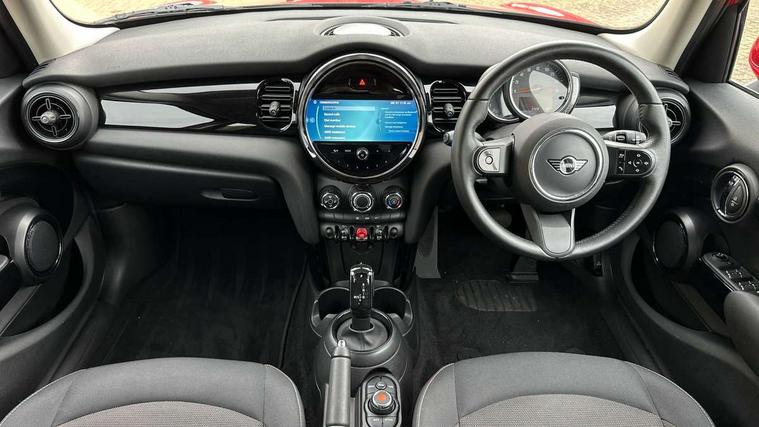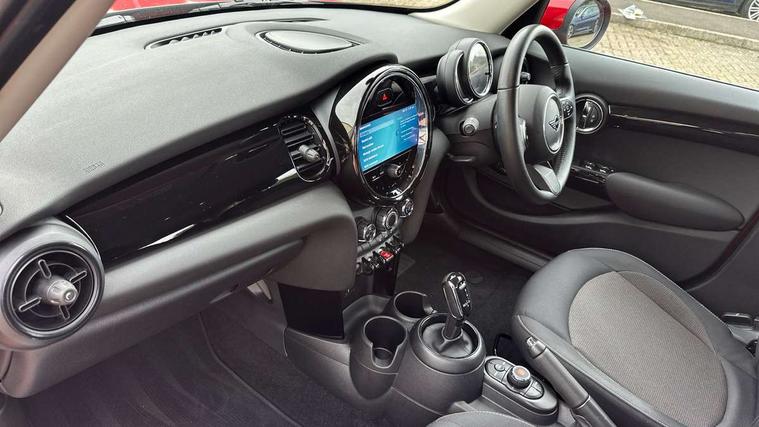Automatic start/stop function with brake energy recuperation, Compatible mobile phone bluetooth with audio streaming, Electro-mechanical speed dependant steering assistance, Flexible car sharing preparation, Instrument cluster, Mini E-call, MINI TeleServices, On board computer, Service interval indicator, Double Vanos system, Fully variable valve control, Gear change indicator display, High precision injection, Performance Control, Steptronic transmission with double clutch, 8.8" touchscreen with LED ring, FM tuner and DAB digital radio, Automatic headlight activation switch, Body colour fuel filler cap, Chrome border high gloss black slats radiator grille, Dynamic brake lights, Electric front+rear windows, Exhaust tailpipe on left with chrome finisher, Heated rear window, Heated windscreen washer jets, LED headlight with closed ring and daytime driving lights, Metal door sill strips with MINI imprint, Model logo Cooper on right of tailgate, Rain sensor window wipers, Rear fog lights, Rear LED lights with union jack design, Rear window wiper, Side scuttle panel with integrated indicator, Sun/heat protection glass, White indicator lenses, 12V Accessory socket in centre console, 4 lashing eyes in luggage compartment, 60/40 split folding rear seat, Carbon black colour line - Knee roll and door armrest, Chrome interior highlights, Cupholders, Front and rear head restraints, Front and rear isofix with front passenger airbag deactivation, Glove compartment, Height and length steering column adjustment, Interior lighting with 12 different colours across the dashboard, underneath door bezel with illuminated laser-engraved design on central display, Leatherette gearshift lever and handbrake gaiters, LED reading lights, vanity mirror lights, front foot well light and spotlight on front seats, Manual air conditioning, Mechanical seat adjustment - forward/back & backrest for front seats and driver seat height adjust, Multifunction steering wheel, Satellite grey headlining including grab handles and clothes hooks, Sport leather steering wheel with speed limiter and audio/communication controls, Storage compartments in doors, Sunvisors with vanity mirrors, Tool kit, Velour floor mats, 3 point seatbelts on all five seats, 6 Airbags - front, side, head and seat belt tensioners, Anti-lock braking system (ABS), DSC - Dynamic Stability Control, Front and rear disc brakes, Hill start assist, Single tone fanfare horn, Tyre pressure monitoring system, Alarm system with tilt sensor, monitoring doors, bonnet interior and tailgate, Electronic vehicle immobiliser, Start/stop toggle with keyless go, Piano black interior trim, Tyre repair kit,