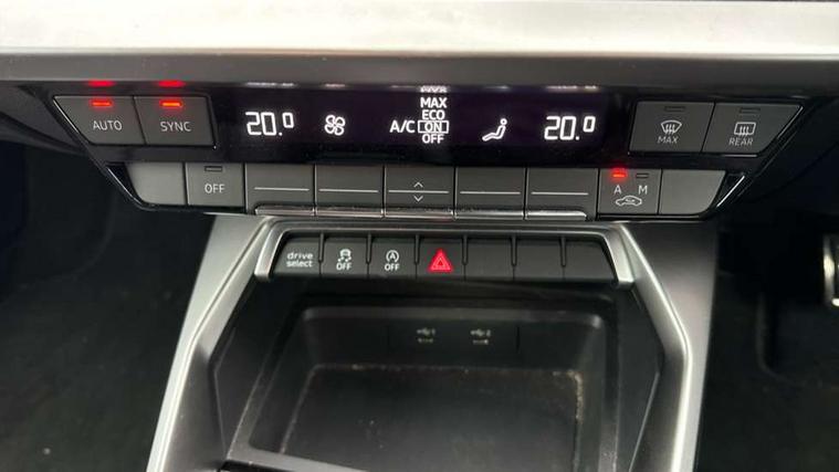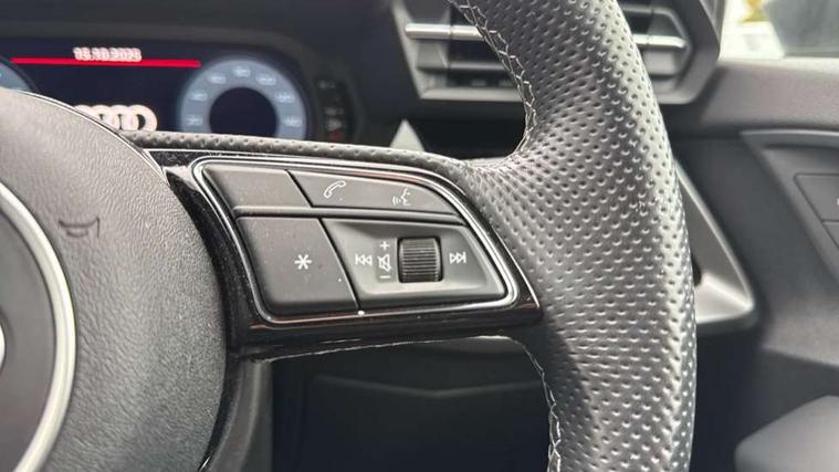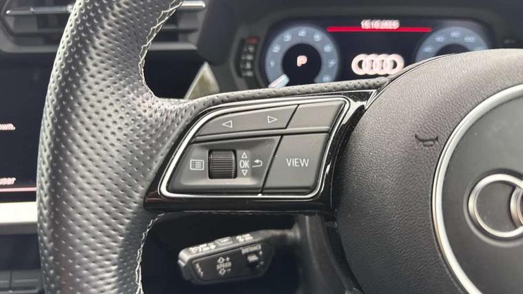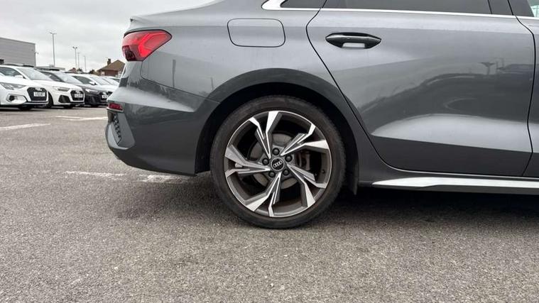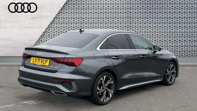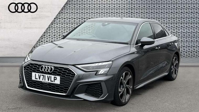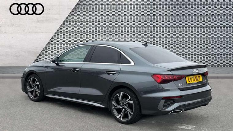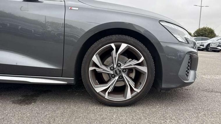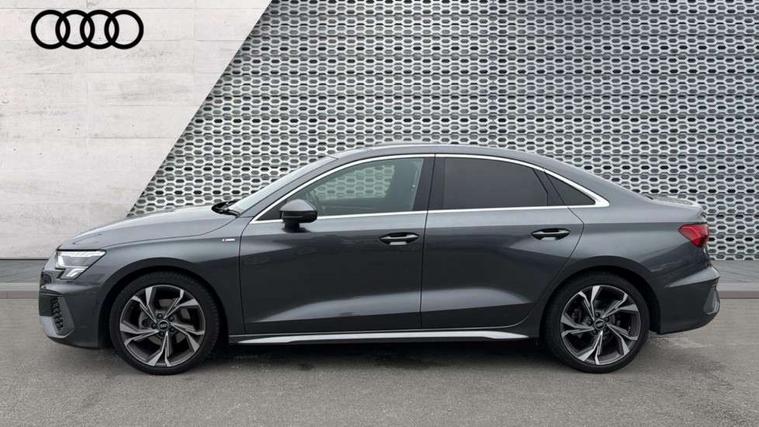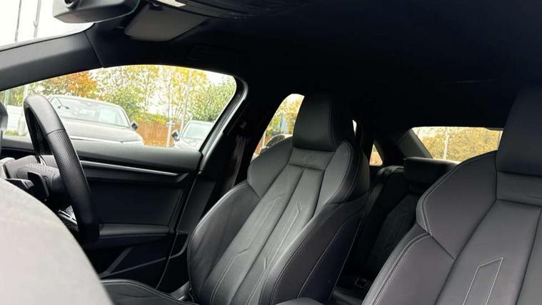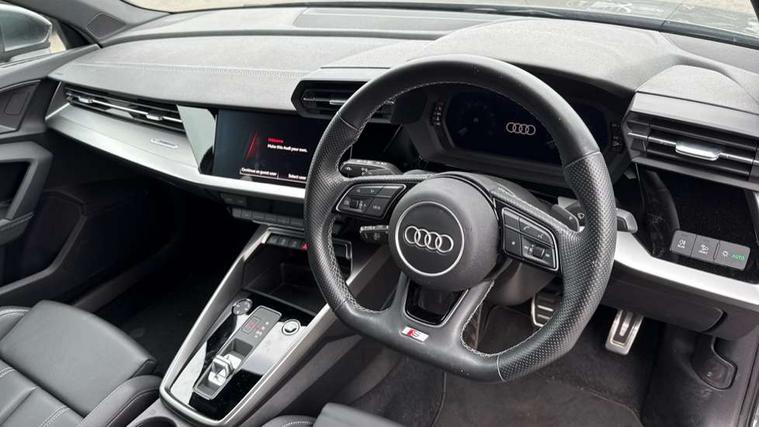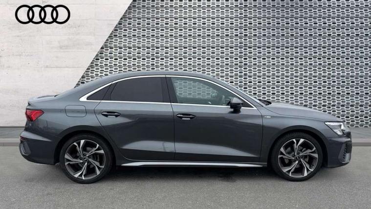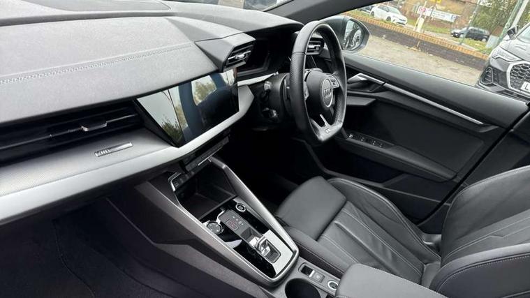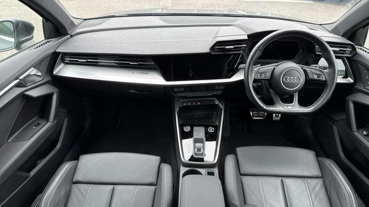 Audi connect emergency call and service, Audi drive select (Auto, Comfort, Dynamic, Efficiency and Individual), Audi smartphone interface, Audi Virtual Cockpit - 10.25" digital and colour instrument cluster, Automatic start/stop system with recuperation, Bluetooth interface, Collision avoidance assistant, Electromechanical power speed sensitive steering, Lane departure warning system, MMI Navigation Plus with high resolution 10.1" colour touch screen display, Service indicator, Voice control system with natural language interaction, 2x USB Type C ports (for charging and data transfer), 6 passive loudspeakers, CD player, DAB Digital radio, 3rd brake light, Acoustic glass windscreen, Aluminium window trim, Auto dimming frameless rear view mirror, Electrically adjustable/heated/folding/auto dimming door mirrors with integrated LED indications + kerb view function for passenger side, Front electric windows, Illuminated door sills with aluminium inserts at the front with S logo, LED daytime running lights, LED headlights with LED rear lights and dynamic rear indicators, Light and rain sensors, Model and engine designation badges at rear, Privacy glass - dark tinted rear window, rear door and side windows, Rear electric windows, S line bumpers, S roof spoiler, 12V socket and storage compartment in front centre console, 40/20/40 split folding rear seat bench with cupholder, Black cloth headlining, Dual zone electronic climate control, Front and rear centre armrest in leather, Front and rear headrests, Front/rear floor mats, Height and reach adjustable steering wheel, Interior lighting - glove compartment light and right hand side, Luggage compartment floor covering, Manual boot compartment lid, Manually adjustable front sport seats, Seat side bolsters, Stainless steel pedals and front footrest, Twin leather upholstery with front sports seats S embossed logo, Aluminium interior elements pack - A3, S line styling pack - A3 Saloon, 3x3 point rear seat belts, Driver and front passenger airbag with passenger airbag deactivation, Electronic Stabilisation Control (ESC) including ABS, ASR and EDL, First aid kit with warning triangle and 2 safety vests, Front side airbags with head airbags and interaction airbag, Hill hold assist, Pre-sense front with pedestrian and cyclist detection, Seatbelt monitoring, Tyre pressure loss indicator, Anti theft alarm, Anti-theft wheel bolts, Electronically operated child lock, Immobiliser, Remote control central locking, Aluminium air vent surrounds, Aluminium trim elements, Dark spectrum aluminium inlays, accent surfaces in the dashboard and centre console in platinum grey silk effect paint finish,