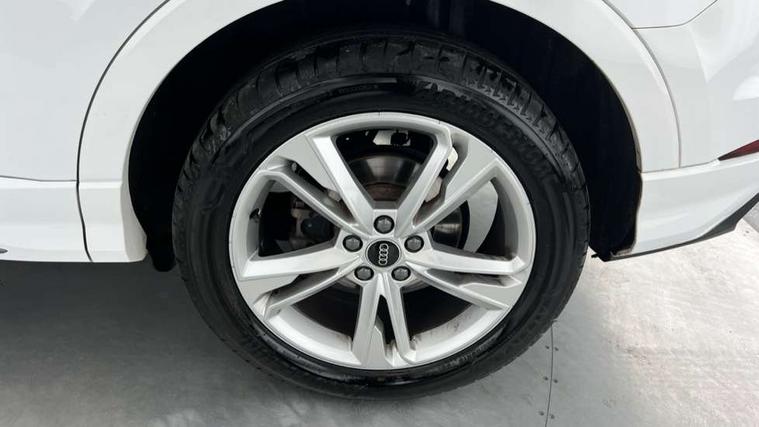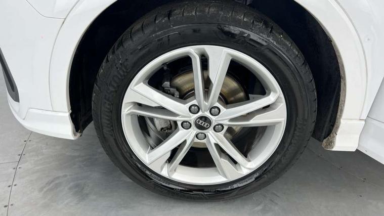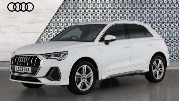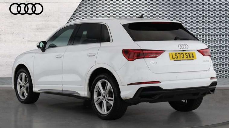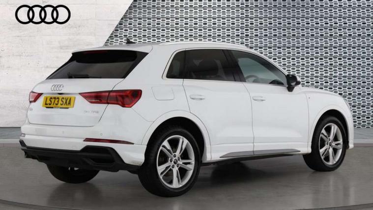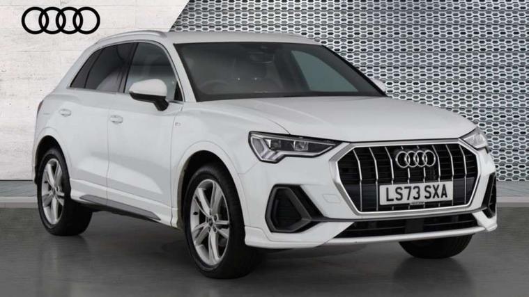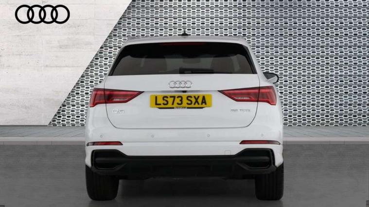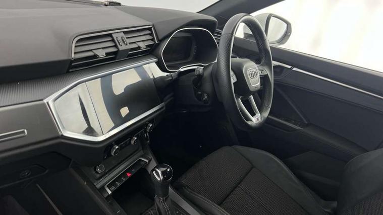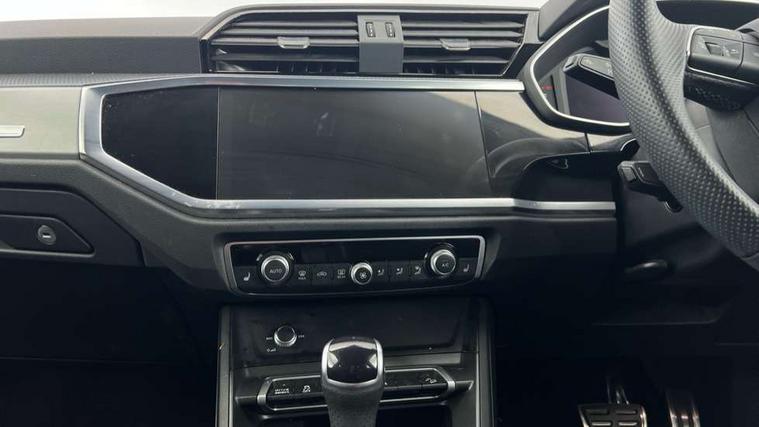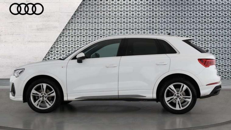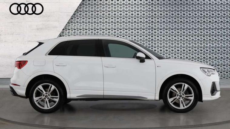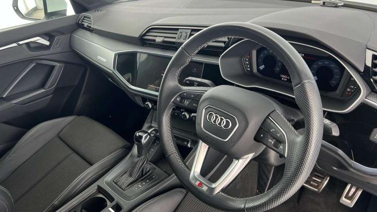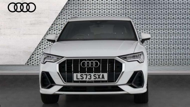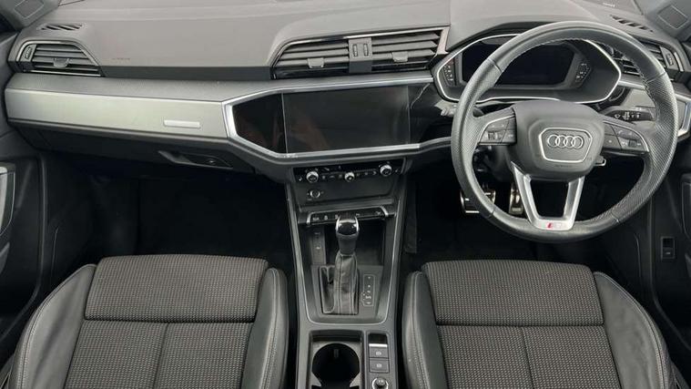 Amazon alexa Integration, Audi drive select, Audi lane departure warning, Audi smartphone interface includes wireless Apple carplay/Android Auto, Audi Virtual Cockpit - 10.25" display, Bluetooth interface, Camera based traffic sign recognition, Legal emergency call, MMI Navigation Plus with high resolution 10.1 inch touchscreen colour display, Power operated tailgate, Progressive steering, Service interval indicator, Start stop system with recuperation, Voice control system with natural language interaction, Sports suspension, 2 USB-C ports with charge and data functions, 6 passive loudspeakers, DAB digital radio module, Acoustic windscreen, Aluminium roof rails, Aluminium window trim, Anthracite black radiator grille, Auto dimming frameless rear view mirror, Body colour front spoiler blade, Body coloured bumpers, Electrically folding, adjustable and heated door mirrors with integrated LED side indicators and kerb view function for passenger side, Front and rear electric windows, Front fog lights, Front side air inlets in matt platinum grey, Grille vertical bars in aluminium silver/Matt, High gloss black finish B and C pillars, LED Dynamic rear indicators, LED headlights with LED daytime running lights, LED rear lights, LED third brake light, Privacy glass dark tinted rear and rear-side windows (from B-pillar backwards), Rain and light sensors, Rear diffuser grille in grained matt black, Rear diffuser strip in matt anthracite black, Rear side wing doors, Rear wiper, S line badges on front wings, S Line front and rear bumpers, Side skirt insert in matt Platinium grey, Variable front intermittent wipers, 12V socket in rear centre console, 3 seat bench in 2nd row, 3 spoke leather multifunction steering wheel features S badging and grips in perforated leather with contrast stitching, 40:20:40 folding with manual adjustment for 60:40 forwards/backwards position and backrest angle, Adjustable rear seat bench/backrest with centre armrest and cupholder, Black cloth headlining, Dual zone electronic climate control, Front and rear black floor mats with contrast stitching in rock grey, Front and rear headrests, Front and rear roof module including reading lights, Front centre armrest, Glove compartment lighting, Height and reach adjustable steering wheel, Illuminated door sill trims with S logo, ISOFIX child seat mounting for front passenger with airbag deactivation and outer rear seat including top tether attachment point for outer rear seats, Luggage compartment light, Manual front seats with height adjustment, Perforated leather gearknob, Single front passenger seat, Stainless steel luggage compartment sill finisher, Stainless steel pedals, Ambient lighting pack - Q3, Non smoking pack - Q3, 3x3 point rear seatbelts, 6 airbags - Driver, front passenger, curtain and side windows, Audi pre-sense front with pedestrain and cyclist recognition, Electrically operated child locks on rear doors, Electromechanical parking brake, Electronic stabilisation control including ABS, ASR and EDL, Front seatbelt reminder, Hill descent control, Hill hold assist, Pre sense basic, Seatbelt monitoring, Tyre pressure warning, Warning triangle and first aid kit, Anti theft alarm, Anti theft wheel bolts, Immobiliser, Remote central locking, Aluminium look interior elements, Dark matt brushed aluminium inlay, Detail dashboard around MMI touch colour display in glass look, black with surround in aluminium look, Leatherette door armrest,