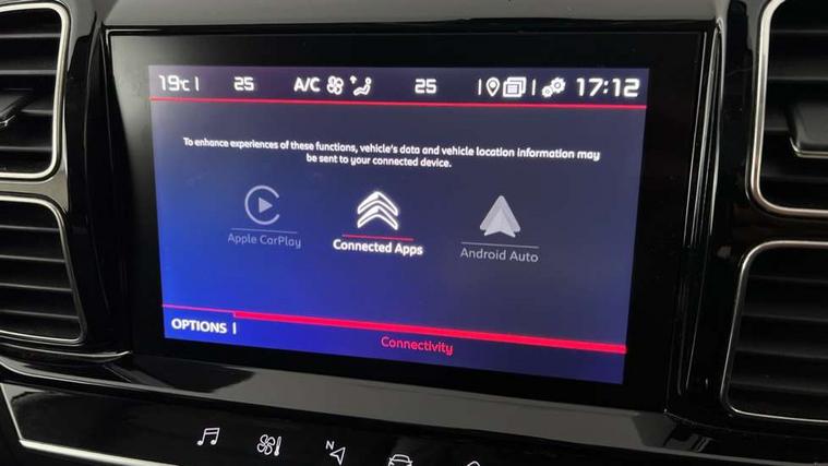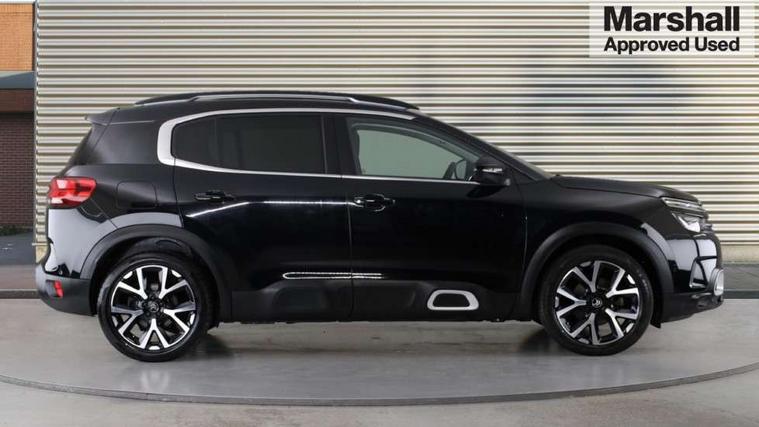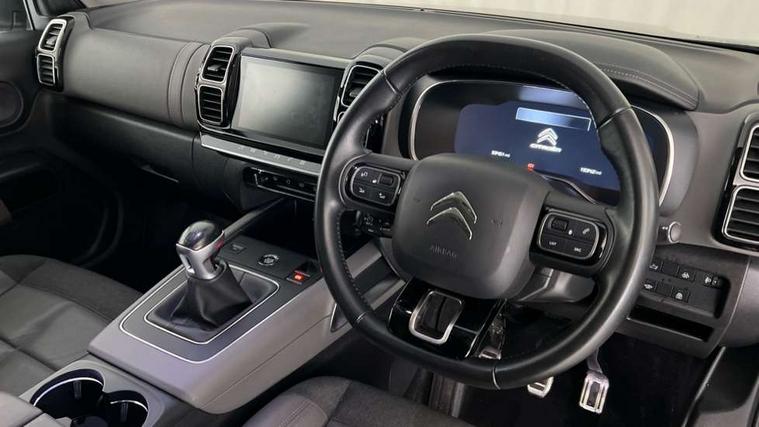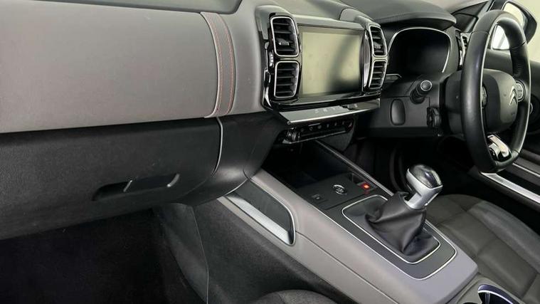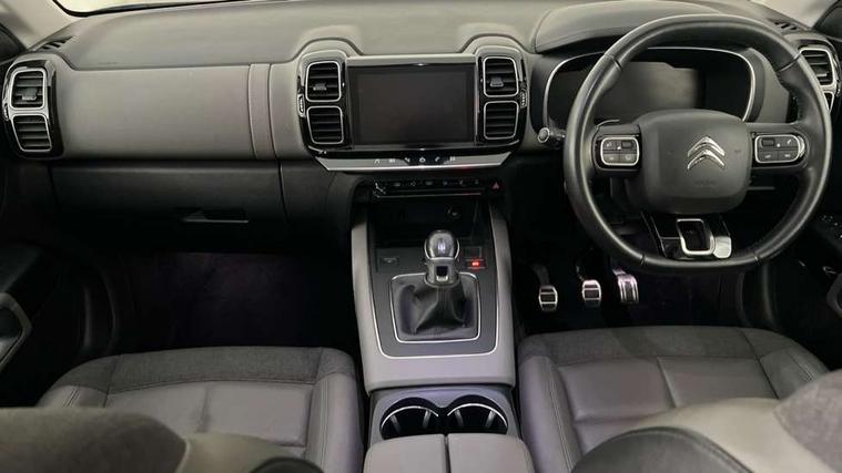 12.3" customisable TFT instrument display, Active blind spot monitoring system, Active lane departure warning system, Bluetooth telephone facility, Central 8" capacitive touch screen, Citroen connect box emergency assist system, Citroen connect Nav with connect box, Citroen connected CAM, Coffee Break Alert, Driver attention alert system, Eco+ mode, Electric power steering, Extended traffic sign recognition and recommendation, Exterior temperature indicator with ice warning, Foot operated hands free tailgate includes keyless entry and start, Gear efficiency indicator, Mirror screen with mirror link, apple carplay and android auto, Multi function trip computer, Park assist function with auto parallel and bay parking, Programmable cruise control and speed limiter, Rear parking sensors, Reversing camera displayed on the central screen, Speed limit recognition and recommendation, Suspension with Progressive Hydraulic Cushions, 2 USB sockets, Auxiliary input socket, DAB (Digital Audio Broadcasting), AM/FM and MP3 compatible radio with two tweeters and four speakers, Voice recognition for radio, navigation and telephony features, 3D effect LED rear lights, Acoustic laminated front windows, Acoustic laminated windscreen with rain and brightness sensors, Auto dimming electrochrome rear view mirror, Automatic hazard light activation upon heavy brake application, Automatic headlight activation via windscreen mounted sensors, Automatic triggered rear windscreen wiper in reverse gear, Automatic windscreen wipers, Body colour door handles, C5 Aircross monogram on boot rear, Citroen logo and monogram on rear, Dark tinted rear windows and rear windscreen, Electric, heated and folding door mirrors with integrated LED indicator and kerb puddle light, Front fog lights with cornering function, Front windscreen wiper with magic wash cleaning system, Gloss black finish on A and B pillar and aerodynamic trim, Gloss black upper and matte black lower grille, Guide me home headlight function, Halogen headlights, Halogen rear fog lights, Halogen rear number plate lights, Headlights left on audible warning, Heated rear windscreen with integrated antenna, High level LED centre brake light, Intelligent high beam headlights (auto dipping main beams), LED daytime running lights, LED front indicators, Longitudinal roof bars, Matte black lower rear skirt, Matte black rear bumper facia, Matte black side sill with anodised silver colour touch, Matte black wheel arch extensions, One touch electric front/rear windows with pinch protection, Painted front bumper, Painted rear bumper, Panoramic opening glass roof with electric blind, Roof coloured rear spoiler, Satin chrome C signature, Satin chrome window surround, Twin exhaust effect trim, 12V socket in boot, 12V socket in cabin, 2 Central illuminated cup holders, 2 Position boot floor, 2 way lumbar adjustment for driver, 2x Rear coat hooks, 3 Independent full size rear seats with adjustable recline angle, 3x Grab handles retractable with damping, Advanced comfort front and rear seats, Air recirculation when reverse gear is engaged, Aluminium pedals and foot rest, Anti odour and pollen filter, Central front armrest with butterfly wing opening and illuminated storage compartment, Dimmable white mood lighting, Dual zone automatic climate control, Electric driver seat adjustment (height, fore/aft and backrest angle), Fixing rings 4 in load compartment, Front + rear carpet mats, Front and rear LED welcome/LED rear reading lights, Front door pockets store up to 1.5L bottle and A4 note pad, Front seat back map pockets, Height and reach adjustable leather steering wheel with 2 control zones, Hinged rear parcel shelf, Isofix child seat preparation for front passenger seat, Leather effect interior door handles, Leather steering wheel with satin chrome inserts and radio controls, Manual passenger seat adjustment (height, fore/aft and backrest angle), Multi function steering wheel, Open central storage area below touch screen, Open central storage compartment, Rear centre console ventilation system, Rear door pockets store up to 0.5L bottle, Rear passenger air vents, Satin chrome digital instrument panel and touchscreen trim, Satin chrome gear lever, Satin chrome interior door handles, Seatbelt not fastened audible and visual alert for front seats, Seatbelt unfastened on the move audible and visual alert for front and rear seats, Smooth opening flocked glove box with lighting, Stainless steel front Citroen embossed sill scuff plates, City camera pack with front parking sensors - C5 Aircross, Safety plus pack - C5 Aircross, 2x Isofix child seat fitting on outer rear seats, 3x Rear three point retractable seatbelts with pretensioners and force limiters in the outer rear seats, ABS/EBD, Adaptive driver and front passenger airbags with passenger airbag deactivation function, Collision risk alert, Driver and front passenger side airbags, DSC (Dynamic Stability Control) and ASR (Electronic Anti-skid System), Electric child locking functionality on rear windows and doors, Electronic parking brake, ESP including traction control and stability programme, Front and rear curtain airbags, Front optimised safety headrests and 3 x rear retractable headrests with height adjustable, Front three point retractable seatbelts height adjustable with pre tensioners and force limiters, Front ventilated disc brakes and rear disc brakes, Hill start assist, Post collision safety brake, Two tone horn, Tyre under inflation indicator, Alarm - perimetric and volumetric alarm with anti-lifting mechanism, Automatic door locking, Electronic code immobiliser, Remote central locking + deadlocks, Gloss black touch screen surround with integrated tactile buttons and chrome finisher, Leather effect dashboard facia, Satin chrome air vent decors, Soft touch matte dashboard with grey insert,