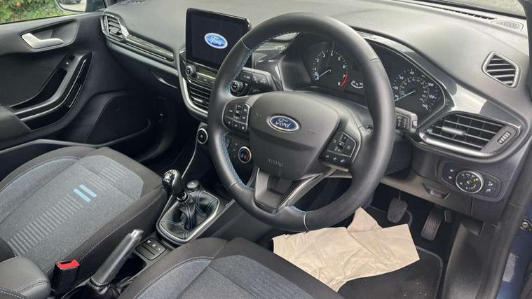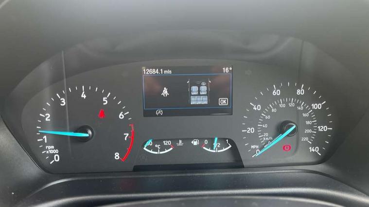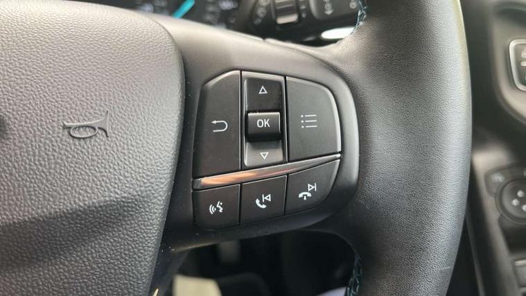 4.2" Colour TFT Ice blue illumination analogue cluster, Driver alert system, Electric power steering, Ford easy fuel, Lane keep assist, Lane keeping aid, Rear parking distance sensors, Selectable drive modes (Normal, Sport, Track), Trip computer, Rough road suspension with increased ride height adjust, 3rd brake light, Auto high beam, Automatic headlights, Body colour bumpers, Body coloured electrically operated with side indicators, Electric front windows/one touch facility, Electric rear windows, Quickclear heated windscreen, Rain sensing wipers and auto dimming rear view mirror, Rear privacy glass, Rear side wing doors, Rear wiper, Rugged bodystyling kit with active front wing badges, 3 rear headrests, 3 seat bench in 2nd row, Adjustable head restraints, Centre console with opening armrest, 2x cupholders, 12v and USB, Cloth upholstery with dark blue stitching, Leather gear knob, Manual 2 way passenger seat adjust, Manual 4-way driver seat adjust, Manual air conditioning, Premium floor mats, Sensico wrapped steering wheel, Single front passenger seat, 3 point seatbelts on all rear seats, Electronic stability control with hill start assist, Front and rear seat belt warning, Manual child lock in rear doors, Tyre pressure monitoring system, Keyless start with 'Ford Power' starter button, MyKey system, Remote central locking, Thatcham alarm with power door dead locks, 17" 5 spoke alloys with rough metal machined finish,