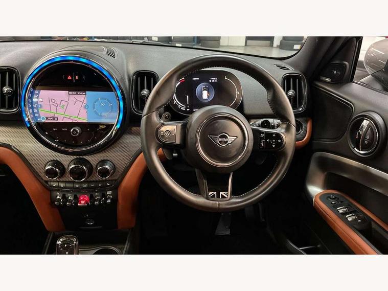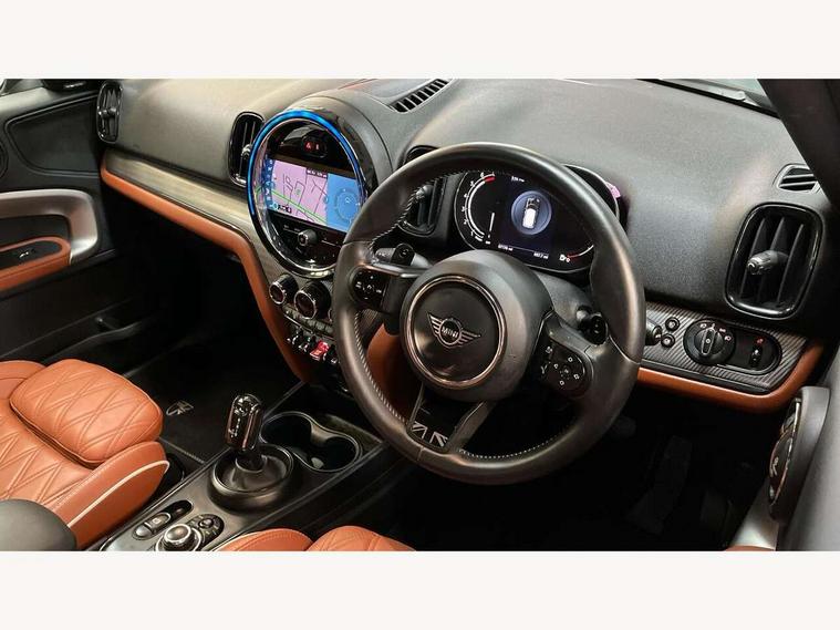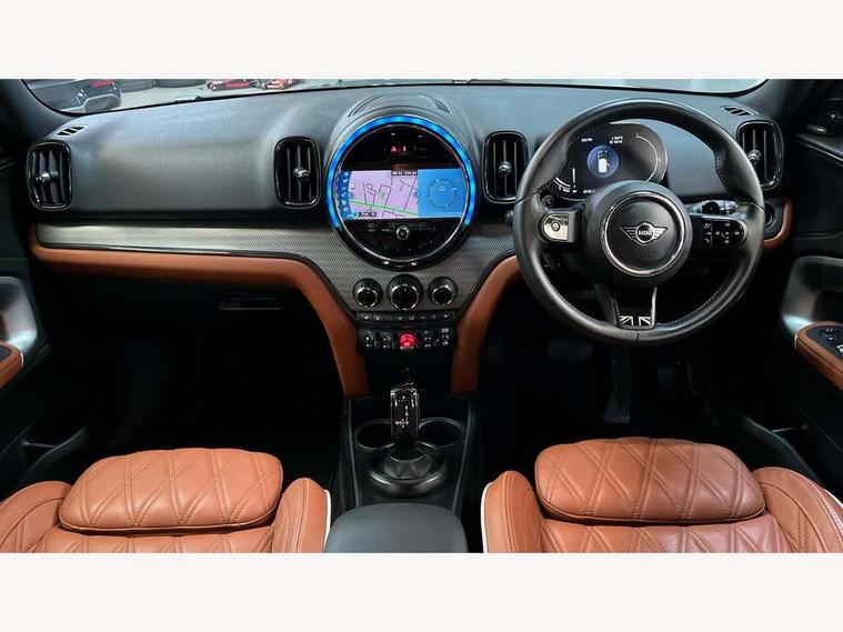 Active Guard incl speed limiting and lane departure functions with auto steering, and front collision warning with brake intervention, Automatic start/stop function with brake energy recuperation, Electro-mechanical speed dependant steering assistance, Instrument cluster, MINI Driving Modes - centre toggle switch to control driving setting (sport, mid and green), Mini E-call, MINI TeleServices, On board computer, Double Vanos system, Fully variable valve control, High precision injection, Performance Control, Steptronic sport transmission with double clutch and steering wheel paddles, FM tuner and DAB digital radio, 3rd brake light, Bonnet scoop, Chrome fuel filler cap, Day time driving lights, Dynamic brake lights, Electric windows, Heated rear window, Heated windscreen washer jets, LED fog lights, Metal door sill strips with Cooper S imprint, MINI yours exterior badge in C-Pillar, driver and passenger side, Model logo, Model logo on Tailgate, Rain sensor with auto headlights, Rear fog lights, Rear side wing doors, Rear window wiper, Side scuttle panel with integrated indicator, Split rear doors, Sun/heat protection glass, White indicator lenses, 12V socket in centre console, 3 seat bench in 2nd row, 360L luggage compartment capacity, 4 lashing eyes in luggage compartment, 40:20:40 split folding rear seats, Anthracite headlining with grab handles and clothes hooks, Chrome interior highlights, Colour line - Carbon black, Cupholders, English handbook, Front headrests, Glove compartment, Height and length steering column adjustment, Interior lighting with 12 basic colours selectable via toggle switch in roof, Isofix rear child seat preparation, Leather gearshift lever and handbrake gaiters, LED reading lights, vanity mirror lights, front foot well light and spotlight on front seats, MINI Yours fine walk nappa leather steering wheel with contrast stitching in silver and MINI Yours badge, Multifunction steering wheel, Rear headrests, Single front passenger seat, Storage compartments in doors, Sunvisors with vanity mirrors, Excitement pack - Countryman, Navigation plus pack - Countryman, 2 tone horn, 3 point seatbelts on all seats, 6 Airbags - front, side, head and seat belt tensioners, Anti-lock braking system (ABS), DSC - Dynamic Stability Control, Electronic handbrake, Front and rear disc brakes, Hill start assist, Manual rear child locks, Tyre pressure monitoring system, Alarm system with tilt sensor, monitoring doors, bonnet interior and tailgate, Auto drive away locking, Deadlocking function, Electronic vehicle immobiliser, Locking wheel bolts, Start/stop toggle with keyless go, Tool kit,
