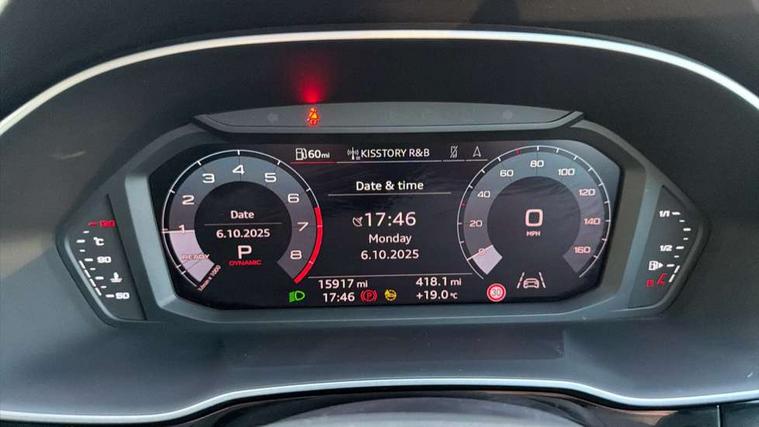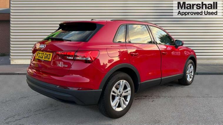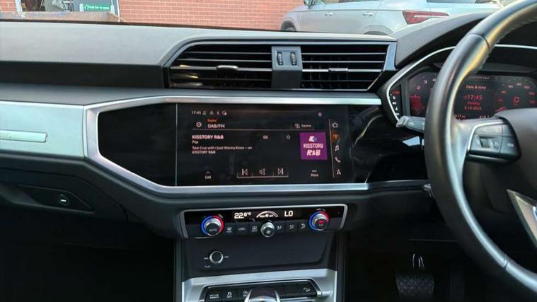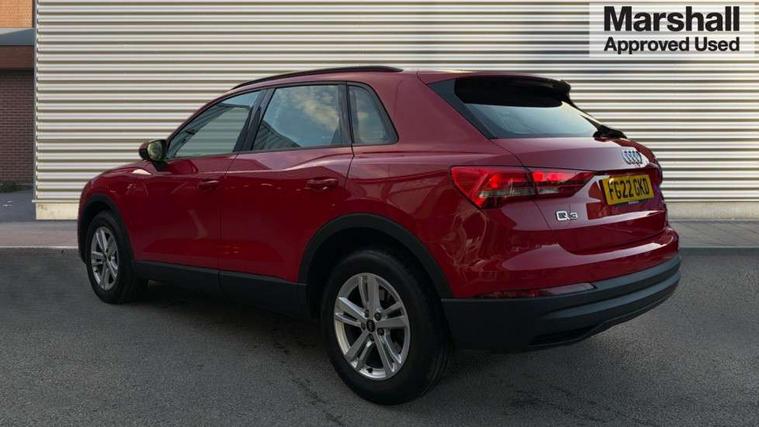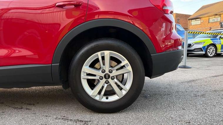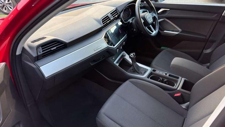 Amazon alexa Integration, Audi connect safety and service (e-call), Audi drive select, Audi lane departure warning, Audi Virtual Cockpit - 10.25" display, Bluetooth interface, Camera based traffic sign recognition, MMI Navigation Plus with high resolution 10.1 inch touchscreen colour display, Power operated tailgate, Progressive steering, Service interval indicator, Smartphone interface includes wireless Apple carplay/Android Auto, Start stop system with recuperation, Voice control system with natural language interaction, 48V Mild hybrid technology, Standard suspension, 2 USB-C ports with charge and data functions, 6 passive loudspeakers, DAB digital radio module, Acoustic windscreen, Auto dimming frameless rear view mirror, Black roof rails, Body colour door mirrors, Diffuser in grained anthracite, Electrically folding, adjustable and heated door mirrors with integrated LED side indicators and kerb view function for passenger side, Exterior bumper with wheel arch trims and side sill trims in grained black matt, Front and rear electric windows, Grained radiator protective grille, Halogen rear lights, LED headlights with LED daytime running lights, Rain and light sensors, Rear side wing doors, Rear wiper, Third brake light, Variable front intermittent wipers, 12V socket in rear centre console, 3 seat bench in 2nd row, 3 spoke multi-function leather steering wheel, 40:20:40 folding with manual adjustment for 60:40 forwards/backwards position and backrest angle, Dual zone electronic climate control, Front and rear floor mats, Front and rear headrests, Front and rear roof module including reading lights, Front centre armrest, Glove compartment lighting, Height and reach adjustable steering wheel, ISOFIX child seat mounting for front passenger with airbag deactivation and outer rear seat including top tether attachment point for outer rear seats, Luggage compartment light, Lunar silver cloth headlining, Manual front seats with height adjustment, Single front passenger seat, Stainless steel luggage compartment sill finisher, Non smoking pack - Q3, 3x3 point rear seatbelts, 6 airbags - Driver, front passenger, curtain and side windows, Audi pre-sense front with pedestrain and cyclist recognition, Electromechanical parking brake, Electronic stabilisation control including ABS, ASR and EDL, Front seatbelt reminder, Hill descent control, Hill hold assist, Manual child lock in rear doors, Pre sense basic, Seatbelt monitoring, Tyre pressure warning, Warning triangle and first aid kit, Anti theft alarm, Anti theft wheel bolts, Immobiliser, Remote central locking, Detail dashboard around MMI touch colour display in glass look, black with surround in aluminium look, Micrometallic silver inlay, 17" 5 twin spoke design alloy wheels, Tool kit, Tyre repair kit,