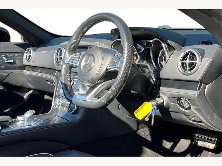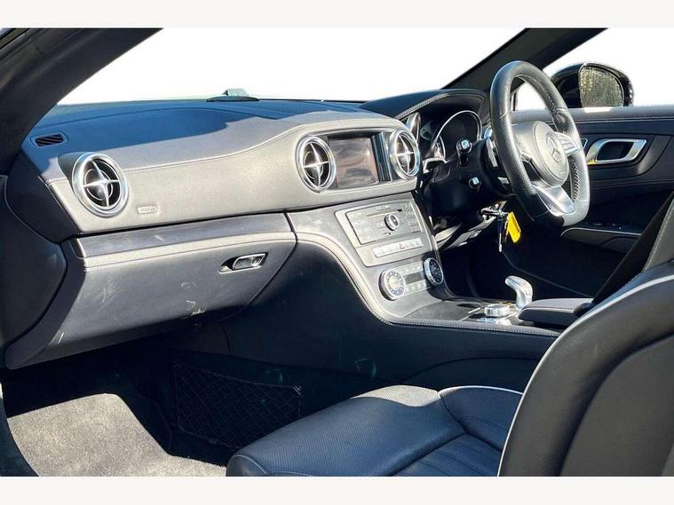 Active park assist with parktronic system, Attention assist, Bluetooth interface for hands free telephone, Chequered flag design instrument cluster, COMAND HDD Navigation with radio/CD/DVD/MP3, 7" screen, traffic updates, speed limit assist, linguatronic voice control, SD card slot + online, Direct steer system with speed dependent servo assistance, DYNAMIC SELECT with a choice of driving modes (ECO, Comfort, Sport, Sport+ and Individual), Outside temperature gauge, Service indicator (ASSYST), Adaptive damping system, DAB Digital radio, 2 Electric windows, AMG body styling, Auto dimming interior and driver's door mirror, Automatic headlights, Body colour bumpers, Body coloured front splitter, Electric folding door mirrors, Green tinted glass, Heated rear window with timer, Intelligent light system with LED headlights, active light function, cornering lights and adaptive high beam assist, LED daytime running lights, Magic vision control, Rain sensor windscreen wipers, 3 spoke multi-function sports steering wheel, AMG floor mats, Black roof lining, Electric adjustable front seats, Gearshift paddles, Neck-pro front headrests, THERMOTRONIC automatic climate control, Memory package - SL Class, ABS with Brake Assist, Active pedestrian safety system, Adaptive brake system, Automatic roll over protection, Driver and passenger head and side airbags, Dual stage driver/passenger airbags, Electronic parking brake, ESP with ASR, Hill hold function, Passenger airbag deactivation system, Pre-Safe anticipatory safety system, Tyre pressure monitoring system, Warning triangle and first aid kit, Alarm system/interior protection/immobiliser, Remote central locking, Tyre sealant kit,