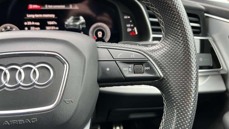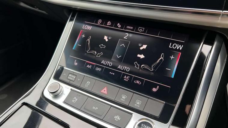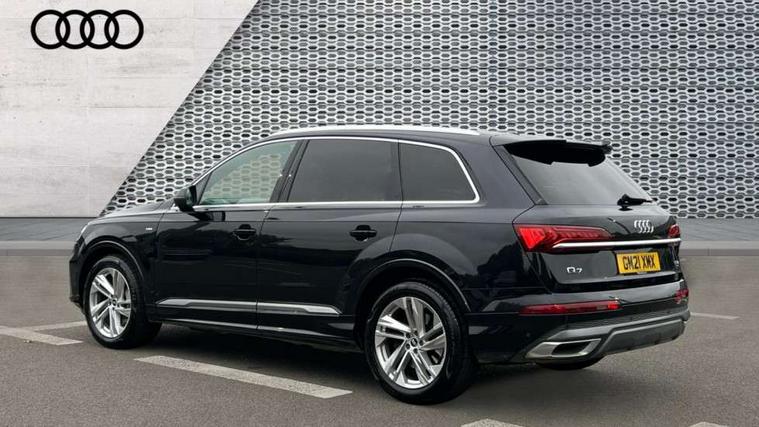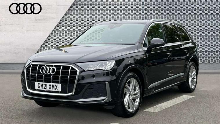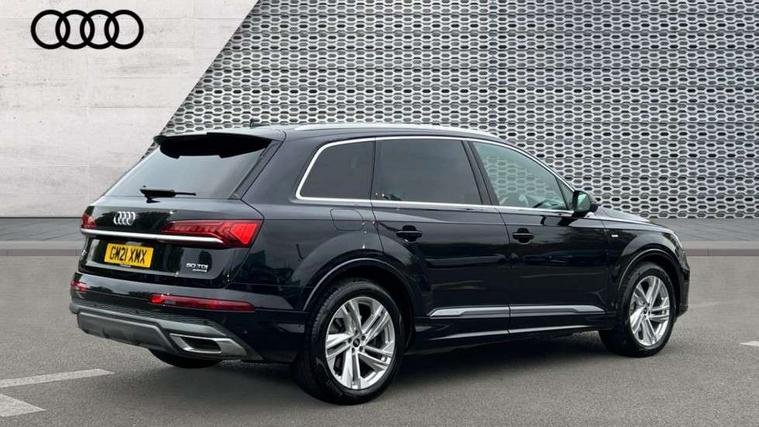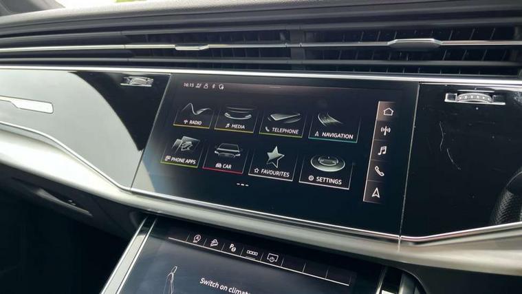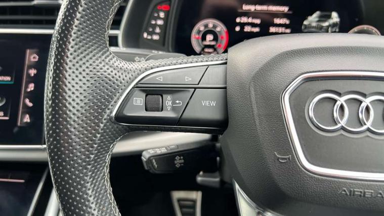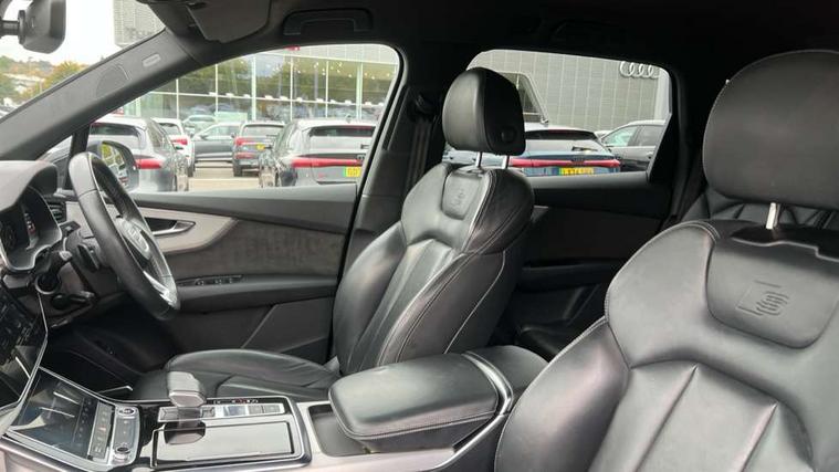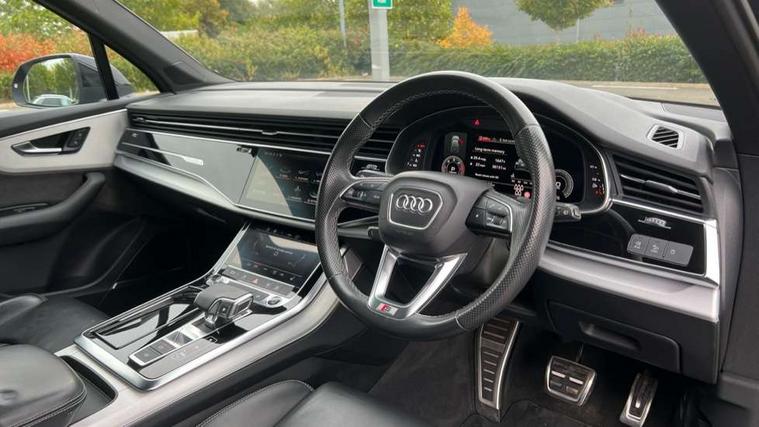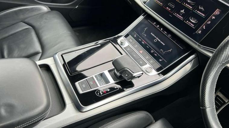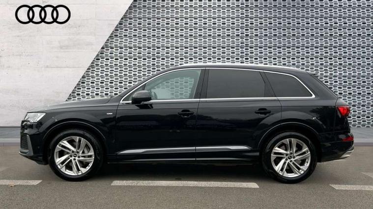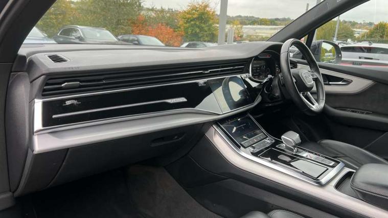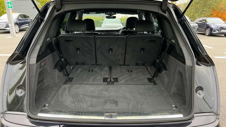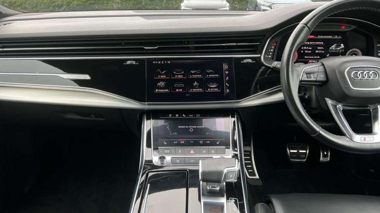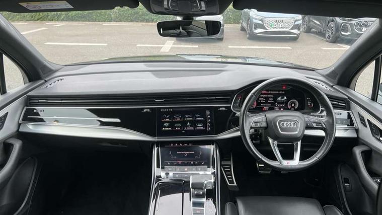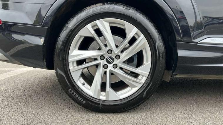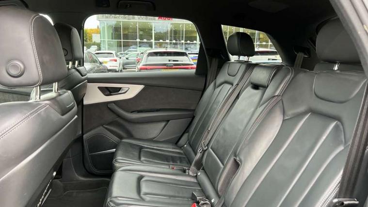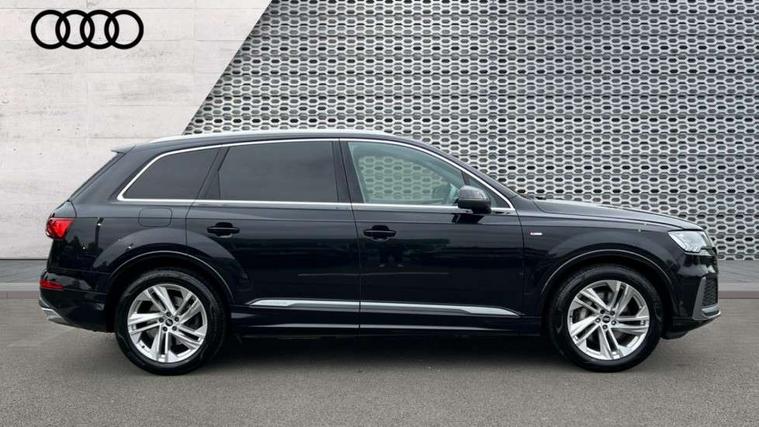Darkened matt brushed aluminium inlays, Tyre repair kit, Anti theft alarm, Anti-theft wheel bolts and wheel loosening detection, Keyless Go, Remote central locking, Audi music interface - front 2 USB-C ports with charger and data functions, Audi sound system with 6 channel amplifier, 180 watt amplifying capacity and 10 loudspeakers including subwoofer, DAB digital radio module, 3 point seatbelts on all rear seats, Audi pre sense front, Driver and front passenger, front side and curtain airbags, Electromechanical parking brake, Electronic Stabilisation Control (ESC) including ABS, ASR and EDL, Extended pedestrian protection measures, Hill hold assist, Seatbelt monitoring, Tyre pressure loss indicator, Warning triangle and first aid kit, Aluminium roof rails, Aluminium window trim, Audi matrix LED headlights with dynamic front and rear indicators, Auto dimming frameless rear view mirror, Body coloured door mirrors, Electrically adj heated/folding + automatically dimming exterior mirrors with memory + automatic kerb side function for passenger side exterior mirror, Heat insulating glass in windshield, Integrated LED indications in door mirrors, LED daytime running lights, LED rear tail lights, Privacy glass - dark tinted rear and rear side windows from B-pillar backwards, S Line badge on wings, S line bumpers in full body colour paint finish, S line roof spoiler, S line styling side ventilation grilles and side skirts, 2 zone automatic climate control, 7 seat layout with ISOFIX points for the front passenger seat and rear passenger seat, Black cloth headlining, Comfort front centre armrest, Folding rear seats, Front head restraints, Front/rear floor mats, Heated front seats, Illuminated door sill trims with S logo, LED interior ambient lighting, Luggage compartment cover, Luggage compartment sill protection in stainless steel, Rear head restraints, Stainless steel pedals, Sunvisors with illuminated vanity mirrors, Tool kit, Audi connect safety and service (e-call), Audi drive select (Auto, Comfort, Dynamic, Efficiency, Individual, Off-road and All road), Audi phone box with wireless charging, Audi smartphone interface includes wireless Apple carplay/Android Auto, Camera based traffic sign recognition, Electromechanical steering, MMI navigation plus with MMI touch screens includes 10.1" and 8.6" screens with haptic feedback, Natural voice recognition, Parking system plus with 360 degree display (front, rear and side sensors) - acoustic and visual park assist system, Power operated tailgate, Rear view camera, Start/stop system, 48V Mild hybrid technology, Adaptive air suspension, Quattro all wheel drive with self locking centre differential,