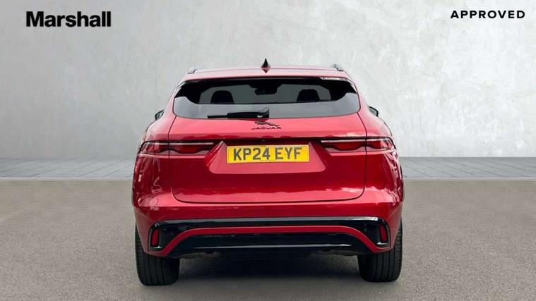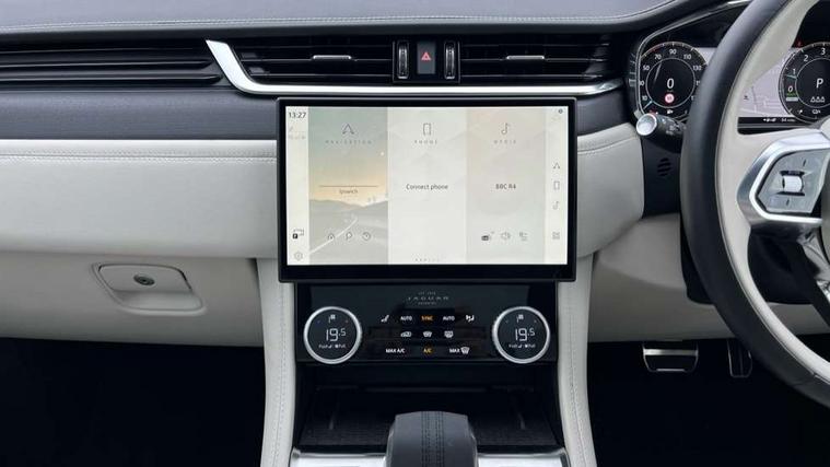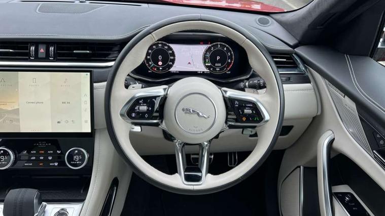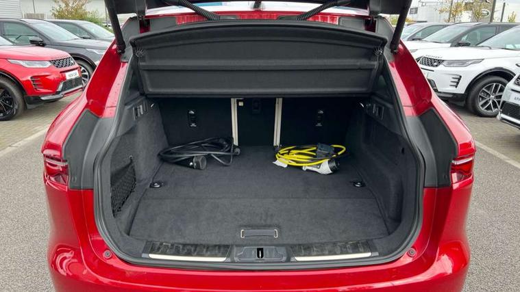 11.4" touchscreen, Adaptive cruise control with steering assist, Android Auto, Apple car play, Blind spot assist, Bluetooth connectivity, Clear exit monitor, Driver alert system, Driver condition monitor, eCall emergency call system, Eco driving style assistant, Electric power assisted steering, InControl remote, Interactive driver display digital with 12" TFT display, Jaguar Toggle shift selector, Lane departure warning system, Lane keep assist, Outside temperature gauge, Personalisation profile management, Pivi pro connected navigation system with app interface and media storage, Pro services and wifi hotspot, Push button starter, Rear collision monitor, Rear traffic monitor, Service interval indicator, Speed proportional steering, Start up sequence with movement in dials and lighting, Traffic sign recognition with adaptive speed limiter, Trip computer, Voice control system, Wireless device charging, 7 kW onboard charger, 8 speed automatic transmission, AC/DC charging, Adaptive dynamics, All terrain progress control, All Wheel Drive (AWD), Configurable dynamics, Home charging cable, Open differential with torque vectoring by braking, Public charging cable, AM/FM radio, Bluetooth streaming, DAB Radio (Digital Audio Broadcasting), Dynamic volume control, InControl apps, InControl protect, iPod integration, 3 flash lane change indicators, AHBA and animated directional indicators, Approach Illumination, Auto dimming rear view mirror, Automatic headlights, Electric heated/power fold memory door mirrors with approach lights and auto dimming driver side, Electric windows with one touch open/close and anti trap, F-Pace and R Dynamic badge, Green tinted glass, Heated front windscreen + heated washer jets, Heated rear window with timer, Illuminated metal tread plates with Jaguar script, Jaguar script and leaper, LED High level third brake light, LED tail lights, Metal load space scuff plates, Non acoustic front windscreen, P400e AWD badge, Privacy glass (rear side windows and rear screen), R Dynamic badge on side door, Rain sensor windscreen wipers, Rear fog lights, Rear metal tread plates, Rear side wing doors, Rear wiper, Trailer stability assist, Variable front intermittent wipers, 12V power point front, 3 rear headrests, 3 seat bench in 2nd row, Additional power sockets - Two additional USB sockets in rear centre console and one 12V socket in trunk, Air distribution speed, Bright metal foot pedals, Centre armrest console, Centre console with side storage, Configurable cabin lighting, Deletion loadspace storage rails, Door sill tread plates, Ebony suede cloth headlining, Electrically adjustable steering column, Fold flat front seats, Front centre armrest with storage compartment, Front door storage space, Glovebox finisher with jaguar script, Heated steering wheel, Hooks in loadspace, Illuminated glovebox, Interior front door handles with separate locking switches, ISOFIX on outer rear seats, Jaguar sense, Leather steering wheel, Luggage tie downs in loadspace, Mist sensing, Multifunction steering wheel, Overhead lighting console, Overhead stowage for sunglasses, Passive front head restraints, Premium carpet mats, Rear air vents, Rear armrest with twin cupholders, Rear centre headrest, Rear door storage space, Reversible boot floor, Satin chrome gearshift paddles, Shopping bag hook, Single front passenger seat, Sunvisors with illuminated vanity mirrors, Twin front cupholders with cover, Online Pack with data plan - F-Pace, 380mm front brakes and 325mm rear brakes, 3x3 point rear seatbelts, ABS, All surface progress control (ASPC), Brake pad warning light, DSC - Dynamic Stability Control, Electric parking brake (EPB), Emergency brake assist, Front airbags with passenger seat occupant detector, Front and rear seatbelt reminder, Front side airbags, Full length side window curtain airbag, Hill launch assist, Power operated child locks, Traction control, Tyre pressure monitoring system, Immobiliser, Keyless entry, Keyless Start, Locking wheel nuts, Perimeter alarm, Remote central locking, Valet mode,