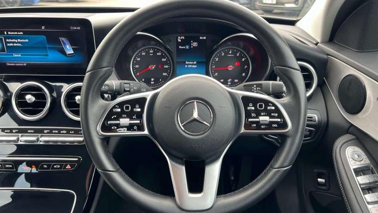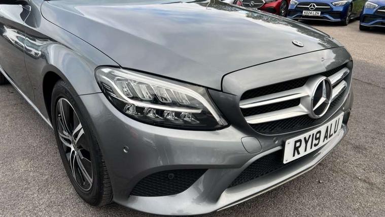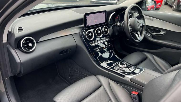 10.25" display screen, Active park assist with parktronic system, Attention assist, Bluetooth system, Collision prevention assist plus, Cruise control with speedtronic variable speed limiter, DYNAMIC SELECT with a choice of driving modes (ECO, Comfort, Sport, Sport+ and Individual), Instrument cluster with display, Multi function trip computer, Multifunction colour display, Navigation system, Outside temperature gauge, Power opening/closing tailgate, Pre-wiring for SD navigation system, Remote boot release, Reversing camera, Service indicator (ASSYST PLUS), Speed sensitive steering, Petrol Particulate Filter, 2 USB ports in centre console, DAB Digital radio, Frontbass loudspeakers, Mercedes Audio 20 radio/single CD + telephone keypad, SD card slot, Steering wheel mounted audio controls, Adaptive brake lights, Aerial in rear window, Body coloured bumpers, Body coloured door mirrors, Chrome roof rails, Electric windows one touch open/close, Electrically adjustable and heated door mirrors, Green tinted glass, Heated windscreen washers, LED daytime running lights, LED Headlights, LED Indicators, LED tail lights, LED third brake light, Radiator grille with integral star and 2 louvres in matt iridium silver with chrome trim, Rain sensor windscreen wipers, Rear wiper, Side windows surround in polished aluminium, 2 cupholders in front centre console, 3 spoke leather multi function steering wheel with silver chrome trim, 40:20:40 split folding rear seats, Artico man-made leather upholstery, Auto Mercedes-Benz child seat recognition sensor, Black floor mats, Dual zone automatic climate control, Electric front seat height adjustment, Front and rear head restraints, Front centre armrest with storage compartment, Front door sills with Mercedes Benz lettering, Gearshift paddles, Heated front seats, Illuminated glovebox, Load compartment cover, Rear top tether child seat ISOFIX attachment, Sports seats, Sunvisors with illuminated vanity mirrors, Lighting pack - C class, Mirror pack - C Class, Seat comfort pack - C Class, Stowage space pack - C Class, 3 rear 3 point seatbelts, ABS with Brake Assist, Active bonnet, Adaptive brake system, Black seat belts, Child proof door locks, Crash sensor, Drivers knee airbag, Drivers pelvis airbag, Dual stage driver/passenger airbags, Electronic parking brake, ESP with ASR, Front passenger seat occupancy sensor, Front side airbags, Hill start assist, Rear seatbelt warning indicator, Tyre pressure monitoring system, Warning triangle and first aid kit, Window airbags, Alarm system/interior protection/immobiliser, Chrome surround electric key, Remote central locking, Brushed aluminium trim, 17" 5 spoke aero alloy wheels in Silver, Tyre inflation kit,