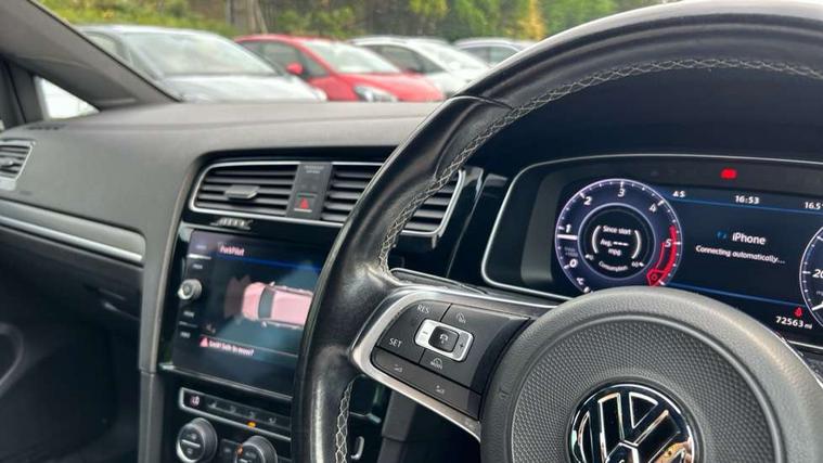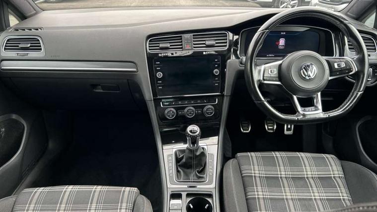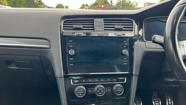 'Lights On' Reminder warning buzzer, 8" touch screen, Adaptive Cruise Control with pedestrian detection and speed limiter, App-Connect, Bluetooth hands free telephone connection, Brake pad wear indicator warning light, Drive mode selector, Driver alert system, Driver profile selection, Exterior temperature gauge, Instrument cluster in white, Multifunction computer, Progressive power assisted steering, Rev counter, Trip and service interval display, Ultrasonic front and rear optical and audible parking sensors, Warning buzzer and light for front seatbelts unfastened, Anti-tramp function, Diesel particulate filter, Lowered sports suspension, XDS plus electronic differential lock, CD/MP3/WMA, USB and SD card reader, aux-in, Composition media system, DAB Digital radio, 3D-LED-SBBR with sweeping indicator, Auto dimming rear view mirror, Automatic coming/leaving home lighting function, Automatic headlights, Black rear diffuser, Body colour door handles, Body colour door mirrors, Body colour rear roof spoiler, Body colour sports bumpers, Electric front windows, Electric rear windows, Electrically adjustable and heated door mirrors, Heated rear windscreen, Honeycomb radiator grille - black, LED daytime running lights, LED front fog lights, LED rear lights, Rain sensor, Rear windscreen washer and wiper with interval delay, Twin exhaust tailpipe, 12V socket in luggage compartment, 3 rear headrests, 3 spoke steering wheel, 60/40 split folding rear seat, Air conditioning - 2 zone electronic climate control, Bag hook in luggage compartment, Black headlining, Boot lashing points, Cooled glovebox, Courtesy light delay, Cover for storage compartment in centre, Dust/pollen filter, Front + rear carpet mats, Front centre armrest with storage box and rear air vents, Front passenger drawer stowage, Front passenger seat height adjust, Front seat back storage pockets, Grab handles, Height/reach adjust steering wheel, Illuminated door sills, Illuminated vanity mirrors, Isofix preparation for 2 rear child seats, Leather gear knob and handbrake grip, Load through provision with rear centre armrest and cupholders x2, Luggage compartment cover, Luggage compartment lighting, Multifunction leather steering wheel with grey stitching leather trimmed gear knob including paddle shift, Overhead storage box, Stainless steel pedals, Storage box in luggage compartment, Storage compartments in doors, Sun visors, Variable boot floor, height adjustable and removable, Ambient lighting pack - Golf, Mirror pack - Golf, 3 point height adj front seatbelts + pretensioners, 3 rear 3 point seatbelts, ABS, Automatic post collision braking, Child locks on rear doors, Driver/Front Passenger airbags, Driver/Passenger whiplash optimised head restraints, Drivers knee airbag, Electronic parking brake with auto hold, ESP with EDL + ASR, Front and rear curtain airbags, Front passenger airbag deactivation, Front side airbags, Pre crash system, Tyre pressure monitor, Alarm with interior protection, Electronic engine immobiliser, Remote central locking with 2 remote folding keys, Chrome-plated light switch surround, Honeycomb black decorative inserts, Piano black centre console, Space saver spare wheel,