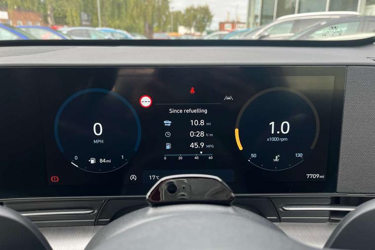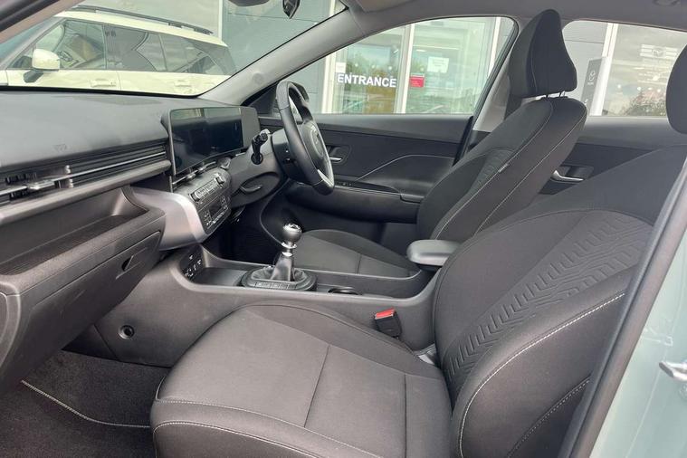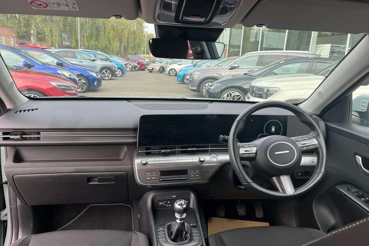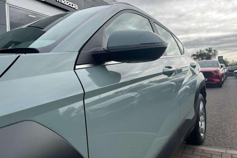 10.25" touchscreen centre console display satellite navigation with live services and mapcare, Bluetooth connectivity with voice recognition, Cruise control, Digital clock, Driver attention warning, Driver supervision instrument cluster with 12.3" LCD display, eCall emergency call system, Forward collision avoidance assist (FCA 1.5) - Car, pededstrian, cycle and junction turning, Front parking sensor, Head up Display, Intelligent speed limit assist, Lane follow assist, Lane keep assist, Leading vehicle departure alert (LVDA), Parking system with rear camera and guidance system, PAS, Rear parking sensor, Roadside assistance, Smartphone integration compatible with Apple CarPlay and Android Auto, Windscreen washer fluid sensor and warning indicator, 2 front USB C and 2 rear USB C charging points, DAB Digital radio, Speakers - Front, rear and tweeters, Steering wheel audio, phone and cruise controls, Auto dimming rear view mirror, Automatic headlights with dusk sensor, Automatic windscreen wipers with rain sensor, Black painted wheel arch Inserts, Body colour bumpers, Body colour exterior door handles, Body coloured door mirrors, Door mirror LED indicator lights, Electric front windows with anti-trap mechanism and one touch control, Electric rear windows, Electrically adjustable and heated door mirrors, Full LED MFR headlights, LED daytime running lights, LED rear lights, Power folding door mirrors, Rear side wing doors, Rear skid plate - silver, Rear spoiler with integrated LED brake light, Rear wiper, Roof rails, Tinted glass in front and rear doors, Windscreen auto defog function, 12V power outlet in front console, 2 zone climate control, 3 seat bench in 2nd row, 60/40 split folding rear seat, Adjustable head restraints, Cloth upholstery, Driver and passenger front seat pockets, Driver's seat electric lumbar support, Driver's seat height adjustment, Driver/passenger sunvisors and illuminated vanity mirrors, Front passenger seat manual adjustments, Height/reach adjustable steering column, Isofix rear child seat fastenings, Leather wrapped steering wheel and gear knob, LED centre interior light, LED front interior light, Luggage compartment LED lightning, Metal paint effect interior door handles, Parcel shelf, Rear centre armrest, Rear centre console with air vents, Single front passenger seat, Vertical adjustment rear head restraints, Trailer wiring package - Kona, Airbag - front, front side, curtain and centre front airbag, Anti-lock brake system, Childproof rear door locks, Downhill brake control, EBD + Brake Assist, Electric parking brake, Electronic stability control, Fasten seatbelt reminder, Fixed 3 point for second row centre passenger seatbelt, Front seatbelt pretensioners, Height adjustable front seatbelts, Hill start assist control (HAC), Passenger airbag deactivate switch, Rear seat alert, Traction control, Tyre pressure monitoring system, Alarm/immobiliser, Deadlocks, Folding key, Locking wheel nuts, Remote central locking, Smart key with keyless entry and engine start/stop button, 17" alloy wheels, Temporary mobility kit (TMK),