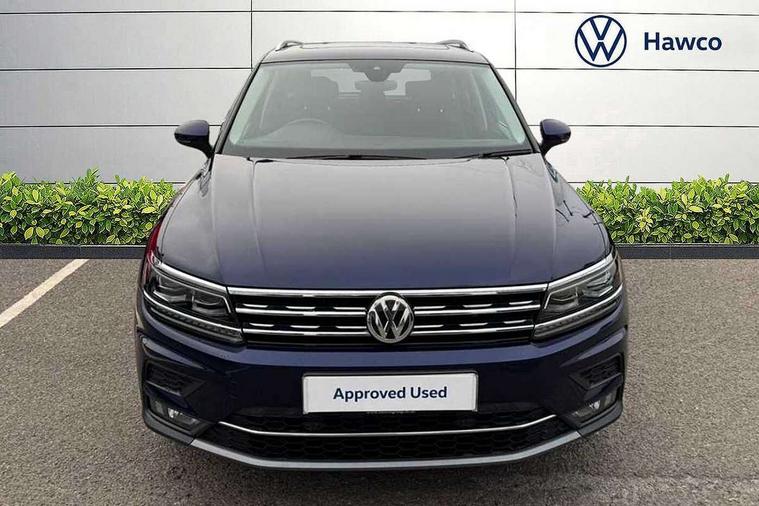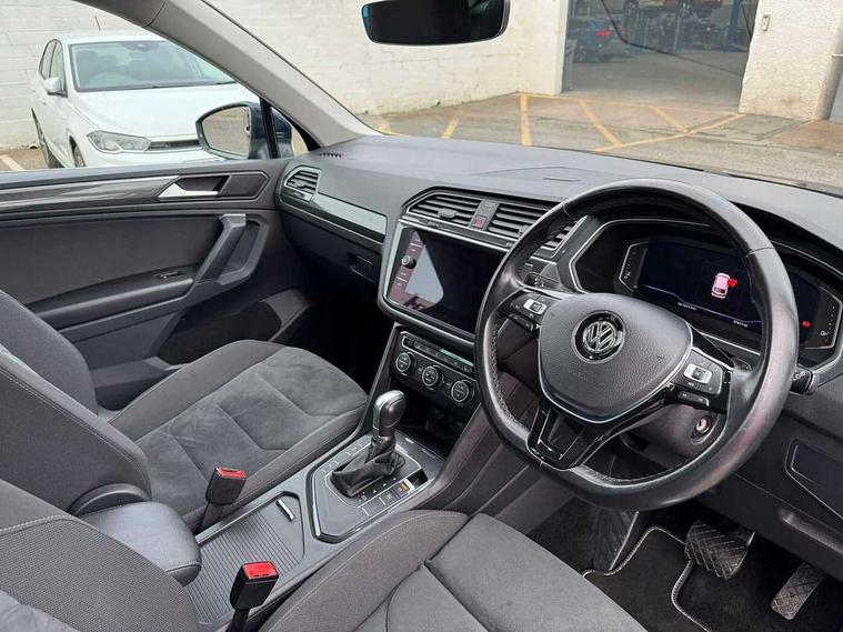 Active information display, Adaptive cruise control, App-Connect, Bluetooth phone integration system, Car-Net Security and Service, Distance control assist, Driver profile selection, Fatigue detection system, Front assist, radar sensor controlled distance monitor, city emergency braking + predictive pedestrian protection, Instrument cluster, Lane assist, Low washer fluid warning light, Multifunction colour display, Outside temperature display, Service interval indicator, Speed limiter, Start/Stop function, Warning lights, Misfuel prevention device for diesel engine, XDS electronic differential lock, 2x USB sockets in front, 4 X 20 watt output, DAB Digital radio, MP3 compatible single CD player, SD card slot, Simultaneous pairing of 2 compatible mobile devices, SMS functionality - read, compose and send SMS messages using touch-screen display, Title and cover art display, 3D effect cherry red LED rear tail lights, Auto dimming interior mirror, Automatic activation of hazard warning lights, Black door protector with chrome inserts, Body colour door handles, Body colour door mirrors, Body coloured bumpers, Chrome side body trim, Chrome side window surrounds, Chrome trimmed radiator grille, Coming/leaving home lighting function, Dusk sensor + auto driving lights, Electric folding door mirrors, Electric heated + adjustable door mirrors, Electric panoramic sunroof with sunblind, Front air intake with chrome strip, Front and rear electric windows, Halogen clear headlights with integrated indicators and range adjustable, Heated rear window, High level 3rd brake light, LED headlights with dynamic light assist daytime running lights and cornering front fog lights, LED rear number plate lights, Rain sensor windscreen wipers, Rear windscreen washer and wiper with interval delay, Side door sills with chrome inserts, Side skirts and rear bumper with chrome insert, Silver rear diffuser trim, Silver roof rails, Silver under body guard, Tinted windows (B pillar backwards), Windscreen wipers/ intermittent wipe + 4 position delay, 12V Accessory socket in centre console, 3 rear headrests, 3 zone climate control, 4 load lashing points, 40:20:40 split folding rear seats, Bag hook in luggage compartment, Driver + front passenger lumbar support, Foldable passenger seatback, Front + rear carpet mats, Front centre armrest with 12v socket, Front centre armrest with storage + rear 2 air vents + cupholders, Front seat back storage pockets, Front seatback folding tables, Height/reach adjust steering wheel, Illuminated driver/passenger vanity mirrors, Illuminated scuff plates, Instrument lighting white adjustable panel illumination, Interior light with delay, Isofix Preparation 2 Rear child seats, Leather gear knob, Load through provision with 2 cupholders when folded, Lockable cooled glovebox, Luggage compartment lighting, Luggage compartment side storage, Map pockets on front seats, Passenger seat height adjuster, Passenger underseat drawer, Rear cupholders, Removable luggage cover, Sliding/reclining rear seats, Storage compartment in driver's door, Storage compartment in passenger's door, Storage compartment in rear doors, Storage tray on dashboard, Sunglasses storage, Variable boot floor, Ambient lighting pack - Tiguan, Winter pack - Tiguan/Tiguan Allspace, 3 rear 3 point seatbelts, ABS+EBD+Brake assist, Active bonnet, Active pedestrian safety system, Curtain airbags, Driver/Front Passenger airbags, Driver/Passenger whiplash optimised head restraints, Drivers knee airbag, DTC - Drag torque control, Electronic parking brake with auto hold, ESP with EDL + ASR, First aid kit, Front side airbags, Front ventilated disc brakes and rear disc brakes, Head airbag system, Height adjustable front 3 point seatbelts + pretensioners, Hill hold control, Passenger airbag deactivate switch, Passenger knee airbag, Proactive preventive occupant protection, Rear side airbags, Rigid safety cell with front and rear crumple zones, Seatbelt warning lamp and buzzer, Two tone horn, Warning triangle, Alarm with interior protection, Electronic engine immobiliser, Remote central locking with 2 remote folding keys, Chrome door trim inserts, Piano black interior trim, Steel space saver spare wheel,