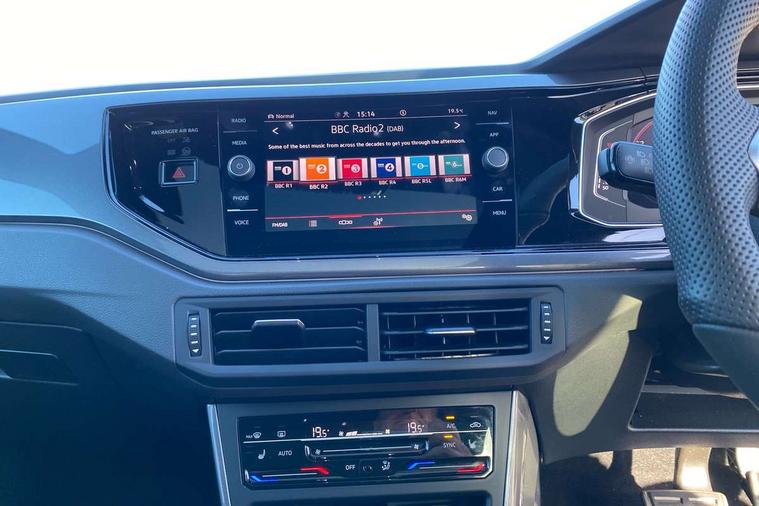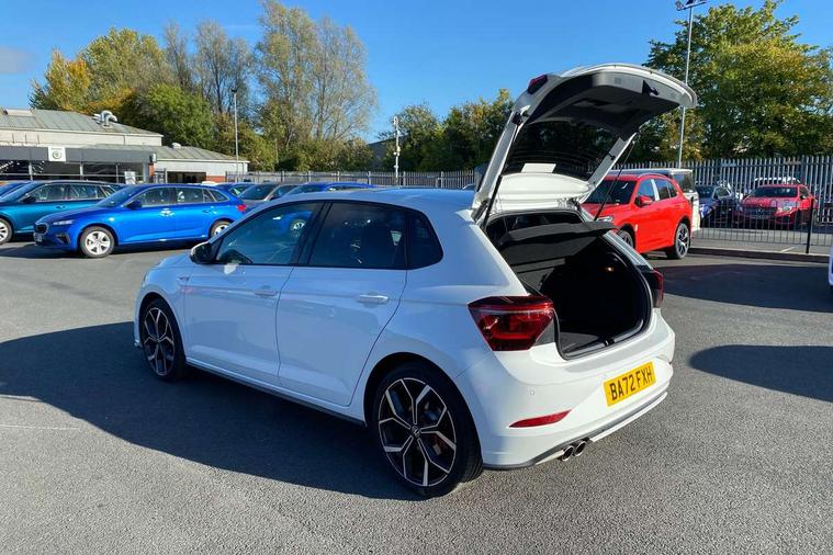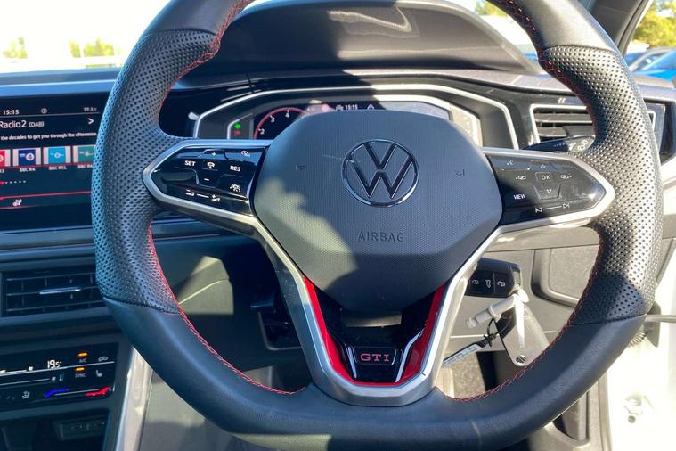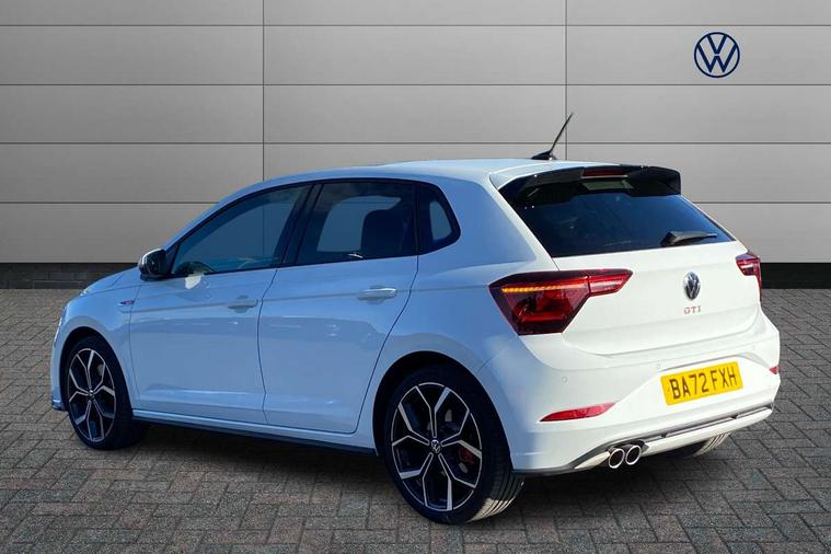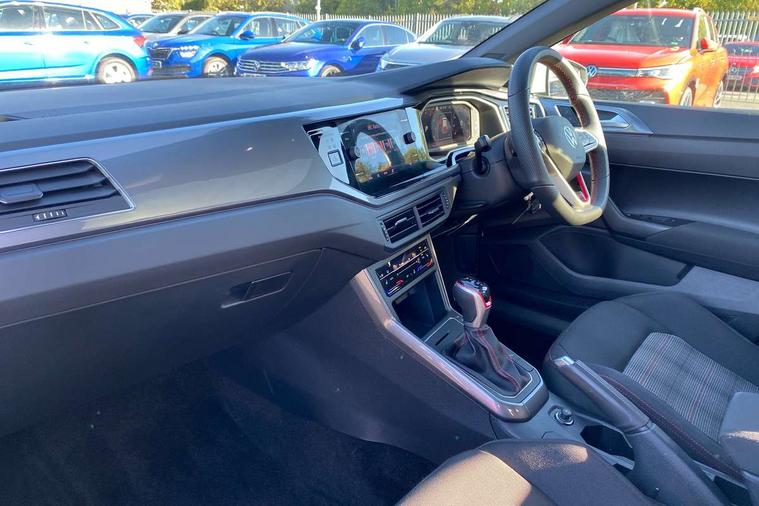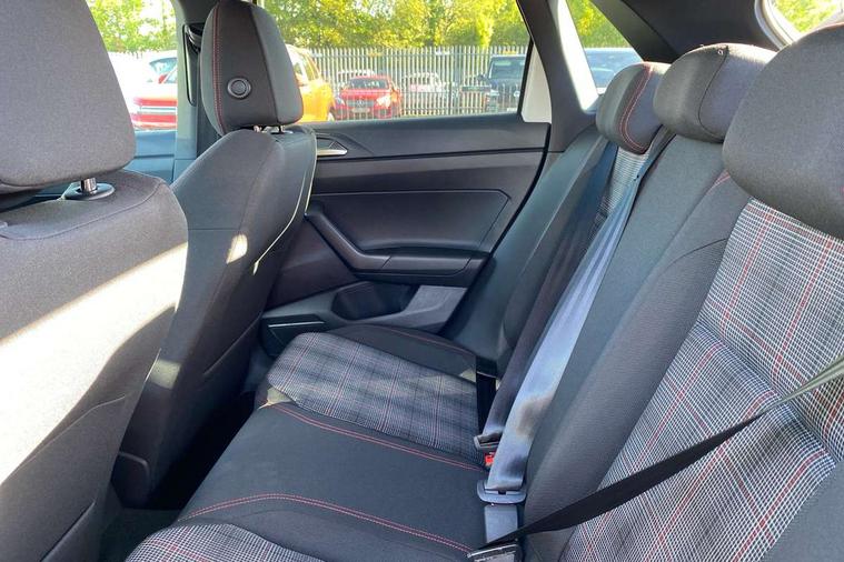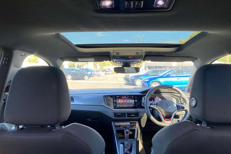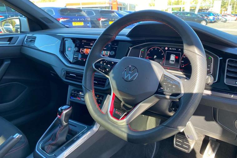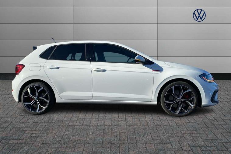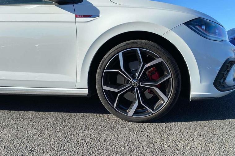 Adaptive cruise control with follow-to-stop and speed limiter, Bluetooth mobile phone interface, Digital Cockpit Pro with 10.25" Display, Driver alert system, Dynamic road sign display, Eco mode, Emergency call service, Power assisted speed sensitive steering, Preparation for We connect and We connect plus, Speedo and rev counter, electronic odometer, trip, service interval display and fuel gauge, Travel Assist - Lane keeping system and traffic jam assist, Travel assist including emergency assist, Trip computer, Warning signal and warning light for front and rear seatbelts not fastened, Washer fluid level indicator, Wireless app connect, Adaptive chassis control, Front wheel drive, Heavy duty rear axle, Rear shock absorpion sports version, Sports select suspension lowered by 15mm, Start-stop system with battery regeneration (recuperation - energy recovery during braking), DAB Digital radio, Diversity antenna for FM reception, Front and rear 6 speakers, Body colour bumpers, Body colour door handles, Electric front windows, Front scuff plates in aluminium with GTI logo, Heat insulating darkened glass in side and rear windows, Heat insulating glass windscreen, Power folding adjustable/heated exterior mirrors and front passenger exterior mirror lowering function, Rear electric windows, Rear fog light, Rear side wing doors, Rear windscreen washer and wiper with interval delay, Sport bumpers with air intakes with honeycomb structure, Third brake light, Twin chrome exhaust tailpipes, 12V power socket in centre console, 2 USB-C ports in the front, 2 USB-C charging sockets on the center console in the rear, 3 rear head restraints, 60/40 split folding rear seat and rear seat bench not split, Air care climatronic air conditoning system with active combination filter and 2-zone temperature control, Black roof lining, Ceramique headliner, Chrome plated radiator grille inserts, air vent surrounds and light switch surrounds, Door and side trim panel, Driver and front passenger seat height adjustment, Driver/passenger sunvisors with illuminated vanity mirrors, Front + rear carpet mats, Front centre armrest, Front footwell illumination, Front seat backrest storage pockets, GTI sports gearshift knob in aluminium leather, Handbrake lever handle in leather, Isofix child seat preparation easy-fit (for two outer rear seats, and front passenger seat) compatible with I-size, LED interior light with switch off delay and dimmer, 2 reading lights front and rear, Luggage compartment cover, Luggage compartment floor, Luggage compartment lighting, Single front passenger seat, Stainless steel pedals, Standard pedal cluster, Three spoke leather wrapped multifunction sports steering wheel with shifting paddles, IQ LED matrix headlights pack - Polo, Light and sight pack - Polo GTI, Sports suspension pack - Polo, 3 point height adj front seatbelts + pretensioners, 3x3 point rear seatbelts, ABS, Driver and front passenger airbag with front passenger airbag deactivation, Drivers and front passengers safety optimised head restraints, ESC (Electronic stability control) + EDL (Electronic Differntial lock) and ASR (Traction control), Extended and predictive pedestrian/ cyclist protection, Front and rear disc brakes with red brake calipers, Front curtain and side airbags with center airbag, Hill hold control, Manual child lock in rear doors, Two tone horn, Tyre pressure loss indicator, Alarm with interior protection, Anti-theft alarm system with interior monitoring, backup horn, and towing protection, Anti-theft wheel bolts, Electronic engine immobiliser, Chrome applications on rotary light, mirror adjustment, window regulator switches, outlet with frame in black, Low rolling resistance tyres,