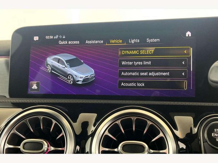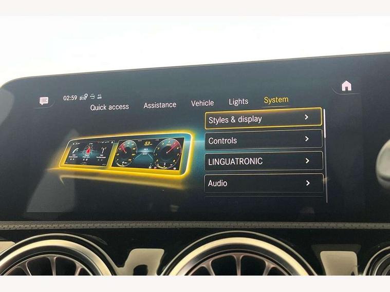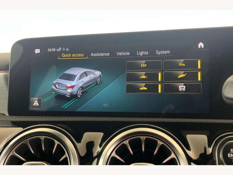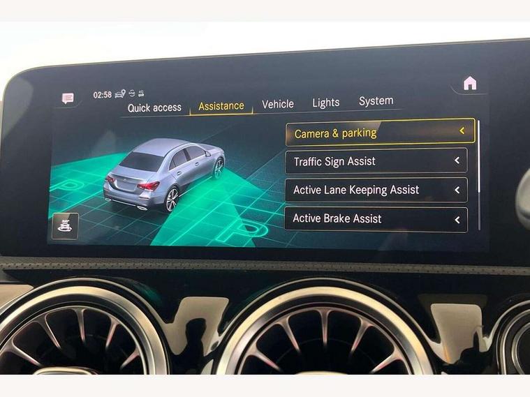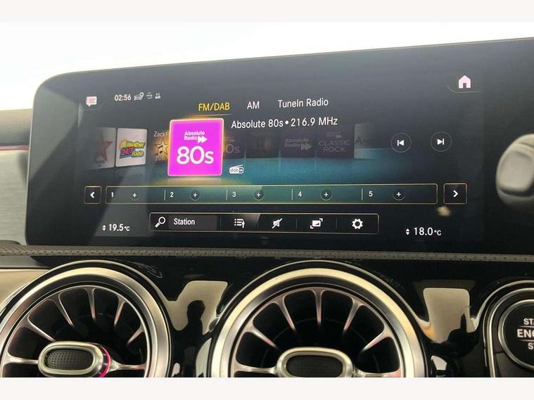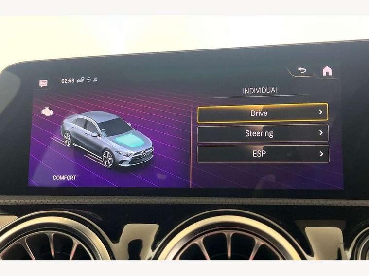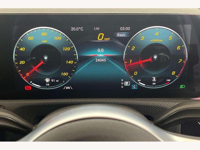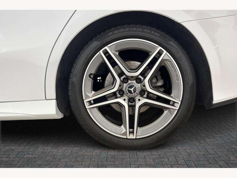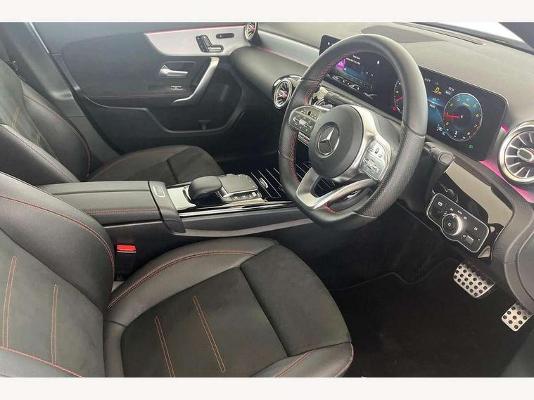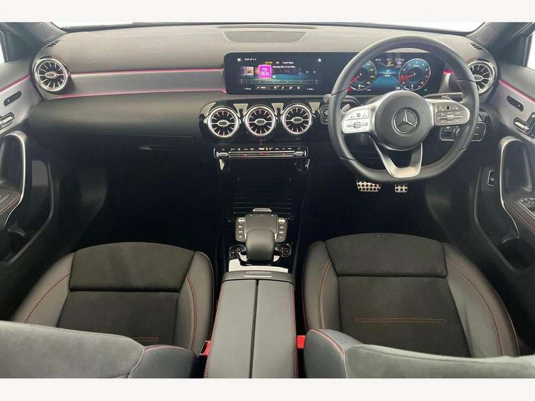 10.25" Digital instrument cluster display screen, 10.25" media display, 180 degree rear view camera with parking guidelines, Active lane keep assist, Active park assist with parktronic system including front and rear parking sensors, Attention assist, Brake pad wear indicator warning light, Car wash mode, Cruise control + speed limiter, Direct steering, Dual bluetooth interfaces, DYNAMIC SELECT with a choice of driving modes (ECO, Comfort, Sport and Individual), ECO start/stop function, Fluid level warning indicator for fuel, oil, coolant and washer fluid, Hard-disk navigation, Hey Mercedes Voice activation, Lamp failure indicator, MBUX augmented reality for navigation, Mercedes me connect including emergency call system, accident recovery, breakdown and maintenance management, Outside temperature gauge, Owners manual in English, Pre-installation for private car sharing, Pre-installation for Vehicle Monitoring, Pre-installation for Vehicle Setup, Preinstallation for Mercedes Benz link, Service indicator (ASSYST), Smartphone integration with Apple CarPlay and Android auto, Speed sensitive power steering, Trip computer, Wireless charging, Lowered comfort suspension, Rear axle torsion beam, 10 speakers, 2 USB ports (type C) in rear stowage compartment and one in front of center console, DAB Digital radio, MBUX multimedia system with DAB digital radio and touchpad including satellite navigation, Mercedes-Benz advanced sound system - 225W, 4 Electric Front and Rear windows, Adaptive brake lights, AMG bodystyling - Front apron with splitter in chrome, rear apron with chrome trim and chrome visible trim elements in tailpipe, Black weather strip, Body colour bumpers, Body colour door handles, Body colour side skirt, Body coloured door mirrors, Chrome beltline trim, Diamond radiator grille with chrome pins and silver louvre + chrome insert, Electric adjustable and heated door mirrors with integrated LED side indicators, Exhaust system - Twin visible tailpipes in polished stainless steel, Headlamp assist automatic headlamp activation, Heated glass rear windscreen + timer control, Illuminated front door sill panels with Mercedes-Benz lettering, LED high performance headlamps with integrated LED daytime running lights, LED tail lamp, LED third brake light, Privacy glass, Radio aerial, Rain sensing windscreen wipers with two sensitivity settings, Rear fog lights, Window line trim strip in chrome, 3 Spoke flat bottom leather multi function steering wheel with perforated leather in grip area, 40:20:40 split folding rear seats, Artico man-made leather/Microfibre Dinamica upholstery with red contrast stitching, Auto Mercedes-Benz child seat recognition sensor, Black air vents with surround in silver chrome, Black roof lining, Brushed stainless steel sports pedals with rubber studs, Controller on centre console with chrome surround, Floor mats with stitched edging and AMG lettering, Front centre armrest with storage compartment, Front seat backs luggage nets, Front seat cushion length adjustment, Galvanished gear shift paddles on steering wheel, Heated front seats, Height/reach adjustable steering column, Interior lighting - 64 colour Ambient lighting, Interior mirror with reading lamps in black and frameless, Manual height adjustable front seats, Rear armrest with 2 cupholders, Rear head restraints, Seat occupancy sensor for front passenger seat, Sports seats with adjustable head restraints, Stowage compartment in centre console with retractable cover, Sunvisors with illuminated vanity mirrors, Touchpad on center console, Twin front cupholders, Two zone thermotronic luxury automatic climate control, Light and sight pack - A Class, Mirror package - A Class, Seat comfort pack - A Class, 3 rear 3 point seatbelts, ABS with Brake Assist, Active bonnet, Active brake assist includes forward collision warning system with autonomous braking, Adaptive brake assist with hold function and hill start assist, Black seatbelts, Childproof locks manually operated for rear doors and electrically operated for rear power windows, Crash responsive emergency lighting, Driver and passenger head and side airbags, Drivers knee airbag, Dual stage driver/passenger airbags, Electronic parking brake, ESP curve dynamic assist, ESP with ASR, Front and rear seatbelt reminder, Front brake callipers with Mercedes Benz lettering, ISOFIX and top tether child seat fixing points in two outer rear seats, Tyre pressure monitoring system, Warning triangle and first aid kit, Window airbags, Alarm system/interior protection/immobiliser, Keyless entry lock/unlock, Keyless Go, Remote central locking and crash sensor with emergency opening function, Urban guard vehicle protection system with immobiliser and interior protection, Light aluminium with longitudinal grain interior trim, 18" AMG 5 twin spoke light alloy wheels in titanium grey with highsheen finish, Summer tyres, Tirefit sealant kit,