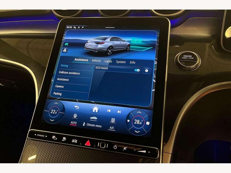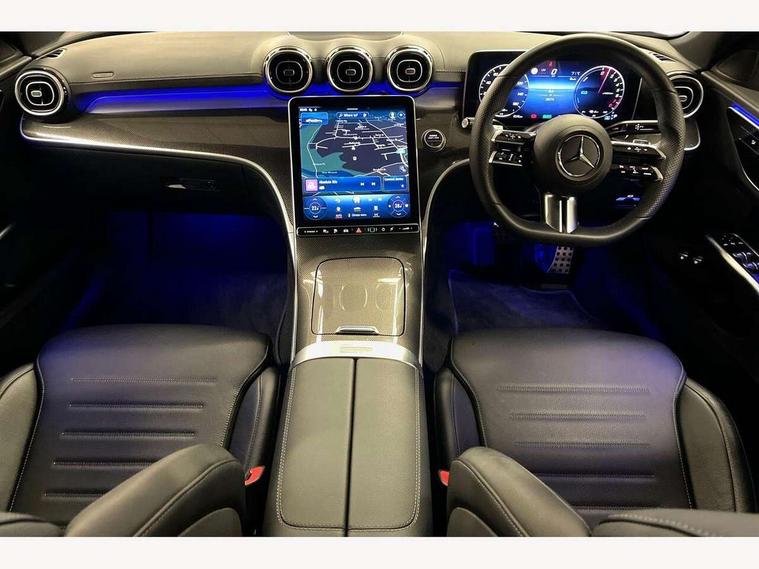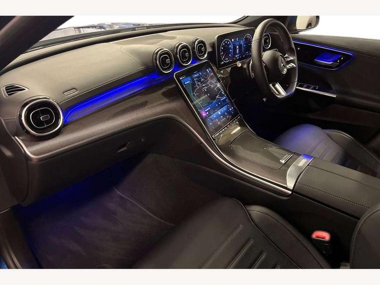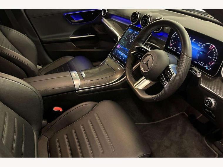 11.9" high resolution multimedia colour display, 12.3" digital instrument cluster display, Active blind spot assist, Active brake assist plus, Active lane keeping assist, AMG DYNAMIC SELECT with a choice of driving modes (Slippery, Comfort, Sport, Sport+, Individual), Attention assist, Cruise control with speedtronic variable speed limiter, E-call, Extended MBUX functions, Finger print sensor, Fluorescent jacket for driver, MBUX navigation premium, MBUX voice control activated by keywords "Hey Mercedes", Mercedes connect me, Mercedes me remote services, Outside temperature gauge, Pre-installation for digital key transfer, Remote boot release, Service indicator (ASSYST), Smartphone integration, Sports direct steer speed sensitive steering, Status display for rear seat belts in instrument cluster, 11 kW AC onboard charger, 5m charging cable for wall box/public charging stations(mode 3), 66l fuel tank with increased capacity, 9G TRONIC 9 speed automatic transmission, Agility control sports suspension and lowered by 15 mm, Petrol Particulate Filter, Sporty engine sound system, DAB Digital radio, MBUX multimedia system, Adaptive brake lights, Adaptive high beam assist, AMG body styling front apron, rear apron and side skirts, AMG front bumper with sporty air intakes and chrome elements, AMG rear bumper with high gloss chrome elements, AMG side skirts in vehicle colour, B-pillar trim in glossy black, Body coloured bumpers, Body coloured door mirrors, Chrome beltline trim, Daytime running lights, Electric windows with one touch opening/closing and obstruction sensors, Electrically adjustable and heated door mirrors, Green tinted glass, LED high performance headlamps, LED Indicators, LED tail lights, LED third brake light, Powerdomes on bonnet, Privacy glass, Radiator diamond grille with integrated Mercedes Benz star and louvre silver with chrome pins, Radio aerial integrated into rear window, Rain sensor with automatic windscreen wiper activation, Rear boot, Rear side wing doors, Side windows surround in polished aluminium, Two visible exhaust pipes integrated into rear bumper, 3 spoke flattened bottom AMG multifunction steering wheel in black nappa leather with chrome inserts and perforated leather in grip area, 40:20:40 split folding rear bench seat, AMG Leather upholstery, AMG sports seats, Audio and onboard settings control on multifunction steering wheel, Auto Mercedes-Benz child seat recognition sensor, Black air vents with silver chrome elements, Black floor mats with AMG lettering, Black roof liner, Door trim elements high gloss black with silver chrome surroundings and switches, Double cupholder in centre console, Folding rear seat backrest, Front and rear head restraints, Front centre armrest with storage compartment, Front door sills with Mercedes Benz lettering, Gearshift paddles on steering wheel, Heated front seats, Illuminated glove compartment stowage, Manually height and reach adjustable steering column, Overhead control unit in high gloss black, Rear top tether child seat ISOFIX attachment, Single front passenger seat, Sports pedals with stainless steel surfaces and rubber studs, Sunvisors with illuminated vanity mirrors, THERMATIC 2 zone automatic climate control, Interior lighting package - C Class, Mirror pack - C Class, Parking package with reversing camera - C Class, Seat comfort pack - C Class, Stowage space pack - C Class, USB package - C Class, 3 rear 3 point seatbelts, Active bonnet pedestrian safety measure which detects an impact and raises bonnet, Adaptive brake system with HOLD function and brake drying in the wet, Anti-lock braking system (ABS), Black seat belts, Brake calipers with Mercedes-Benz lettering + perforated front brake discs, Child proof door locks, Drivers knee airbag, Drivers pelvis airbag, Dual stage driver/passenger airbags, Electric parking brake, Electronic Stability Programme (ESP), Front centre airbag between driver and front passenger seats, Front side airbags, Larger brake discs on front axle, Rear passenger airbag, Rear seatbelt warning indicator, Sports braking system with perforated front disc brakes, Tyre pressure monitoring system, Warning triangle and first aid kit, Window airbags, Central locking with interior switch, automatic locking and crash sensor with emergency opening function, Chrome surround electric key, URBAN GUARD vehicle protection (Thatcham Category 1) consisting of break-in, anti-theft alarm system (ATA), interior monitoring and tow-away protection, Artico man-made leather dashboard with contrast stitching, Centre console trim in metal weave, 18" AMG 5 spoke design aerodynamically optimised alloy wheels painted in tantalite grey with high sheen finish, Summer tyres, TIREFIT with tyre inflation compressor,