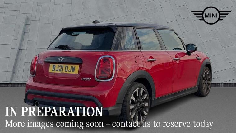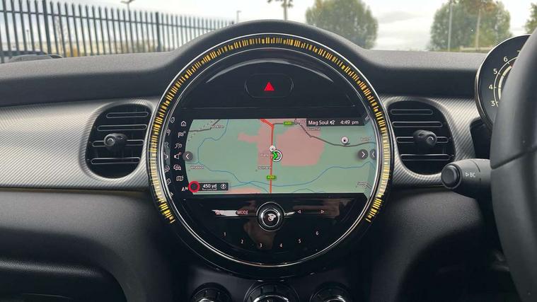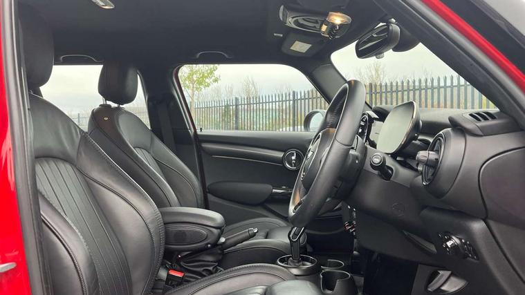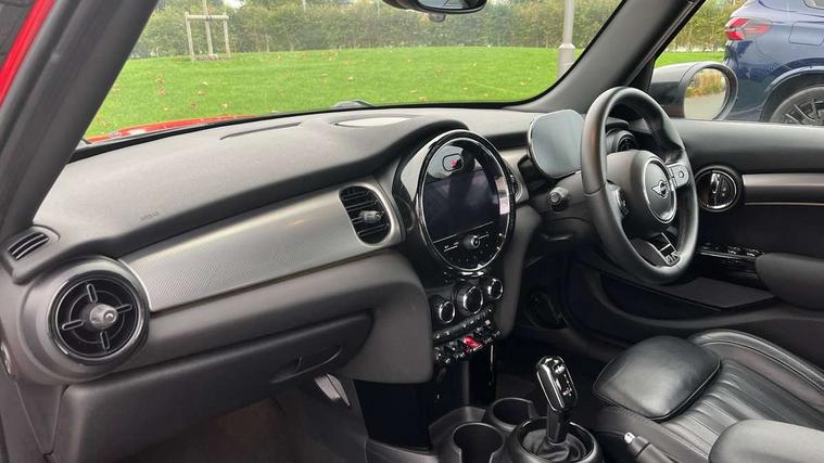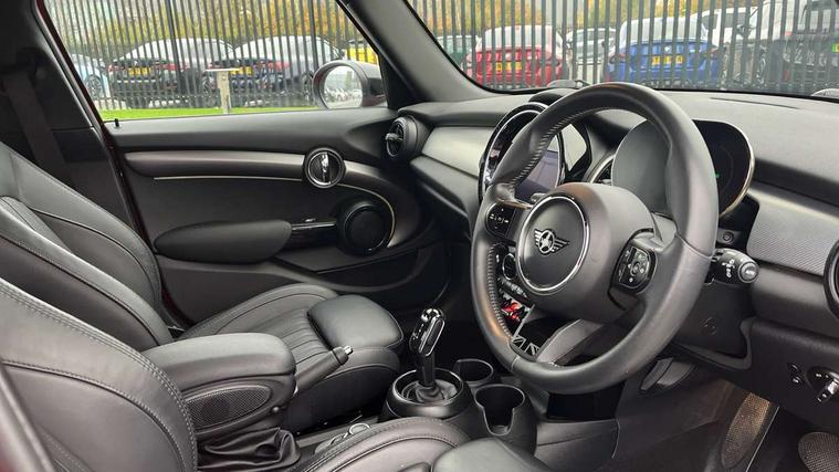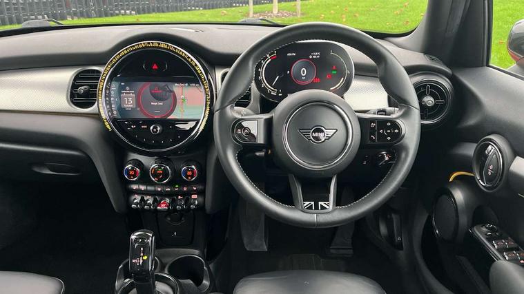 Automatic start/stop function with brake energy recuperation, Compatible mobile phone bluetooth with audio streaming, Cruise control with brake assist, Electro-mechanical speed dependant steering assistance, Flexible car sharing preparation, Instrument cluster, MINI Driving Modes - centre toggle switch to control driving setting (sport, mid and green), Mini E-call, MINI TeleServices, On board computer, Rear park distance control, Service interval indicator, Double Vanos system, Fully variable valve control, Gear change indicator display, High precision injection, Performance Control, Steptronic transmission with double clutch, 6 speakers in front door trims and underneath front seats, 8.8" touchscreen with LED ring, FM tuner and DAB digital radio, Automatic headlight activation switch, Body colour fuel filler cap, Chrome line exterior - radiator grille bars, tailgate handle, lower front grille grating and rear central fog-light, Dynamic brake lights, Electric front+rear windows, Heated rear window, Heated windscreen washer jets, LED headlight with closed ring and daytime driving lights, Metal door sill strips with MINI imprint, Model logo Cooper on right of tailgate, Rain sensor window wipers, Rear fog lights, Rear LED lights with union jack design, Rear window wiper, Side scuttle panel with integrated indicator, Sun/heat protection glass, White indicator lenses, 12V Accessory socket in centre console, 4 lashing eyes in luggage compartment, 60/40 split folding rear seat, Anthracite headliner including grab handles and clothes hooks, Carbon black colour line - Knee roll and door armrest, Chrome interior highlights, Chrome line interior - air vents, gear lever base, door handles and speakers in doors, Cupholders, Front and rear head restraints, Front and rear isofix with front passenger airbag deactivation, Glove compartment, Height and length steering column adjustment, Interior lighting with 12 different colours across the dashboard, underneath door bezel with illuminated laser-engraved design on central display, Leatherette gearshift lever and handbrake gaiters, LED reading lights, vanity mirror lights, front foot well light and spotlight on front seats, Manual air conditioning, Mechanical seat adjustment - forward/back & backrest for front seats and driver seat height adjust, MINI yours badge on exterior pillar, Multifunction steering wheel, Storage compartments in doors, Sunvisors with vanity mirrors, Tool kit, Velour floor mats, Walknappa leather steering wheel with grey seam and MINI Yours badge on Piano Black lower steering wheel spoke, 3 point seatbelts on all five seats, 6 Airbags - front, side, head and seat belt tensioners, Anti-lock braking system (ABS), DSC - Dynamic Stability Control, Front and rear disc brakes, Hill start assist, Single tone fanfare horn, Tyre pressure monitoring system, Alarm system with tilt sensor, monitoring doors, bonnet interior and tailgate, Electronic vehicle immobiliser, Start/stop toggle with keyless go,