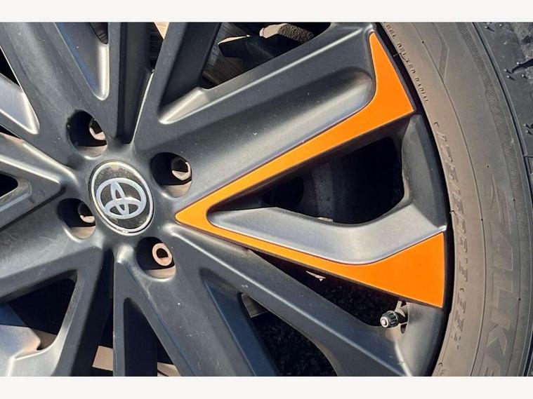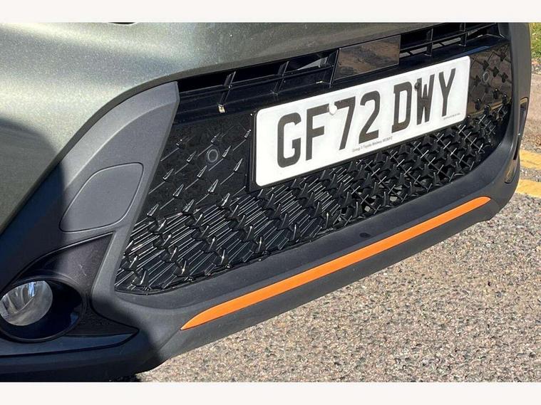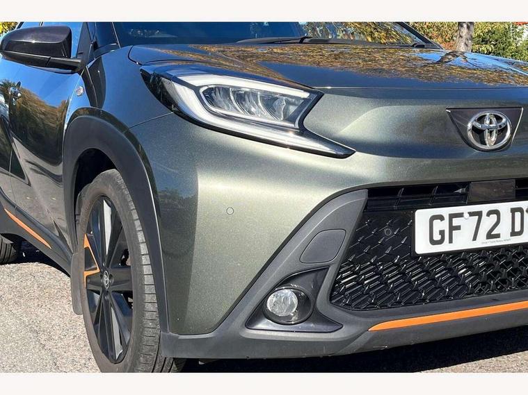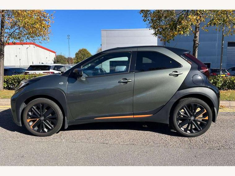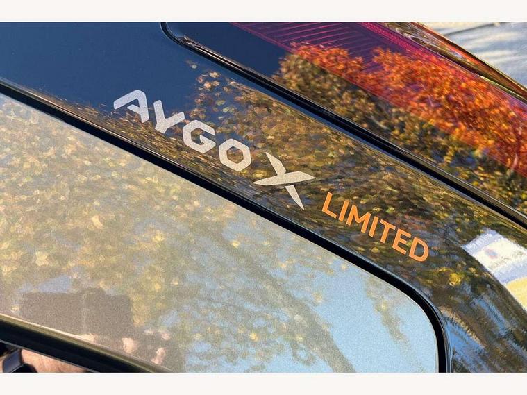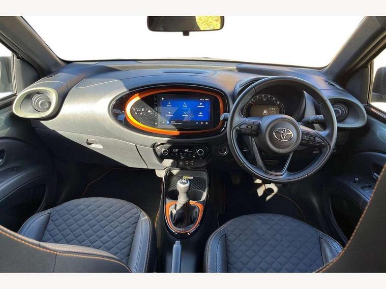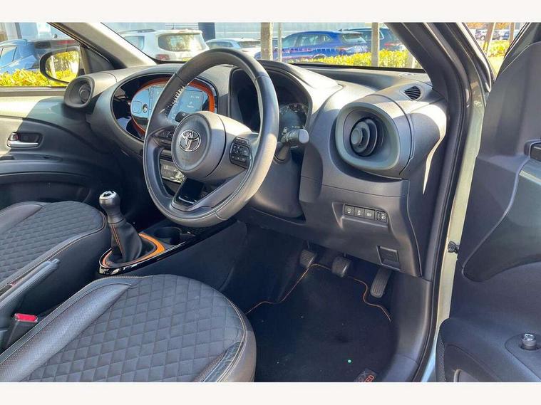 4.2" TFT colour screen, Adjustable speed limiter, Analogue speedometer, Bluetooth connectivity, Digital tachograph, Driver attention alert system, eCall emergency call system, Electric power steering, Front and rear parking sensors with auto brake, Intersection turn assist, Key reminder warning, Noise reduction kit, Pre collision system with emergency steering assist, Remote boot door release on key, Reversing camera with static guide lines, Smart entry and push button start, Speed limit display, Start and stop, Wireless charger, Wireless Smartphone Integration includes Apple CarPlay and Android auto, Vehicle Stability Control (VSC), 4 speakers, 9" HD multimedia display touch screen with Toyota smart connect, DAB digital audio broadcast, USB connector, Auto headlights, Auto wipers, Automatic headlights cut-off, Automatic high beam On/Off switch, Bicycle towing hook, Black fog light surrounds, Black side protection mouldings, Black wheel arch mouldings, Body colour door handles, Body coloured front bumper, Boot door scuff plate, Canvas roof, Eclipse black rear bumper, Electric heated door mirrors, Follow me home headlights, Front fog lights, Front power windows, Gloss black door mirrors, Gloss black upper front grille, Headlight cut-off reminder, LED daytime running lights guide, LED front light guide, LED High mounted stop lamp, LED projector headlights, Limited edition logo on C pillar, Magnolia strip on lower front and rear bumpers, Manual day/night rear view mirror, Manual headlight levelling, Metallic Bi-tone paint, Power adjustable door mirrors, Privacy glass, Rain sensor, Rear combination lights LED bulb type, Rear side wing doors, Rear windscreen defogger, Rear windscreen wiper, Remote hazard lights system, Short antenna, Variable intermittent windscreen wipers, 12v power outlet - front, 2 seat bench in 2nd row, 3 spoke leather steering wheel, 50/50 split folding rear seat, Adjustable speed limiter switch on steering wheel, Audio and telephone switches on steering wheel, Auto air conditioning, Black insert on steering wheel, Black roof lining, Boot light, Canvas top headlining, Centre room light, Chrome interior door handles, Chrome surround on air conditioning buttons, Clean air filter, Driver and front passenger heated seats, Floor mats, Front and rear cup holders, Front head rest deco art, Front head restraints, Height adjustable driver seat, Intelligent adaptive cruise control switch on steering wheel, ISOFIX child restraint system on rear seats, Lane departure alert switch on steering wheel, Leather gearshift knob, Light blue ambient lighting in centre console, Manual tilt steering wheel, Manually reclining and sliding driver seat, Manually reclining and sliding front passenger seat, Multimedia switches on steering wheel, Partial leather seats, Pollen filter, Rear door pockets, Rear head restraints, Satin silver insert on gear shift knob, Single compartment glovebox with lights, Single front passenger seat, Soft tonneau cover, Sun visors with mirror on driver and passenger side, Voice recognition switch on steering wheel, Toyota safety sense pack - Aygo X, Anti lock braking system + Electronic brake force distribution, Child safety door lock, Emergency brake light signal (EBS), Hill start assist control (HAC), Passenger airbag on/off switch, Seat belt reminder for front and rear seats, Supplement restraints system (SRS) - 6 airbags, Traction control, Tyre pressure warning system, Immobiliser, Remote power door locks, Black wheel centre caps, Mandarina Orange wheel insert, Tyre repair kit,