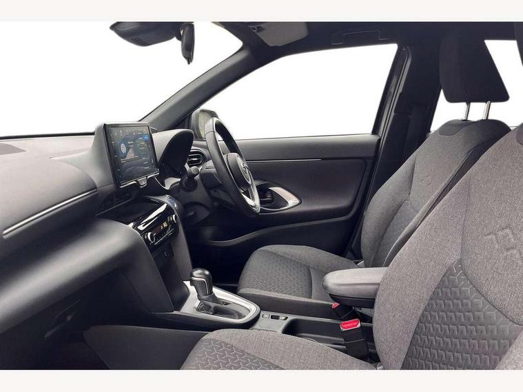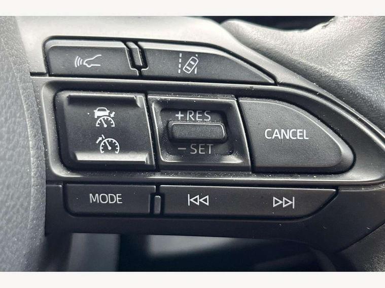 7" Multi information display screen, 8" Toyota touch 2 multimedia system with Smartphone integration with Apple CarPlay and Android auto, Adjustable speed limiter, Bluetooth connectivity, Driver attention alert system, eCall emergency system, Electric power steering, Full range intelligent adaptive cruise control, Hybrid system indicator, Key reminder warning, Lane trace assist, Multimedia, audio, telephone and voice recognition switches on steering wheel, My T Connected services, Pre-collision system enhanced with emergency steering assist, Reversing camera, Road sign assist - RSA, Steering assisted vehicle stability control, 6 speakers, DAB Digital radio, USB connection, 3rd brake light, Acoustic windscreen glass, Aluminium roof rails, Anti-jam protection on power windows, Auto high beam [AHB] with on/off switch, Automatic headlights, Black lower front grille, Black Shark-fin antenna, Black upper front grille, Black wheel arch mouldings, Body colour door handles, Body colour front bumper, Body colour rear bumper, Electric adjustable heated door mirrors, Follow me home headlights, Front and rear electric windows with auto up/down function, Headlight cut off reminder, Indicators integrated on door mirrors, Intermittent rear wiper, LED daytime running lights guide, LED front fog lights, LED front light guide, LED Indicators, LED projector headlights, LED rear light guide, Manual headlight levelling, Manually retractable door mirrors, Noise reduction layer on windscreen, Privacy glass, Rain sensor, Rear LED lights with sequential indicators, Rear side wing doors, Rear spoiler, Rear window defogger, 12v power outlet - front, 2x Rear coat hooks, 3 seat bench in 2nd row, 3 spoke leather steering wheel, 40:20:40 split folding rear bench seat, Adjustable speed limiter switch on steering wheel, Auto air conditioning, Black roof lining, Boot light, Central armrest, Centre console in light blue ambent lighting, Driver and front passenger personal lights, Fabric door trim, Fabric upholstery, Footwell in light blue ambient lighting, Front console box, Front cup holders, Front head restraints, Glovebox, Height adjustable driver's seat, Height adjustable front passenger seat, Hooks for luggage holding belts, Lane departure alert switch on steering control, Leather gearshift, Light blue ambient lighting on front doors, Manual telescopic and tilting steering wheel, Mirror on driver and passenger sun visor, Pollen air filter, Rear cup holders, Rear head restraints, Single front passenger seat, Soft tonneau cover, 3x3 point rear seat belts, ABS+EBD+Brake assist, Driver and passenger central airbags, Driver and passenger front airbags, Driver and passenger side airbags, Electronic parking brake, Emergency brake light system (EBS), Front seat belt reminder, Hill start assist control (HAC), ISOFIX child restraint system, Passenger airbag on/off switch, Pre-collision system with pedestrian and cyclist detection, Rear door child safety locks, Rear passenger side airbags, Rear seat belt reminder, Traction control, Tyre pressure warning system, Immobiliser, Intrusion alarm, Keyless smart entry with push button start, Power door locks, Power passenger window lock, Remote door lock, Tyre repair kit,