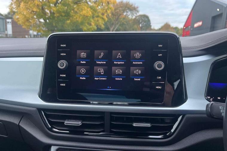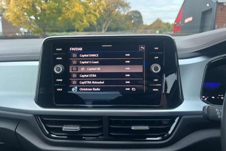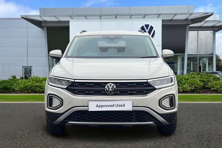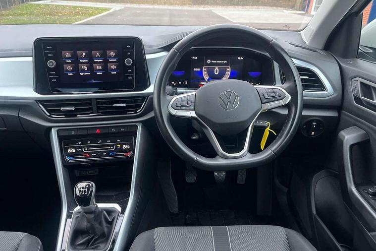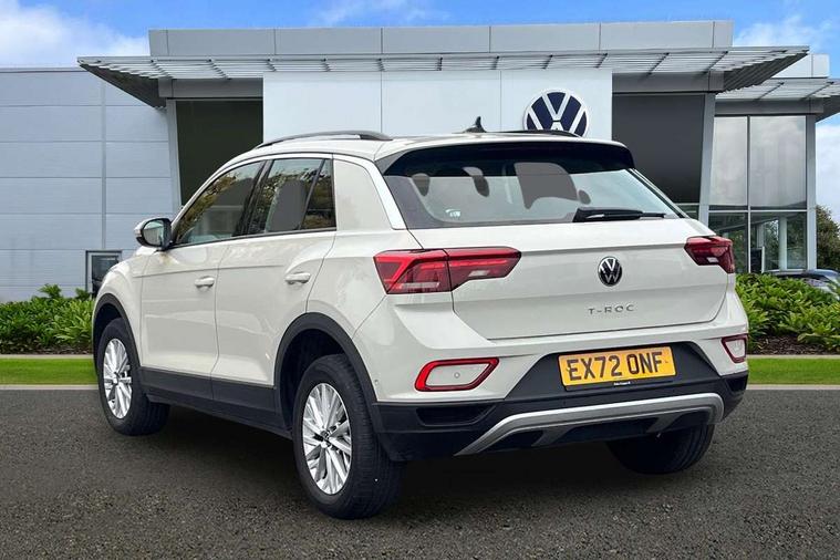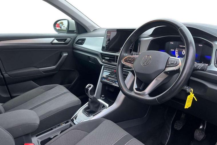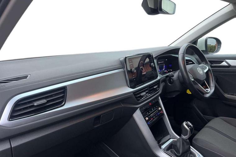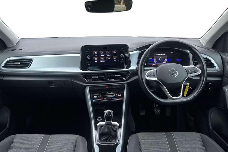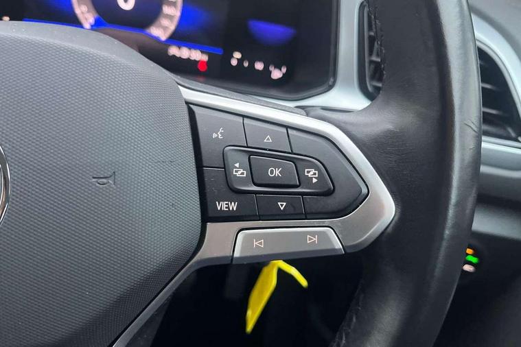 Bluetooth mobile phone interface, Driver alert system with fatigue detection, Driver tips and journey analysis, Emergency call service, Lane keeping system Lane Assist, Modified key software - reduce switch off time for key status change to Long no motion, Online services, Park assist including front and rear parking sensors, Power assisted speed sensitive steering, Service interval indicator, Tailgate/trunk lid release from outside, Think blue trainer driver tips and journey analysis, Warning sound and light for front seatbelts unfastened, Wireless app connect, Battery regeneration during braking, Front shock absorption, Rear shock absorption chassis with increased ride height, Start/stop function with battery regeneration, DAB Digital radio, Diversity antenna for FM reception, Front and rear 6 speakers, Music playback - MP3, WMA and AAC files, Premium USB cable in choice of either Apple or Android smartphone compatibility, SD card slot, Simultaneous pairing of 2 compatible mobile devices, Title and cover art display, We Connect and We Connect Plus functionality, 3rd brake light, Auto dimming interior rear view mirror, Automatic hazard lights activation under emergency braking, Automatic headlight control with LED separate daytime running lights with coming/leaving home function, Black roof rails, Body coloured bumpers and radiator grille with chrome trim and front fog lamps with chrome bezel, Body coloured exterior mirror housings and door handles, Extended roof spoiler, Exterior mirrors aspherical on driver side, convex on front passenger side, External USB type C socket and charging sockets, Front windscreen wiper with intermittent wipe and 4 position delay, Heated rear window, LED Headlights, LED rear combination lamps, LED rear number plate lights, LED tail lamp rear comination lamps, Power windows with comfort operation and circuit breaker, Rain sensor, Rear exhaust tailpipe, Rear fog light on one side and reversing lights on both sides, Rear side wing doors, Rear wash/wipe with intermittent wipe setting, Remote electrically foldable door mirrors, puddle lights and reverse activated passenger's door mirror, 12V power socket in centre console, 3 rear head restraints, 3 seat bench in 2nd row, 4 load lashing points in luggage compartment, Air care climatronic air conditoning system with active combination filter and 2-zone temperature control, Ambient lighting with mirror logo projection, Cloth upholstery, Door and side trim panel in cloth, Drawer under drivers seat, Driver/front passenger seat height adjustment, Front centre armrest, Front comfort sports seats, Front cupholders x 2, Front reading light, Instrument lighting, white adjustable panel illumination, Interior light delay, Isofix child seat preparation, Leather gearshift handle, Load-through provision with cup holder when folded down ('Unsplit rear seat bench, split folding backrest, with centre armrest), Luggage compartment lighting, Lumbar support for driver's and front passengers seat, Non-folding front passenger seat backrest, Single front passenger seat, Storage compartment in left and right luggage area, Storage compartment in rear doors, Storage compartments in driver and front passenger doors, Sunvisors with illuminated vanity mirrors, Variable boot floor, height adjustable and removable, Driver assistance pack without proactive passenger protection - T-Roc, 3 point height adj front seatbelts + pretensioners, 3 point seatbelts in outer rear with ECE label, ABS, Child locks on rear doors, Driver and front passenger airbag with front passenger airbag deactivation, Driver and front passenger safety-optimised head restraints, Drivers seatbelt reminder, Electronic parking brake, Electronic Stability Control (ESC) inc EDL (Electronic Differential Lock) and ASR (Traction Control), Front and rear passengers curtain airbag system including front side airbags, Front assist with city emergency braking and pedestrian monitoring, Front disc brakes, Front seat side impact airbags, Hill start assist, Predictive pedestrian protection, Rear disc brakes, Single tone horn, Tyre pressure loss indicator, Volkswagen roadside assistance, Alarm with interior protection, Anti-theft alarm system with interior monitoring, backup horn, and towing protection, Remote central locking with SAFELOCK, radio remote control with 2 remote control folding keys, Pewter matt decorative inserts for intrument panel, centre console and door panels at the front, Trims for alloy wheels,