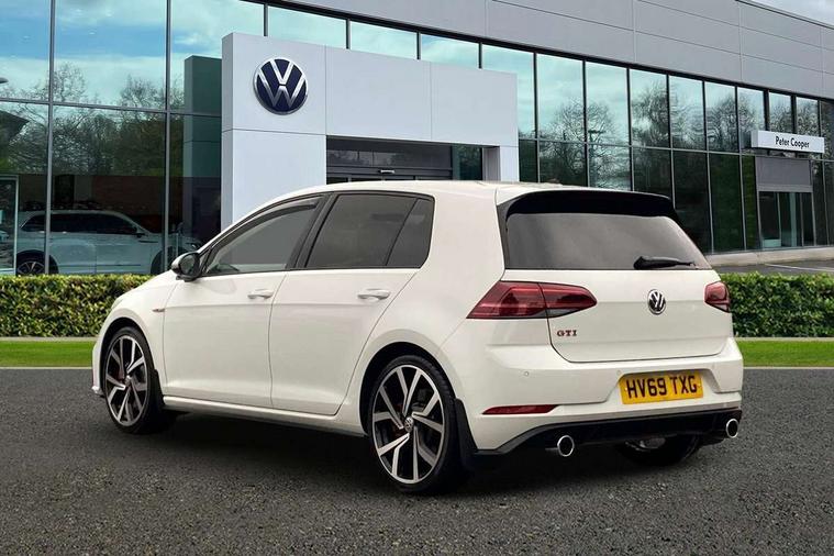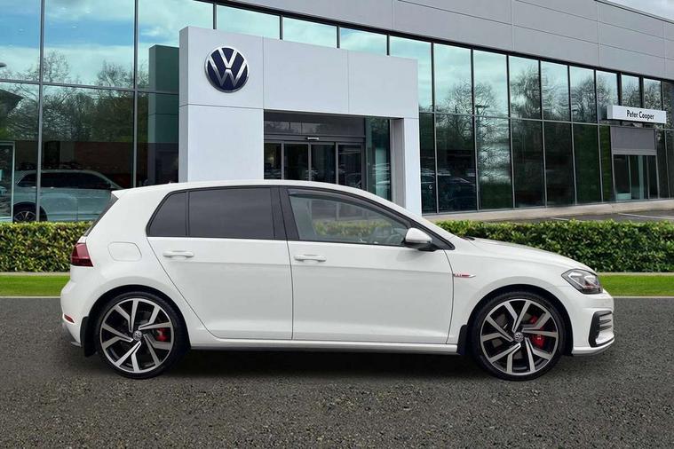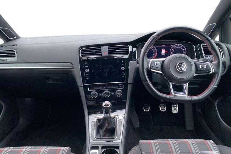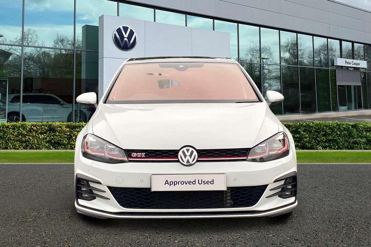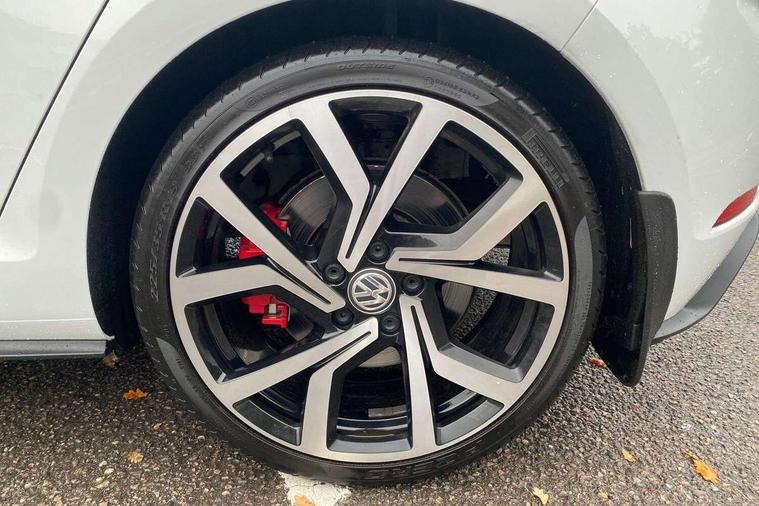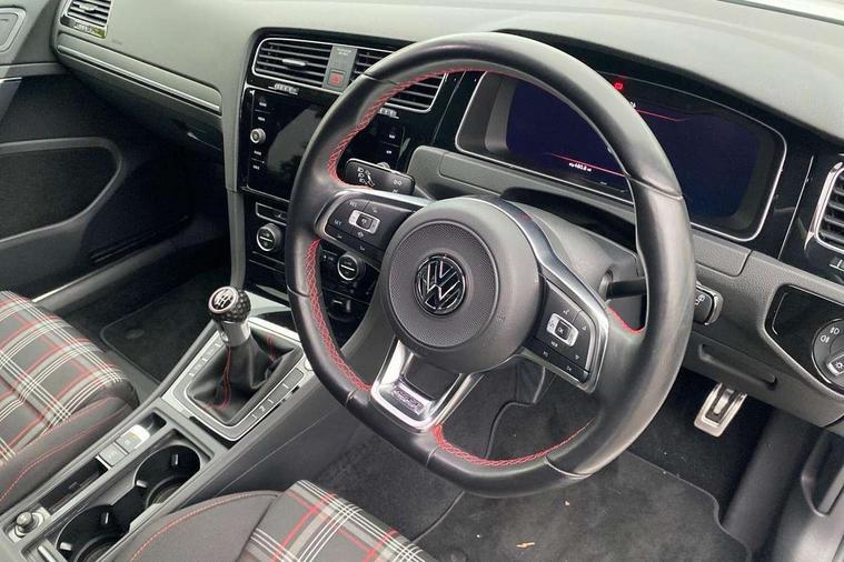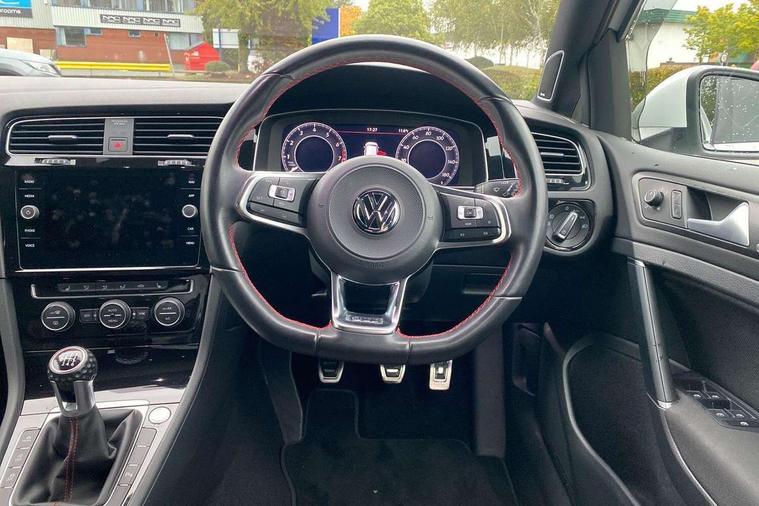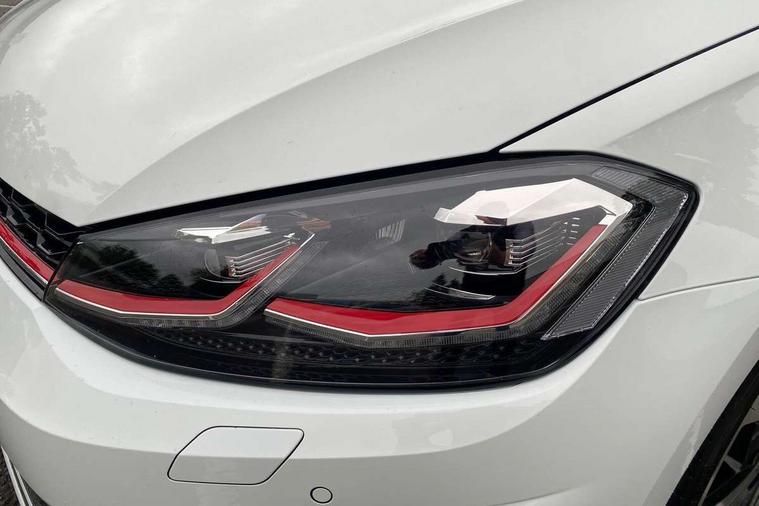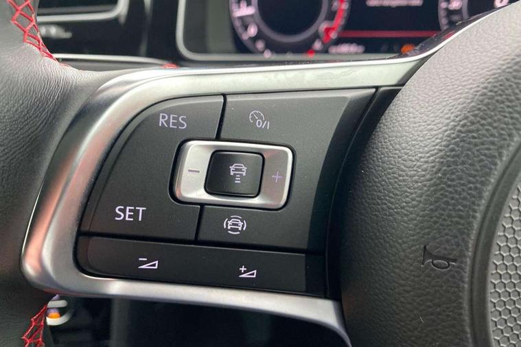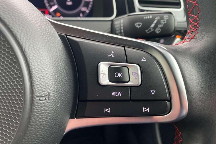 'Lights On' Reminder warning buzzer, ACC - Adaptive cruise control with front assist, forward collision warning, distance monitoring, city emergency brake and speed limiter, Bluetooth telephone and audio connection for compatible devices, Brake pad wear indicator warning light, Driver alert system, Driver profile selection, Driving Mode Selection with four preset modes - Eco, normal, sport or individual modes, Instrument cluster in white, Lane assist with dynamic light assist and traffic sign recognition, Multifunction computer with visual gear change recommendation for fuel consumption, Power assisted speed sensitive electro-mechanical steering, Push tank flap, Rear view camera, Speedo, rev counter, electronic odometer, trip, service interval display, exterior temperature and fuel gauge, Stop/start system, Warning buzzer and light for front seatbelts unfastened, Battery regeneration during braking, Limited slip differential, Lowered sports suspension, XDS electronic differential lock, Composition media system, DAB Digital radio receiver, MP3/WMA compatability, Multi device interface (MDI) with USB connection, Premium USB cable in choice of either Apple or Android smartphone compatibility, SD card slot, SMS Functionality, USB and SD card connectivity, Volkswagen media control, 3D-LED tinted rear light clusters with indicator sweep function, Black rear diffuser, Body colour door handles, Body colour door mirrors with integrated indicators, Body colour rear roof spoiler, Body colour sports bumpers, Dusk sensor + automatic driving lights, Electric front windows, Electric rear windows, Electrically adjustable and heated door mirrors, Fully galvanised body, GTI logo in red on front and back, GTI logo lettering on front wings on right and left, Heated rear windscreen, High level 3rd brake light incorporating LED Technology, Honeycomb radiator grille - black, LED daytime running lights, LED front fog lights with static cornering light function, Rear fog lamp, Rear window aerial, Rear window wash/wipe with intermittent wipe, Reflectors in all doors, Shiny black aerofoil downside, Sill extensions, Twin exhaust tailpipe, Windscreen wipers/ intermittent wipe + 4 position delay, 12V socket in luggage compartment, 3 rear headrests, 4 load lashing points in luggage compartment, 60/40 split folding rear seat backrest, Bag hook in luggage compartment x 2, Black headlining, Climate control - 2 zone electronic air conditioning with automatic air recirculation and allergy filter, Cooled glovebox, Dust/pollen filter, Front + rear carpet mats, Front centre armrest with storage compartment and two rear air vents, Front seat back storage pockets, Grab handles front x 2, rear x 2 with integrated coat hooks, Height and reach adjustable steering wheel, Illuminated door sills, Illuminated vanity mirrors, Instrument lighting white adjustable panel illumination, Interior light delay, Isofix preparation for 2 rear child seats, Leather gear knob and handbrake grip, Load through provision with rear centre armrest and cupholders x2, Luggage compartment lighting, Multifunction leather steering wheel with GTI logo and selector lever boot grip with red stitching, Overhead storage box, Stainless steel pedals, Storage box in luggage compartment, Storage compartment in roof console with cover, Storage compartments in front doors, Storage compartments in rear doors, Stowable luggage compartment cover, Sun visors, Variable boot floor, height adjustable and removable, Ambient lighting pack - Golf, Convenience Pack - Golf, Light and Sight pack - Golf, Mirror pack - Golf, 3 rear three point seatbelts, Airbags - Driver's and front passenger's, curtain airbag, Driver's knee, front side impact and passenger's airbag deactivation switch, Anti-lock Braking System (ABS) with Hydraulic Brake Assist (HBA), Automatic post collision braking system, Child locks on rear doors, Driver/Passenger optimised head restraints, Electronic parking brake with auto hold, Electronic stability control (ESC) including Electronic differential lock (EDL) and ASR (Traction control) with deactivation via infotainment system, Front ventilated disc brakes and rear disc brakes, Pre crash preventive occupant protection, Red brake calipers, Three point height adjustable front seatbelts with tensioners, Tyre pressure loss indicator, Alarm with interior protection and deactivation via infotainment system, Electronic engine immobiliser, Keyless entry with start/stop button on centre console, Remote central locking with 2 remote folding keys, Chrome plated air vent surround, Chrome plated electric mirror adjustment light switch surround, Honeycomb black decorative inserts, Piano black centre console, Steel space saver spare wheel,