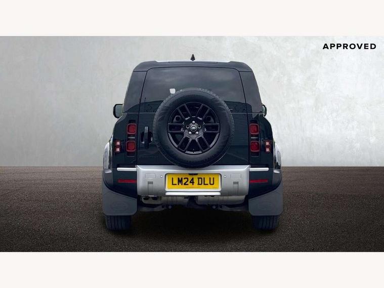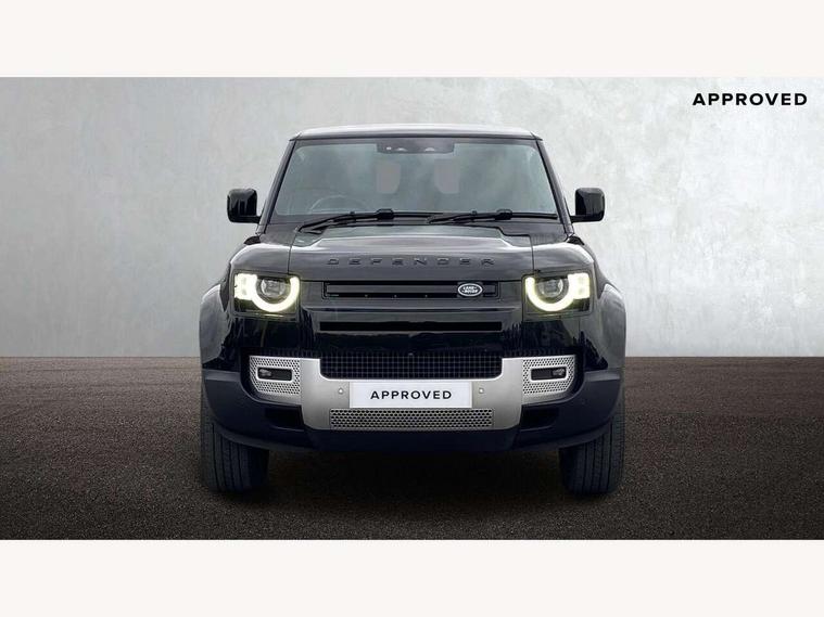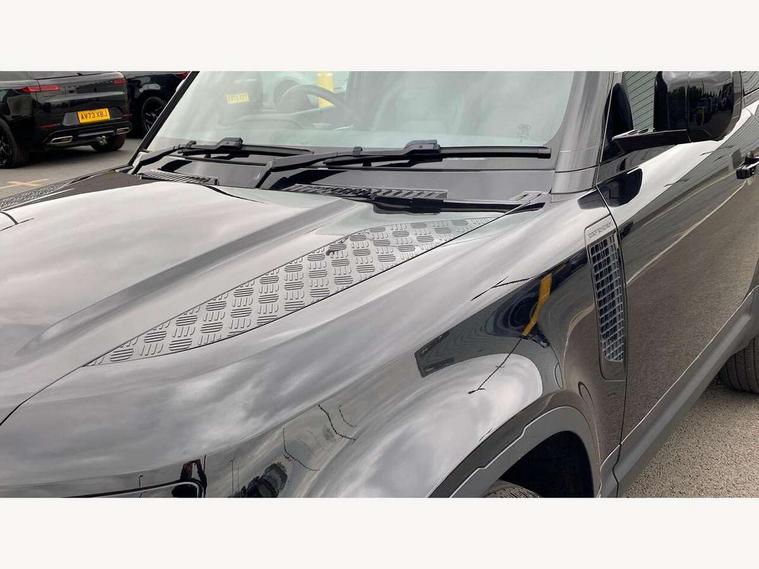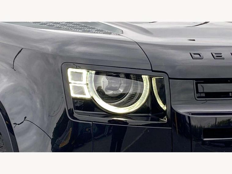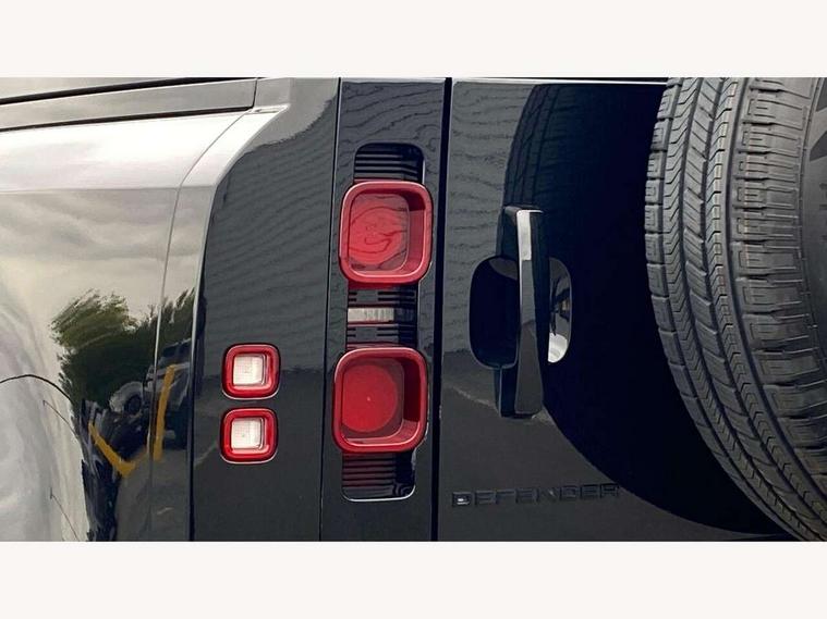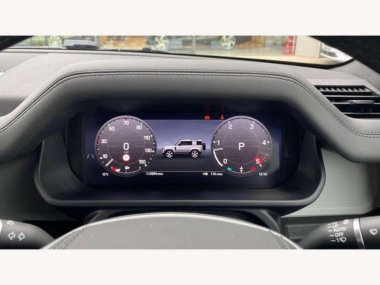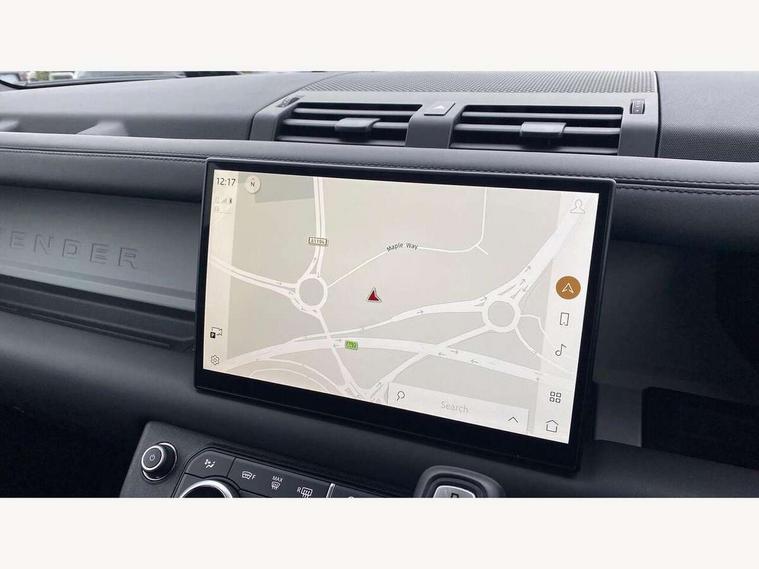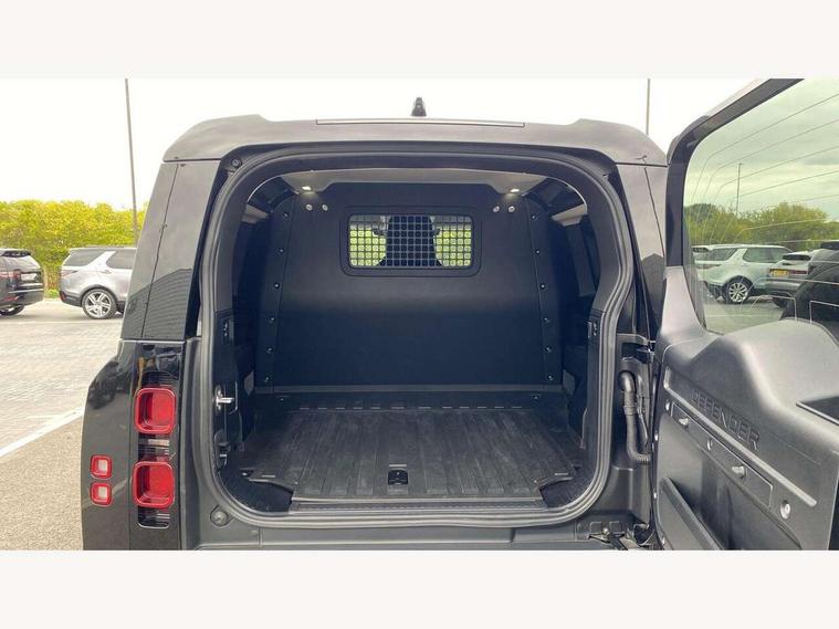 Customer Configurable Autolock, 11.4" touchscreen, 360 parking aid, 3D Surround Camera with 360 View, 180 Rear View, Front Traffic Detection, Forward Vehicle Guidance, Tow Hitch Assist and clear sight Ground View, Adaptive cruise control, Blind spot assist, Brake Hold, Driver condition monitor, Electric power assisted steering (EPAS), Lane keep assist, Low traction launch, Pivi pro connected, Rear collision monitor, Rear traffic monitor, Traffic sign recognition adaptive speed limiter, Trip computer, Tyre pressure monitor, Wade Sensing, Android Auto, Apple CarPlay, DAB Radio (Digital Audio Broadcasting), Meridian 280W sound audio system with 7 speakers with subwoofer, Alpine lights, Assisted tailgate, Auto High Beam Assist, Automatic headlight levelling, Automatic headlights and rain sensitive front wipers, Centre high mounted stop light, ClearSight interior rear view mirror, Electric heated/power fold door mirrors with approach lights and auto dimming driver side, Electric windows with one touch open/close and anti-trap, Exterior signage panel, Follow me home lighting, Front fog lights, Heated rear window with timer, Heated windscreen, LED tail light, Privacy glass, Puddle lights, Rear fog lights, Rear wash wiper, Side-hinged tailgate, Standard roof, Standard tread plates, 14 way heated and cooled electric adjustable memory front seats with 4 way manual headrests, Additional lashing points, Dual zone climate control, Durable rubber cabin flooring, Electric adjustable steering column, Footwell lights, Front jump seat and folding front centre armrest, Full height bulkhead behind row 1 seats, Glovebox storage, High sided rubber mats, Loadspace cover, Loadspace hooks, Loadspace rubber mat, Overhead stowage for sunglasses, Rear centre headrest, Rear reading light, Standard seating configuration, Sunvisors with illuminated vanity mirrors, Twin front cupholders with cover, Upgraded loadspace LED lighting, Online pack - Defender with data plan, Brake pad wear indicator, Electronic traction control, Emergency braking, Front airbags, with passenger seat occupant detector, Power operated child locks, Remote for (e-Call, Optimised assistance call, InControl app, Climate, beep and flash and door), Seat belt reminder, Intrusion sensor, Keyless entry system, Locking wheel nuts, 8 speed automatic transmission, ABS and EBA, All wheel drive, CBC - (Cornering brake control), Dynamic stability control, Electronic brake force distribution, Electronic park brake, Gradient acceleration control, Hill Descent Control, Hill start assist, Particulate filter (DPF), Push button start, Roll stability control, Trailer stability assist, Twin speed transfer box (high/low range), Extended leather upgrade,