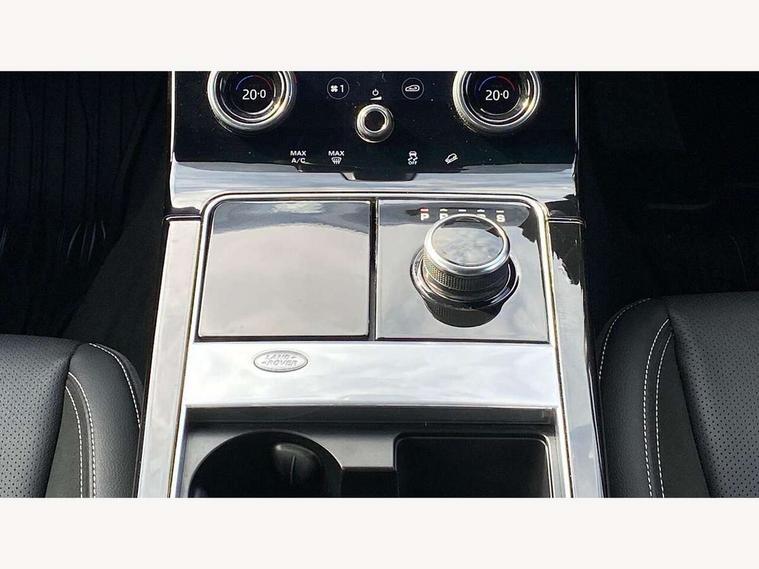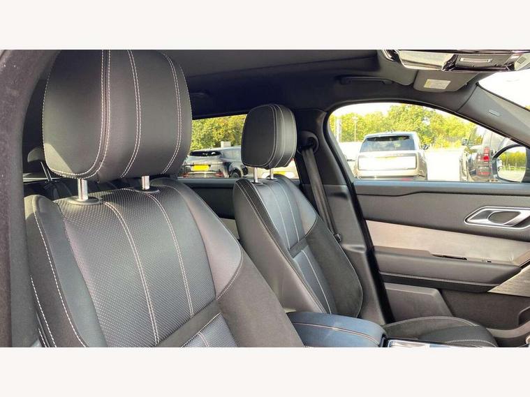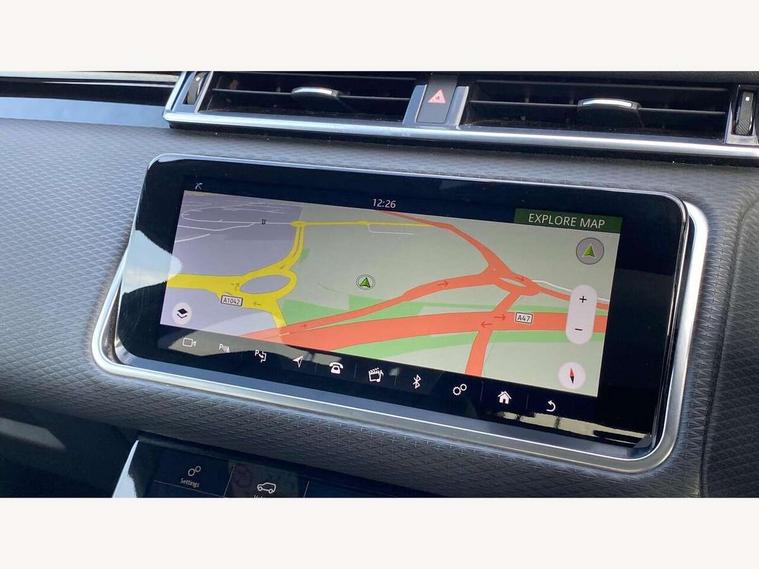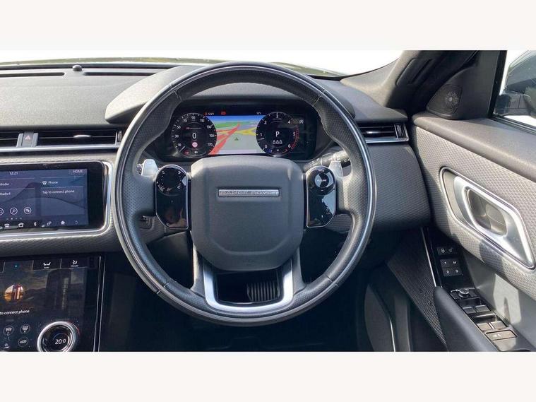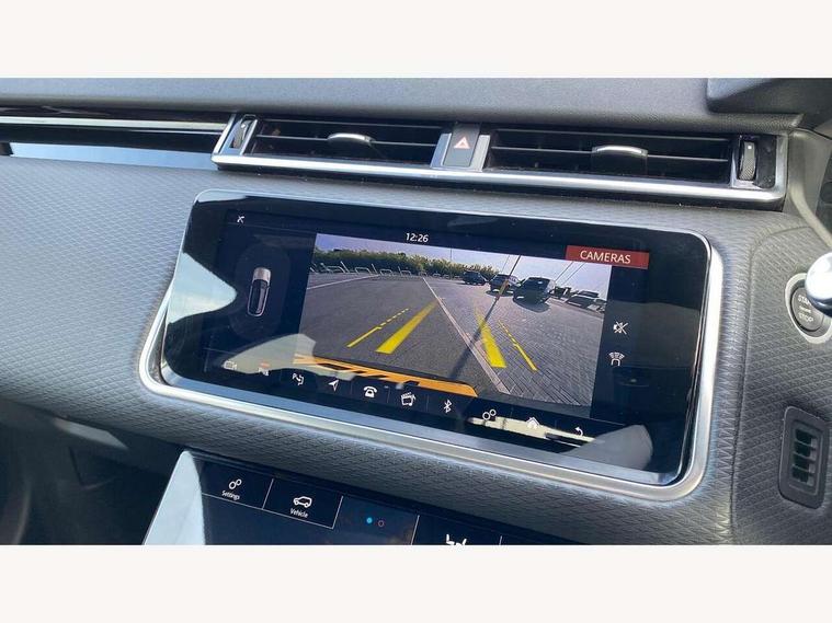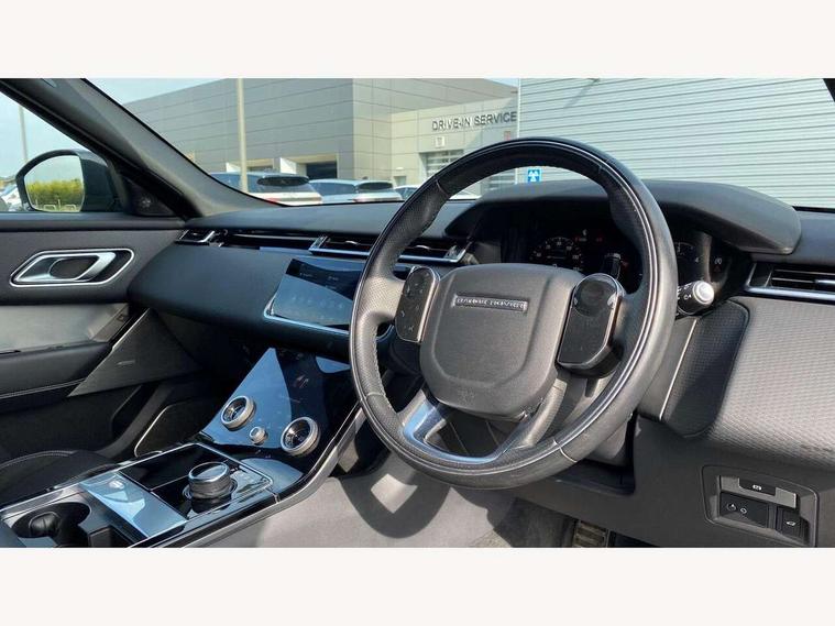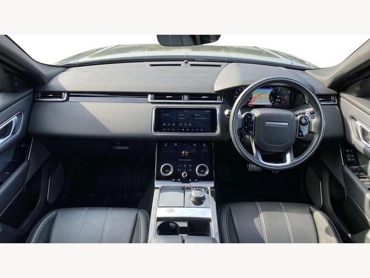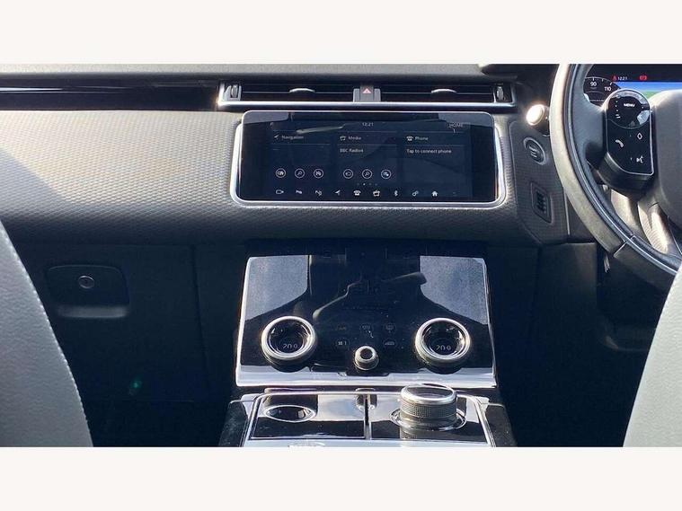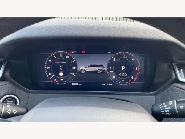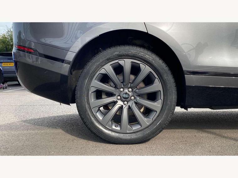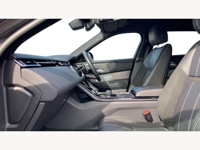 360 Parking aid sensors, Android Auto, Apple car play, Bluetooth connectivity, Brake pad wear indicator warning light, Driver condition monitor, InControl remote, InControl Touch navigation pro, Interactive Driver display instrument cluster, Land Rover InControl apps, Lane keep assist, Park Assist - Parallel Park/Parking Exit/Perpendicular park, Pro services and wifi hotspot, Rear traffic monitor, Service indicator, Speed proportional electronic power assisted steering (EPAS), Traffic sign recognition with adaptive speed limiter, Trip computer, Voice control system, 8 speed automatic transmission, Open differential with torque vectoring by braking, Single speed transfer box, Digital Audio Broadcast radio-DAB, Steering wheel mounted controls, Acoustic laminated windscreen, Adaptive front lighting system, Auto dimming interior rear view mirror, Automatic headlamp levelling, Automatic headlights, Body coloured bumpers, Boot protection plate, Electric windows with one touch open/close and anti trap, Flush deployable exterior door handles, Follow me home headlights, Headlamp power wash, Heated rear window with timer, Heated windscreen + heated windscreen washer jets, Power fold, auto-dimming, heated door mirrors with approach lights, Rain sensor windscreen wipers, Rear fog lights, Rear wash/wipe, Tailgate/boot lid spoiler, Trailer stability assist, Velar and R-dynamic badge, 40:20:40 split folding rear seats, Adjustable front armrest, Bright metal pedals, Driver and passenger illuminated vanity mirror, Isofix system on outer rear seats, Loadspace cover, Passive front headrests, Rear centre headrest, Satin chrome gearshift paddles, Standard interior, 350mm front brakes, 3x3 point rear seatbelts, Anti-lock braking system (ABS), Cornering brake control, Curtain airbags, Door side intrusion beams, Driver airbag, DSC - Dynamic Stability Control, Electronic brake force distribution, Electronic parking brake, Electronic traction control, Emergency brake assist, Front and rear seatbelt reminder, Hill descent control, Hill launch assist, Low traction launch, Passenger airbag, Power operated child locks, Rear airbags, Roll stability control, Side airbags, Tyre pressure monitoring system, Unpainted brake calipers, Global lock and unlock switch on driver door, Immobiliser, Intrusion sensor, Keyless entry, Lock only switch on front passenger door, Perimetric alarm, Remote central locking,