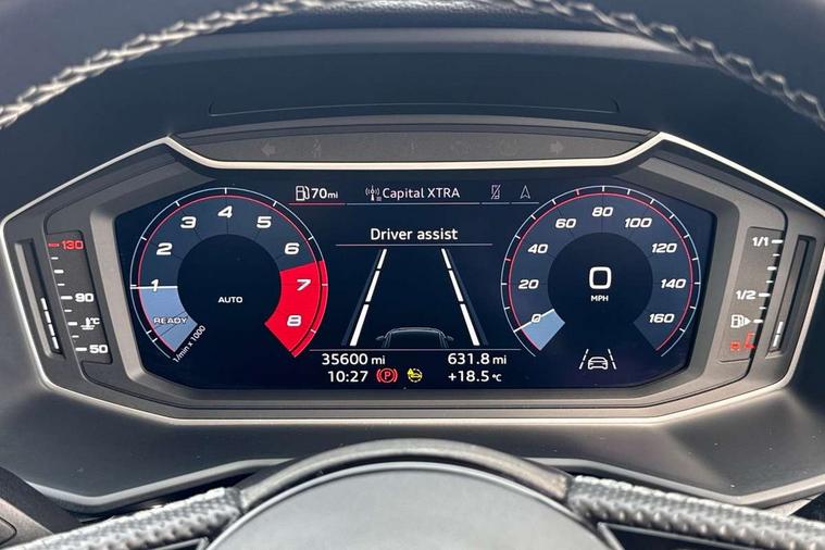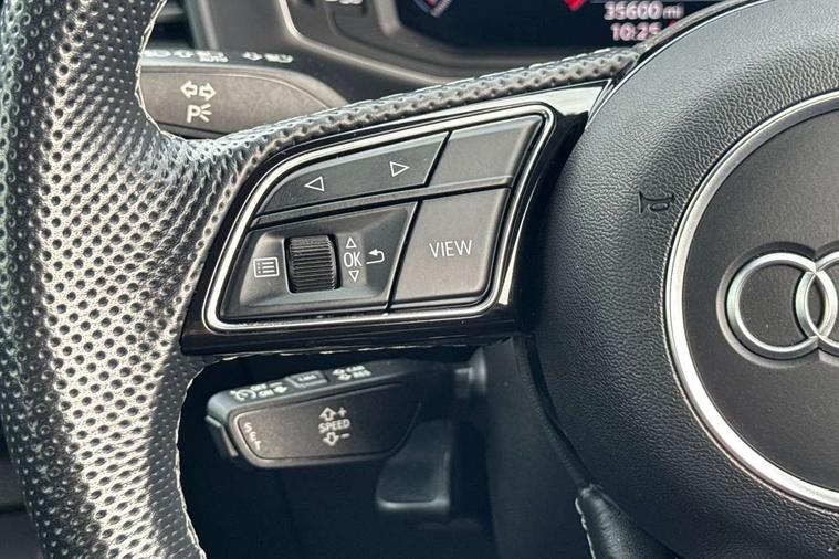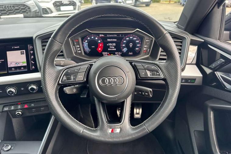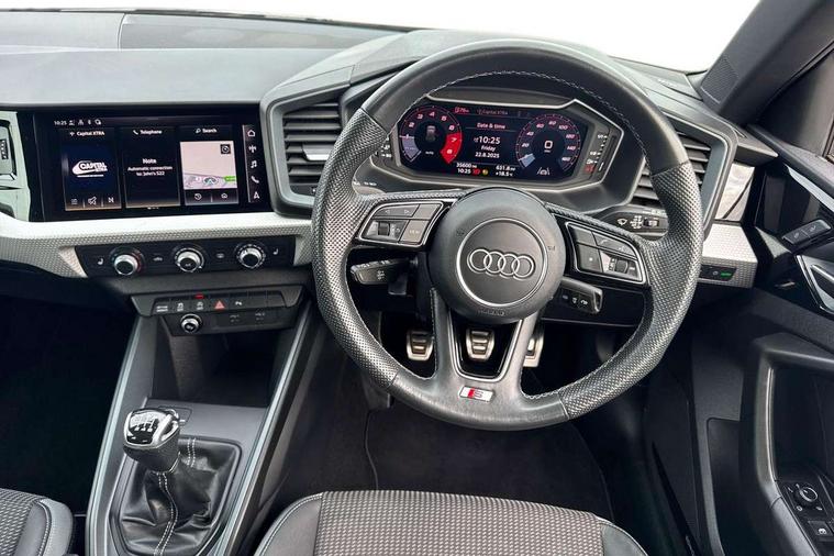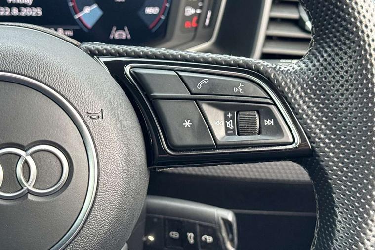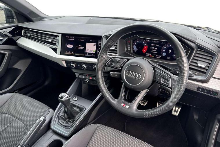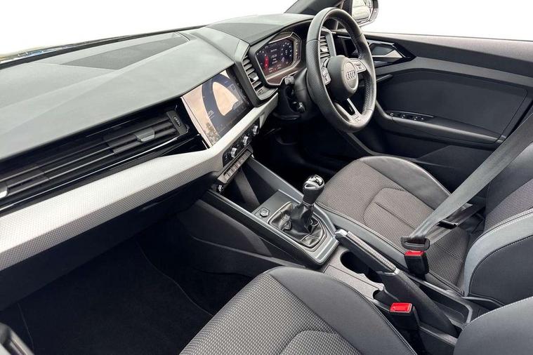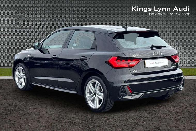 10.25" Digital instrument cluster display classis style instrument dials + speed, odometer, time, outside temperature, telephone menu + fuel level warning, Audi drive select - power steering assistance + engine, Audi smartphone interface with connect compatible smartphone via USB directly MMI display + Nav, music, third party apps controlled via MMI controller, Automatic start/stop system, Bluetooth interface, Cruise control, Driver's information system, Electromechanical power steering, Emergency e-call, Emergency services call system, Lane departure warning system, Service interval indicator, Speed limiter, Voice control system, Washer fluid level indicator, Sports suspension, 1 x SDXC card reader, 2 x USB type C connection points, DAB Digital radio, MMI radio plus with 8.8" colour MMI display screen and MMI touch, Auto dimming rear view mirror, Body coloured door mirrors, Door sills with aluminium inlays and S Line logo, Electric front and rear windows, Electrically adjustable, heated, folding door mirrors with integrated LED side indicator, Front side air inlets in grained matt black and C frame in anthracite black, Heat insulating glass windscreen and side windows, Heated rear windscreen, High level LED brake light, LED headlights with LED rear lights + dynamic rear indicators + headlight adjustment and high beam, turning light + LED daytime running lights, Radiator grille and rear diffuser in matt anthracite black, Radiator protective grille frame in matt aluminium silver, Rain and light sensors, Rear fog lights, Rear side wing doors, Rear wing door, Rear wiper, S line badges on front wings, Side front spoiler lips in grained matt black, 12V socket in centre console with two cup holders, 3 rear seats with headrests, 3 seat bench in 2nd row, 3 spoke leather multi-function plus steering wheel features S badging and grips in perforated leather with contrast stitching, 40:60 Split folding rear seat or folded fully, Black cloth headlining, Driver and passenger seat with manual height adjust with forward and backwards adjustment, Front and rear black floor mats with contrast stitching in fine silver, Front head restraints, Front passenger seat, Height and reach adjustable steering wheel, ISOFIX child seat mounting for front passenger and outer rear seats including top tether attachment point of outer rear seats, Leather gear knob with aluminium trim, Luggage compartment light with front and rear reading lights, Manually adjustable lumbar support in front seats, Stainless steel pedals, LED interior lighting pack - A1, Luggage compartment pack - A1, S line exterior styling pack - A1 Sportback, 3x3 point rear seatbelts, Audi pre-sense front with pedestrain and cyclist recognition, Brake assist function, Driver and front passenger airbag with front side and head airbags, Electronic Stability Control including ABS, EBD, ASR and EDL, Front passenger airbag deactivation switch, Hill hold assist, Manual rear child locks, Seatbelt height adjustment for front seats, Seatbelt monitoring, Tyre pressure warning light, Warning triangle and first aid kit, Anti theft alarm, Anti theft wheel bolts and loose wheel warning, Immobiliser, Remote central locking with 2 foldaway keys, Aluminium trim for control switches, air vents and digital instrument cluster, Silver grey inlays polygon structure in diamond paint finish, Structured grey accent areas including air vents, door handle recesses and centre console in quartz paint finish,