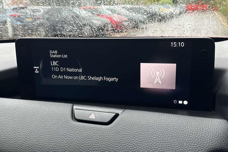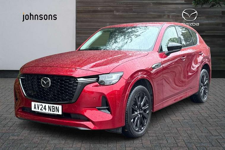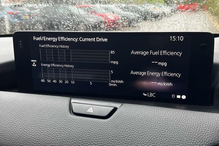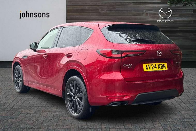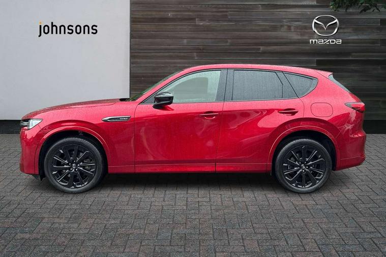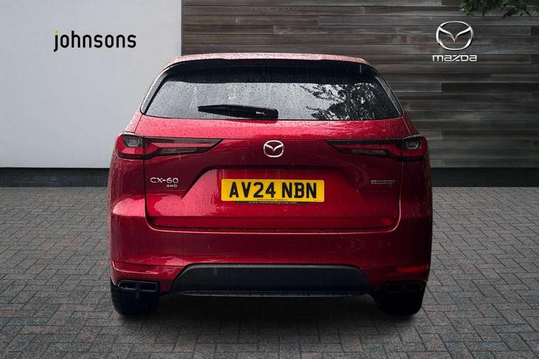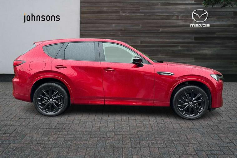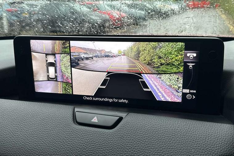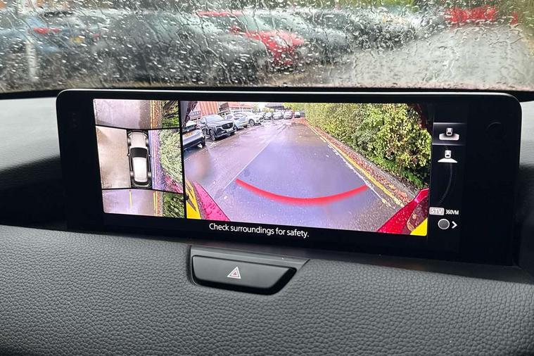 Emergency lane keeping with blind spot assist, Low washer fluid warning light, 12.3" Colour entertainment centre display with mazda connect infotainment, 12.3" TFT Colour display, Adjustable speed limiter, Black faux leather vinyl dashboard with titanium piping, Blind spot assist, Blind spot monitoring with rear cross traffic alert, Distance alert system, Driver attention alert system, Driver Monitoring with personal identification, E-call with GPS, Emergency stop signalling system, Exit warning function, Front and rear parking sensors, Ingress / Egress support and automatic driver position guide, Integrated bluetooth, Intelligent speed assist, Kinematic posture control, Lane keep assist system (LAS) with Lane departure warning system (LDWS), Mazda Driver Personalisation System, Mazda Navigation System with european mapping, Multimedia Commander, PAS, Power lift gate with handsfree function, Power start/stop button, Reversing camera with static guide lines, Speed alert, Traffic sign recognition, Trip computer, Windscreen projected colour active driving display, Wireless apple car play/android Auto, Type 2 Mode 2 cable for AC charging via UK 3-pin plug, 7.2 kw On board Charger, Mi-Drive (Normal, Sport, Off-road, Towing and EV mode), Type 2 Mode 3 cable for AC charging via home or public charge points, AM/FM and DAB radio, Bose surround sound system with 12 Speaker, Bose center point, Bass match and audio pilot technology, Steering wheel mounted audio/bluetooth controls, USB-C inputs (x2 front and x2 rear), Auto dimming driver's door mirror, Automatic headlight levelling, B-pillar and C-pillar garnishes in gloss black finish, Body colour roof spoiler, Body coloured bumpers, Body coloured wheel arch and side mouldings, Coming/leaving home lighting function, Dark plated headlight lense, Dark plating finish signature wing in front grille, Dark plating front side garnish, Differentiated front bumper design to accentuate the intake, Dusk sensing headlights, Electric front/rear windows with one touch auto up/down, Electrically adjustable, heated auto power folding door mirrors with memory, Frameless auto dimming interior rear view mirror, Front kodo turn signal, Front wiper de-icer, Gloss black door mirrors, Headlight washers, High beam control, Honeycomb radiator grille in gloss black, LED 3rd brake light, LED rear signature combination lamps, Rain sensing front wipers with adjustable sensitivity and speed, Rear side wing doors, Rear wiper, Roof pillars and roof lining finished in lighter colour to soften the overall look, Signature LED daytime running lights, Silver decoration panel, 12v power outlet - front, 12V socket in boot, 3 height adjustable rear headrests, 3 seat bench in 2nd row, 40/20/40 split folding rear seats with quick levers in the boot, Ambient lighting, Cargo net, Chrome interior trim accents with steering wheel centre bezel, surround of engine start / stop button and glove box handle, Door panel trim vinyl leather with armrest, Driver and front passenger two rear grab handles with rear coat hooks, Driver and front passenger visors with covered vanity mirror and driver ticket holder, Driver seat electric tilt, slide, recline, height and lumbar adjustment, Driver, front passenger and two rear door pockets, Driver/passenger front seatback pockets, Dual zone climate control air conditioning with rear air vents, Electric telescopic and tilt adjustment steering wheel, Folding rear centre armrest with two cup holders, Front centre storage with two cupholders, Front down lamp with front and rear foot lamps, Front headrests, Front passengers seat electric slide, recline, height and lumbar adjustment, Front seat ventilation with 3-stage setting, Glovebox illumination, Heated front seats with 3 stage setting, Heated leather wrapped steering wheel, Heated outer rear seats with 3-stage setting, ISOFIX child seat anchorage points attached on outer rear seats, Karakuri tonneau cover, Leather upholstery, Leather wrapped gear shift knob, LED illumination luggage compartment, Paddle shift, Practical and spacious front centre armrest storage, Rear seat recline function for rear passenger comfort, Remote fold down rear seats, Roof mounted sunglasses holder, Single front passenger seat, 3 point ELR front seat belts x2 with pretensioners, 3 point ELR rear seat belts, Active bonnet, Anti-lock braking system (ABS), Drivers knee airbag, DSC - Dynamic Stability Control, Electronic parking brake with auto disengage function and auto hold function, Front and rear curtain airbags, Front dual stage driver and single stage front passenger airbags, Front passenger airbag cut-off switch, Front side airbags, Front smart city brake support, Hill decent control, Hill launch assist, Manual rear child locks, Seatbelt reminder for driver/front passenger and rear seats, Traction control, Tyre pressure monitoring system (TPMS), Remote central locking with deadlocking and automatic door lock when driving, Smart keyless entry, Thatcham accredited alarm and immobiliser, Black centre console panel, Dashboard panel - Black Vinyl, 20" Black metallic alloy wheels, Emergency tyre repair kit,