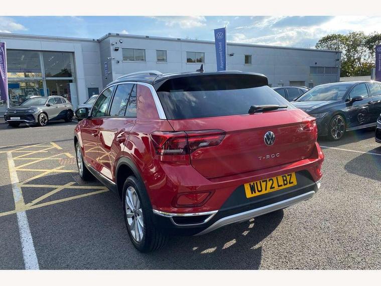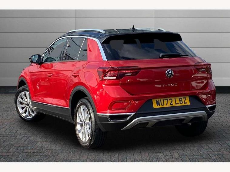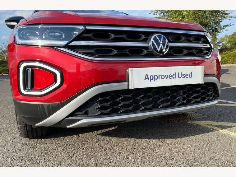 10.25" Digital cockpit pro, Bluetooth mobile phone interface, Driver alert system with fatigue detection, Driver tips and journey analysis, Emergency call service, Lane keeping system Lane Assist, Modified key software - reduce switch off time for key status change to Long no motion, Online services, Park assist including front and rear parking sensors, Service interval indicator, Tailgate/trunk lid release from outside, Think blue trainer driver tips and journey analysis, Warning sound and light for front seatbelts unfastened, Wireless app connect, Battery regeneration during braking, Start/stop function with battery regeneration, Diversity antenna for FM reception, Front and rear 6 speakers, Music playback - MP3, WMA and AAC files, Premium USB cable in choice of either Apple or Android smartphone compatibility, SD card slot, Simultaneous pairing of 2 compatible mobile devices, Title and cover art display, We Connect and We Connect Plus functionality, 3rd brake light, Auto dimming interior rear view mirror, Automatic hazard lights activation under emergency braking, Automatic headlight control with LED separate daytime running lights with coming/leaving home function, Body colour sports bumpers with silver metallic underbody fascia, Dynamic headlight range control with self adjusting whilst driving, Extended roof spoiler, Exterior mirrors aspherical on driver side, convex on front passenger side, External USB type C socket and charging sockets, Front windscreen wiper with intermittent wipe and 4 position delay, Heated rear window, LED Plus headlamps, LED rear combination lamps, LED rear number plate lights, LED tail lamp rear comination lamps, Light mode for poor weather, rain, fog or snow, Power windows with comfort operation and circuit breaker, Rain sensor, Rear exhaust tailpipe, Rear fog light on one side and reversing lights on both sides, Rear side wing doors, Rear wash/wipe with intermittent wipe setting, Remote electrically foldable door mirrors, puddle lights and reverse activated passenger's door mirror, 12V power socket in centre console, 3 rear head restraints, 3 seat bench in 2nd row, 4 load lashing points in luggage compartment, Air care climatronic air conditoning system with active combination filter and 2-zone temperature control, Chrome plated radiator grille inserts, air vent surrounds and light switch surrounds, Door and side trim panel with leatherette insert, Drawer under drivers seat, Front + rear carpet mats, Front centre armrest, Front comfort sports seats, Front cupholders x 2, Front footwell illumination, Instrument lighting, white adjustable panel illumination, Interior ambient lighting and surround lighting, Interior light delay, Isofix child seat preparation, Leather gearshift handle, LED interior light with switch off delay/dimmer and 2 front/rear LED reading lights, Load-through provision with cup holder when folded down ('Unsplit rear seat bench, split folding backrest, with centre armrest), Luggage compartment lighting, Non-folding front passenger seat backrest, Single front passenger seat, Storage compartment in left and right luggage area, Storage compartment in rear doors, Storage compartments in driver and front passenger doors, Sunvisors with illuminated vanity mirrors, Variable boot floor, height adjustable and removable, Driver assistance pack without proactive passenger protection - T-Roc, 3 point height adj front seatbelts + pretensioners, 3 point seatbelts in outer rear with ECE label, ABS, Child locks on rear doors, Driver and front passenger airbag with front passenger airbag deactivation, Driver and front passenger safety-optimised head restraints, Drivers seatbelt reminder, Electronic parking brake, Electronic Stability Control (ESC) inc EDL (Electronic Differential Lock) and ASR (Traction Control), Front and rear passengers curtain airbag system including front side airbags, Front assist with city emergency braking and pedestrian monitoring, Front seat side impact airbags, Predictive pedestrian protection, Rear disc brakes, Single tone horn, Tyre pressure loss indicator, Volkswagen roadside assistance, Alarm with interior protection, Anti-theft alarm system with interior monitoring, backup horn, and towing protection, Remote central locking with SAFELOCK, radio remote control with 2 remote control folding keys, Trims for alloy wheels,