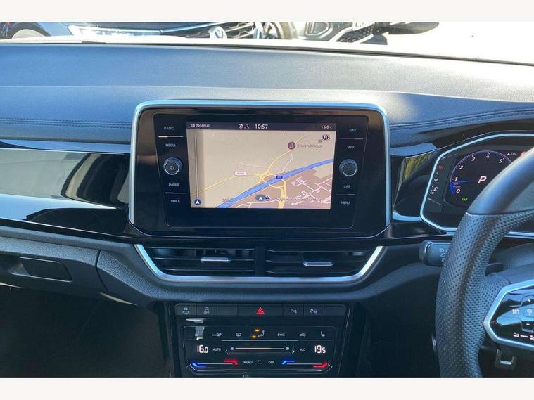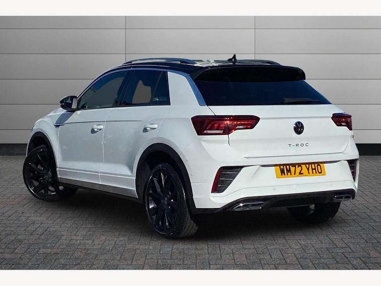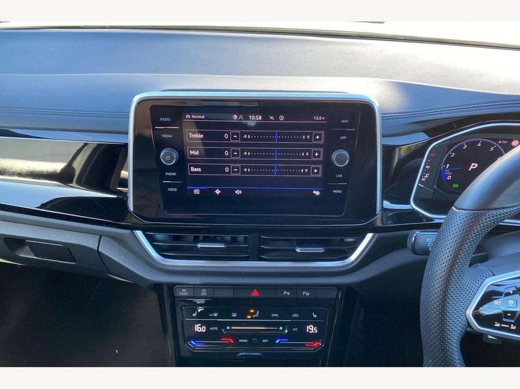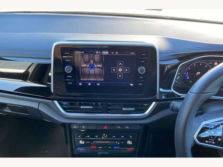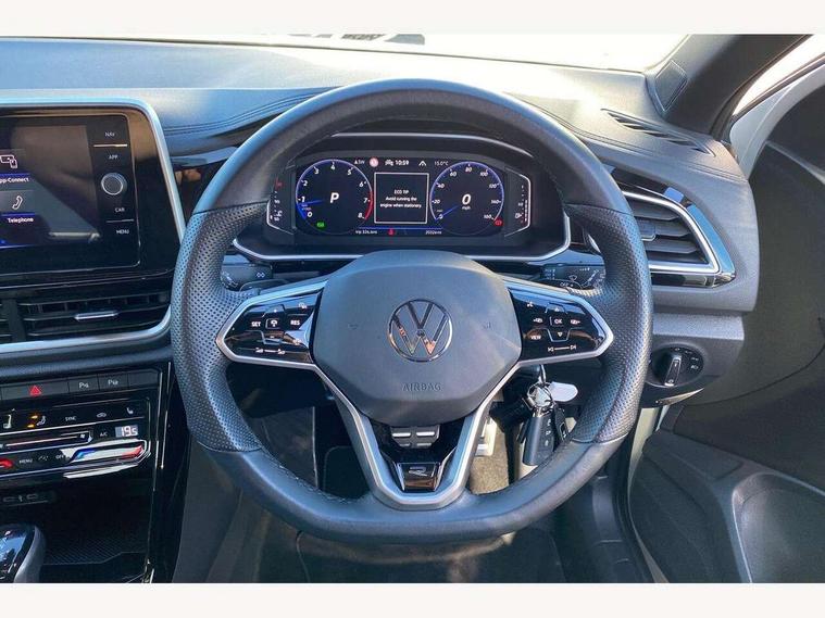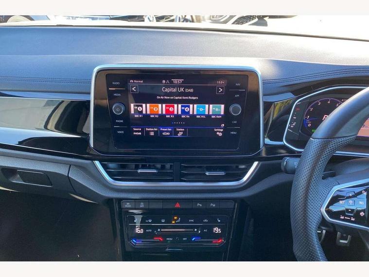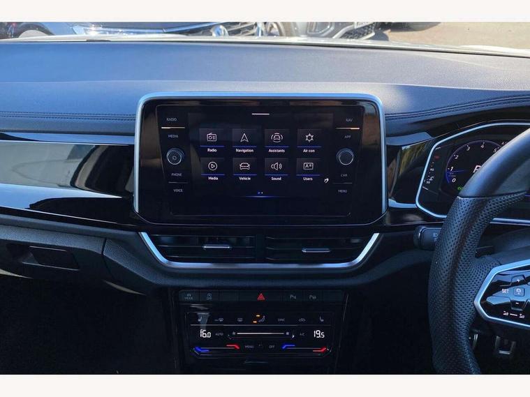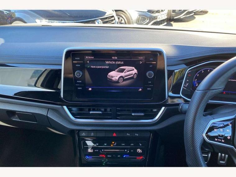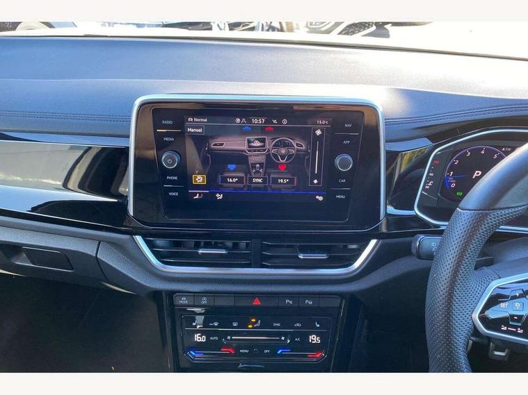 10.25" Digital cockpit pro, Bluetooth mobile phone interface, Driver alert system with fatigue detection, Driver tips and journey analysis, Emergency call service, Lane keeping system Lane Assist, Modified key software - reduce switch off time for key status change to Long no motion, Online services, Park assist including front and rear parking sensors, Service interval indicator, Tailgate/trunk lid release from outside, Think blue trainer driver tips and journey analysis, Warning sound and light for front seatbelts unfastened, Wireless app connect, Battery regeneration during braking, Start/stop function with battery regeneration, Diversity antenna for FM reception, Front and rear 6 speakers, Music playback - MP3, WMA and AAC files, Premium USB cable in choice of either Apple or Android smartphone compatibility, SD card slot, Simultaneous pairing of 2 compatible mobile devices, Title and cover art display, We Connect and We Connect Plus functionality, 3rd brake light, Auto dimming interior rear view mirror, Automatic hazard lights activation under emergency braking, Automatic headlight control with LED separate daytime running lights with coming/leaving home function, Extended roof spoiler, Exterior mirrors aspherical on driver side, convex on front passenger side, External USB type C socket and charging sockets, Front windscreen wiper with intermittent wipe and 4 position delay, Heated rear window, LED Plus headlamps, LED rear combination lamps, LED rear number plate lights, LED tail lamp rear comination lamps, Power windows with comfort operation and circuit breaker, R-Line design body coloured bumpers, Rain sensor, Rear exhaust tailpipe, Rear fog light on one side and reversing lights on both sides, Rear side wing doors, Rear wash/wipe with intermittent wipe setting, Remote electrically foldable door mirrors, puddle lights and reverse activated passenger's door mirror, 12V power socket in centre console, 3 rear head restraints, 3 seat bench in 2nd row, 4 load lashing points in luggage compartment, Air care climatronic air conditoning system with active combination filter and 2-zone temperature control, Black roof lining, Chrome plated radiator grille inserts, air vent surrounds and light switch surrounds, Door and side trim panel with leatherette insert, Drawer under drivers seat, Front + rear carpet mats, Front centre armrest, Front cupholders x 2, Front footwell illumination, Front reading light, Front scuff plates with R logo, Instrument lighting, white adjustable panel illumination, Interior ambient lighting and surround lighting, Interior light delay, Isofix child seat preparation, Leather gearshift handle, Load-through provision with cup holder when folded down ('Unsplit rear seat bench, split folding backrest, with centre armrest), Luggage compartment lighting, Single front passenger seat, Stainless steel pedals, Storage compartment in left and right luggage area, Storage compartment in rear doors, Storage compartments in driver and front passenger doors, Sunvisors with illuminated vanity mirrors, Variable boot floor, height adjustable and removable, Driver assistance pack without proactive passenger protection - T-Roc, 3 point height adj front seatbelts + pretensioners, 3 point seatbelts in outer rear with ECE label, ABS, Child locks on rear doors, Driver and front passenger airbag with front passenger airbag deactivation, Driver and front passenger safety-optimised head restraints, Drivers seatbelt reminder, Electronic parking brake, Electronic Stability Control (ESC) inc EDL (Electronic Differential Lock) and ASR (Traction Control), Front and rear passengers curtain airbag system including front side airbags, Front assist with city emergency braking and pedestrian monitoring, Front seat side impact airbags, Hill start assist, Predictive pedestrian protection, Rear disc brakes, Single tone horn, Tyre pressure loss indicator, Volkswagen roadside assistance, Alarm with interior protection, Anti-theft alarm system with interior monitoring, backup horn, and towing protection, Remote central locking with SAFELOCK, radio remote control with 2 remote control folding keys, Trims for alloy wheels,