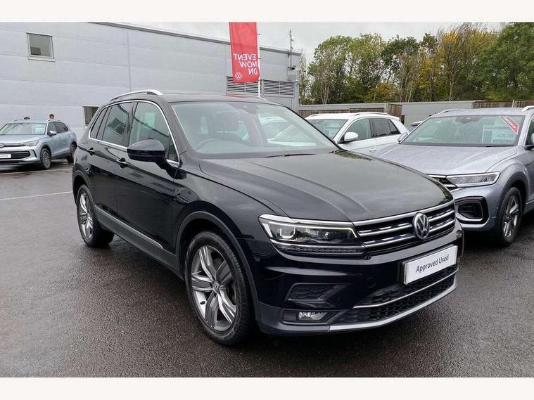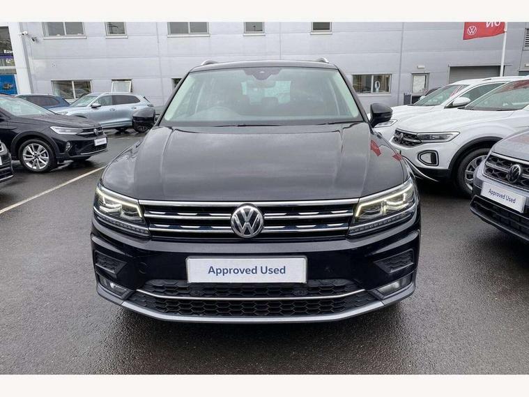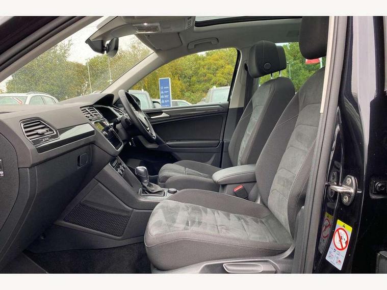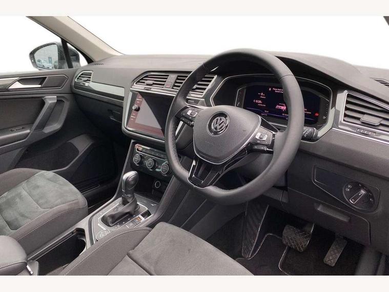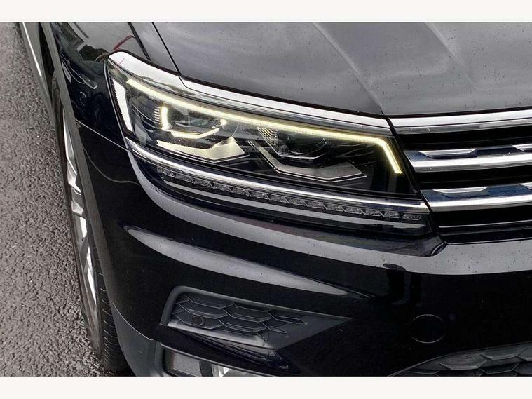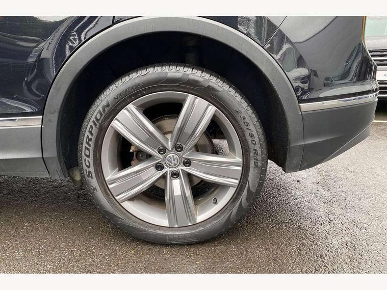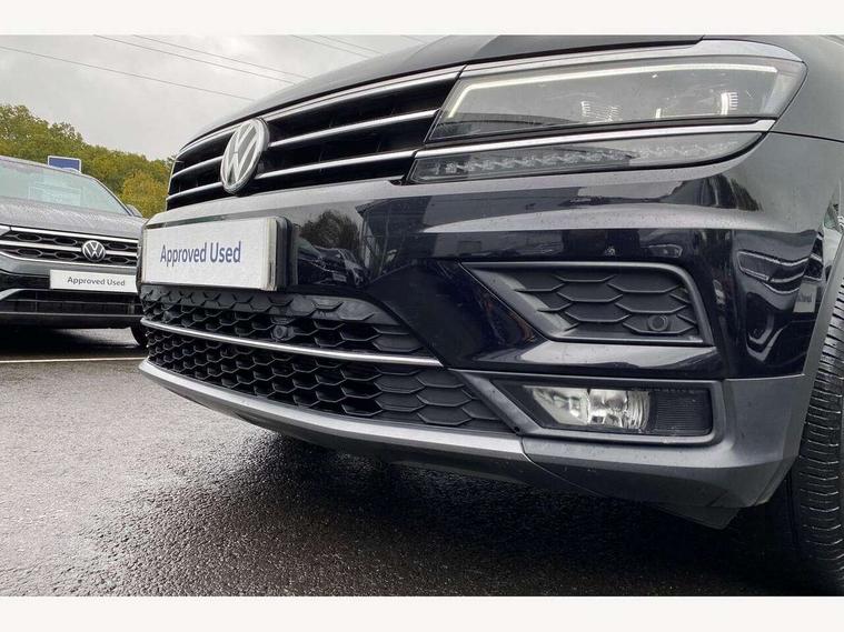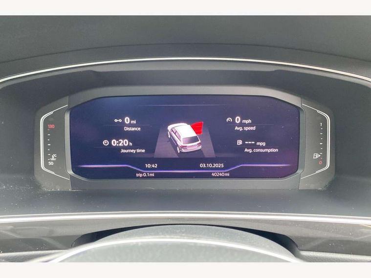 App-Connect, Active information display, Adaptive cruise control, Bluetooth phone integration system, Car-Net Security and Service, Coasting function, Distance control assist, Drive mode selector, Driver profile selection, Fatigue detection system, Front assist, radar sensor controlled distance monitor, city emergency braking + predictive pedestrian protection, Instrument cluster, Lane assist, Low washer fluid warning light, Multifunction colour display, Outside temperature display, Service interval indicator, Speed limiter, Start/Stop function, Warning lights, Misfuel prevention device for diesel engine, XDS electronic differential lock, 2x USB sockets in front, 4 X 20 watt output, DAB Digital radio, MP3 compatible single CD player, SD card slot, Simultaneous pairing of 2 compatible mobile devices, SMS functionality - read, compose and send SMS messages using touch-screen display, Title and cover art display, 3D effect cherry red LED rear tail lights, Auto dimming interior mirror, Automatic activation of hazard warning lights, Black door protector with chrome inserts, Body colour door handles, Body colour door mirrors, Body coloured bumpers, Chrome side body trim, Chrome side window surrounds, Chrome trimmed radiator grille, Coming/leaving home lighting function, Dusk sensor + auto driving lights, Elec heated + adjust door mirrors, Electric folding door mirrors, Electric panoramic sunroof with sunblind, Front air intake with chrome strip, Front and rear electric windows, Halogen clear headlights with integrated indicators and range adjustable, Heated rear window, High level 3rd brake light, LED headlights with dynamic light assist daytime running lights and cornering front fog lights, LED rear number plate lights, Rain sensor windscreen wipers, Rear windscreen washer and wiper with interval delay, Side door sills with chrome inserts, Side skirts and rear bumper with chrome insert, Silver rear diffuser trim, Silver roof rails, Silver under body guard, Tinted windows (B pillar backwards), Windscreen wipers/ intermittent wipe + 4 position delay, 12V Accessory socket in centre console, 3 rear headrests, 3 zone climate control, 4 load lashing points, 40:20:40 split folding rear seats, Bag hook in luggage compartment, Driver + front passenger lumbar support, Foldable passenger seatback, Front + rear carpet mats, Front centre armrest with 12v socket, Front centre armrest with storage + rear 2 air vents + cupholders, Front seat back storage pockets, Front seatback folding tables, Height/reach adjust steering wheel, Illuminated driver/passenger vanity mirrors, Illuminated scuff plates, Instrument lighting white adjustable panel illumination, Interior light with delay, Isofix Preparation 2 Rear child seats, Leather gear knob, Load through provision with 2 cupholders when folded, Lockable cooled glovebox, Luggage compartment lighting, Luggage compartment side storage, Map pockets on front seats, Passenger seat height adjuster, Passenger underseat drawer, Rear cupholders, Removable luggage cover, Sliding/reclining rear seats, Storage compartment in driver's door, Storage compartment in passenger's door, Storage compartment in rear doors, Storage tray on dashboard, Sunglasses storage, Variable boot floor, Ambient lighting pack - Tiguan, Winter pack - Tiguan/Tiguan Allspace, 3 rear 3 point seatbelts, ABS+EBD+Brake assist, Active bonnet, Active pedestrian safety system, Curtain airbags, Driver/Front Passenger airbags, Driver/Passenger whiplash optimised head restraints, Drivers knee airbag, DTC - Drag torque control, Electronic parking brake with auto hold, ESP with EDL + ASR, First aid kit, Front side airbags, Front ventilated disc brakes and rear disc brakes, Head airbag system, Height adjustable front 3 point seatbelts + pretensioners, Hill hold control, Passenger airbag deactivate switch, Passenger knee airbag, Proactive preventive occupant protection, Rear side airbags, Rigid safety cell with front and rear crumple zones, Seatbelt warning lamp and buzzer, Two tone horn, Warning triangle, Alarm with interior protection, Electronic engine immobiliser, Remote central locking with 2 remote folding keys, Chrome door trim inserts, Piano black interior trim, Steel space saver spare wheel,