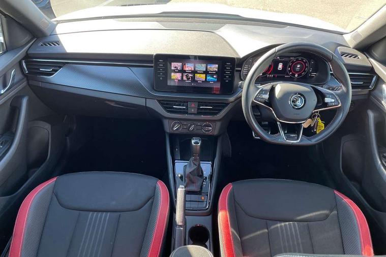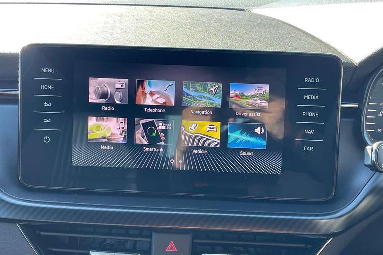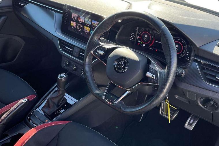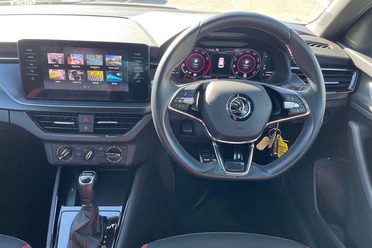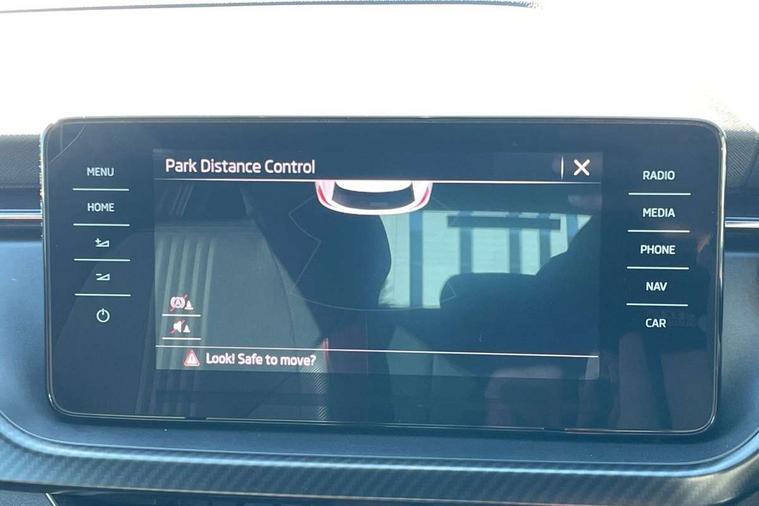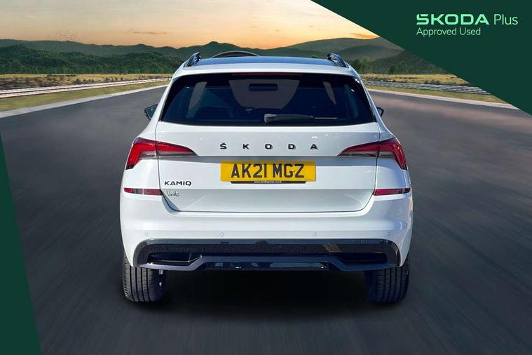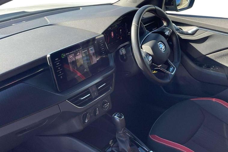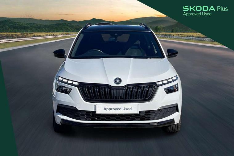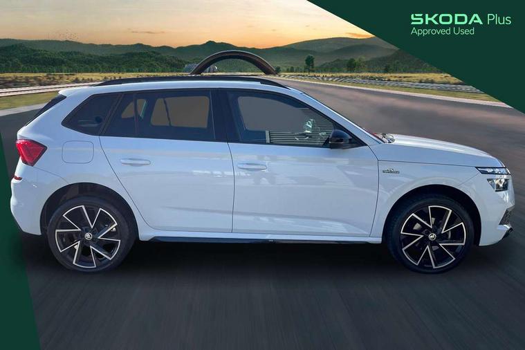 Chrome air vent surrounds, 18" Vega alloy wheels in black, Alarm with interior monitoring, back up horn and tilt sensor with safe function and towing protection, Anti-theft wheel bolts, Immobiliser, Remote central locking with SAFE system, 2 USB - C ports with 1x adaptor cable, Auxiliary input socket, DAB Digital radio, 3x3 point rear seatbelts, Airbags - driver and front passenger, ESP, Front passenger airbag deactivation switch, Front side airbags with curtain airbags, Hill hold control, Manual parking brake, One tone horn, Rear disc brakes, Seatbelt reminder for driver an co-driver, Traction control, Tyre pressure monitor, Auto dimming rear view mirror, Black door mirrors, Black radiator grille, Black rear diffuser, Body colour bumpers, Body colour roof spoiler, Boot lettering in black, Chrome grille surround, Electrically adjustable and heated door mirrors, Front and rear electric windows, Front sport bumper, Full LED headlights with adaptive front light system, dynamic indicators, cornering function and fog lights, Headlight range control, Heated rear window, High functionality rear led lights with dynamic indicators, KAMIQ Door sills, Monte carlo plaque, Panoramic sunroof with black roof rails, Privacy glass, Rear fog lights, Rear wiper, 12V Accessory socket in centre console, Aluminium pedals, Black ceiling for black/beige interior, Chrome inner door handles, Cloth upholstery, Front gesture control, Front head restraints, Glove compartment with illumination, Height adjustable passenger seat, Ice scraper, Isofix child seat fittings on outer rear seats, ISOFIX on front passenger seat, Leather gear lever, Manual lumbar support for front seats, Rake/reach adjustable steering wheel, Reading lights for driver and front passenger, Sports seats, Sun visor with make up mirror for front passenger, Textile floor mats, Third rear headrest, Top tether for front passenger seat, Umbrella in driver's door, Amundsen satellite navigation with 9.2" touchscreen display, voice control, virtual cockpit and web radio, Bluetooth system, E-call, Front assist system, Lane assist, PAS, Service indicator, Speed limiter, Trip computer, Virtual cockpit with 10.25"display, Wireless SmartLink for apple car play, android auto and mirrorlink,