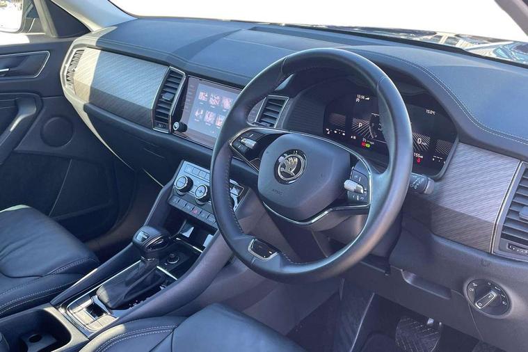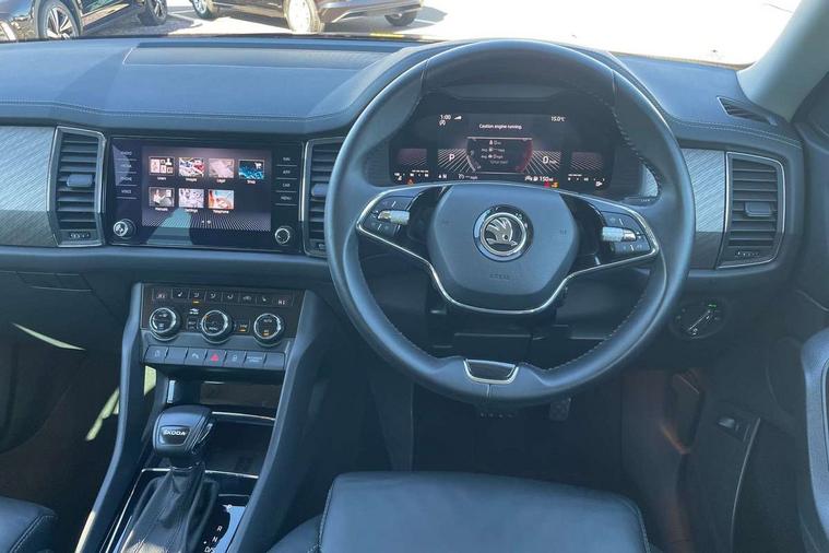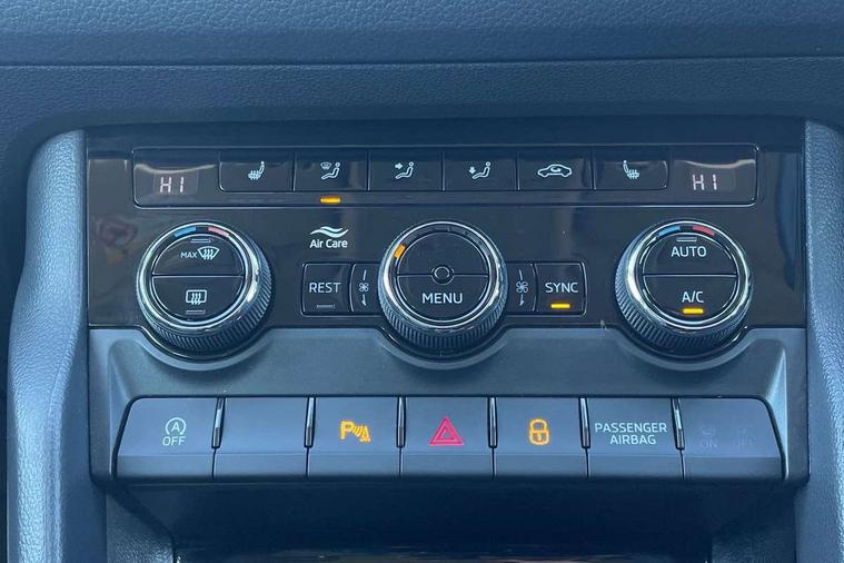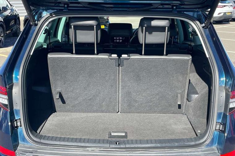 Bluetooth system, Digital voice enhancement, E-call, ECO Stop/start function, Exterior temperature indicator, Rear view camera, Smartlink wireless for apple carplay and wired for android auto, Speed limiter, Tailgate unlocking from outside, USB C Port x 2 in front centre console, Wireless charging, 8 Speakers, DAB Digital radio, Aero front windscreen wipers with intermittent function, Aero rear window wiper, Auto dimming rear view mirror, Black wheel arch surrounds, Body colour bumpers, Body colour door mirrors and handles, Chrome front grille, Chrome roof rails with chrome window surround, Daytime running lights, Electric adjustable/heated/folding door mirrors, driver side auto dimming with boarding sports and memory function, Electric front and rear windows, Extended rear spoiler with finlets in gloss black, Front fog lights, Full LED matrix headlights with AFS (adaptive front light system), cornering function and AWL (all weather lighting system), Headlight washers, Heated rear window, Invisible tailpipe, LED rear fog light, LED third brake light in rear spoiler, Light assistant (coming/leaving home/tunnel light), Off-road style lower front bumper element, Privacy glass, Rain and light sensors, Rear LED lights (high functionality) with welcome effect and dynamic indicators, Rear side wing doors, Safety reflectors on front and rear doors, Window control switches with black trim, 12V socket in boot, 2 rails with 2 hooks, 2 seat bench in 3rd row, 3 seat bench in 2nd row, 4 foldable roof handles with rear coat hooks, 60:40 foldable rear seat with sliding adjustment and backrest angle adjustment, Bottle holders in door panel in the 1.5 litre front and 1 litre rear, Cargo storage compartments, Chrome headlight control button, Chrome interior door handles, Coat hooks on B pillar, Covered storage compartment on driver side, Front centre armrest with storage compartment, cup holder and 12V socket, Front courtesy lights, Gear shift lever with chrome frame and black gloss insert, Grey stitching in front and rear armrests and door armrests + door inserts, Height adjustable front headrests, Illuminated and cooled glovebox, Illuminated luggage compartment, Isofix child seat fittings in outer rear seats with top tether, Manually adjustable steering column, Net programme in boot (1x horizontal Net, 2x vertical Nets), Overhead glasses storage compartment, Pollen filter, Rear centre armrest with cupholders, Single front passenger seat, Sliding trunk cover, Small Bags on the inner sides of the front backrests, Sunvisors with illuminated vanity mirrors, Three rear height adjustable headrests, Ticket holder on A Pillar, Umbrella in door panel, Variable boot floor, Auto door release and activation of warning lights in the event of an accident, Child locks on rear doors, Driver and front passenger airbag with knee airbag and front passenger airbag deactivation, Electronic parking brake with hill start assist, Emergency rear braking signal, ESC (incl. ABS+MSR+ASR+EDS+HBA+DSR+RBS+MKB), Front assist with autonomous emergency braking, Front side airbags with curtain airbags, Fuel cut off safety device, Height adjustable front 3 point seatbelts + pretensioners, Hill hold control, Rear disc brakes, Safety vest holder in door, Seat belt reminder for all seats, Three point rear seat belts, Two tone horn, Tyre pressure monitor, Alarm with interior monitoring and tilt sensor with safe function, Anti-theft wheel bolts, Immobiliser, Keyless entry and start system (KESSY), Remote central locking with 2 keys, Grey stitching in dashboard, Linear diamonds decorative inserts, Temporary spare wheel (space saver),