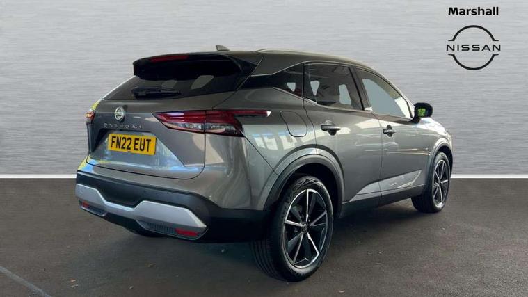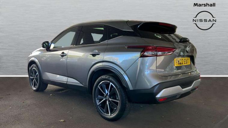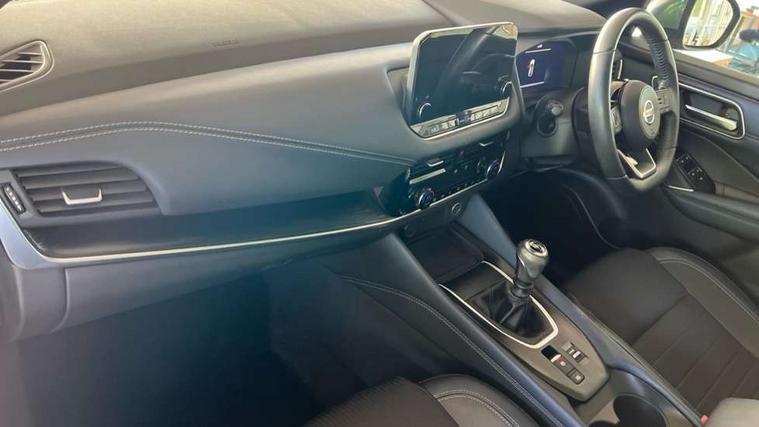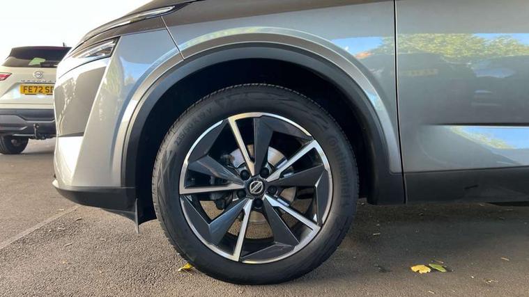 Blind spot warning, Drive modes (sport, normal, eco), Electric speed sensitive power steering, Emergency and breakdown call, Front and rear parking sensors, Full Digital 12.3" TFT Digital Combimeter, Google maps services - search, weather, 3D maps and Google street view, Hands free power tailgate, Idle stop/start system, Intelligent around view monitor, Intelligent Cruise control (ICC), Intelligent driver alert system, Intelligent forward collision warning, Intelligent lane intervention, Lane departure prevention, Lane departure warning system, Moving object detection, Nissan connect 9" touchscreen infotainment system, Nissan connect navigation, Push button starter, Rear cross traffic alert, Remote control services - door locks, lights, horn and car locator, Telematics - notifications and connectivity services, TomTom live traffic services, Traffic sign recognition with legal speed adjustment, Trip computer, Virtual personal assistant and firmware over the air capability, Wireless Apple CarPlay and wired Android Auto, Wireless charging pad, 6 speakers, AM/FM audio system with DAB, Bluetooth audio streaming, Front USB connections (Type-A and Type-C), Rear USB charging only ports (Type-A and Type-C), Auto dimming rear view mirror, Auto rear wiper when reversing, Body colour mirror caps, Body coloured door handles, Bodyside mouldings, Chrome side window finisher, Door handle with button, Dusk sensor, Electric auto folding door mirrors, Electrically adjustable and heated door mirrors with LED turn indicator, Fixed panoramic glass roof with electric sunshade, Follow me home headlights, Front and rear LED turning signals, Intelligent auto headlights, LED daytime running lights, LED rear lights, One touch front and rear electric windows with remote opening and closing, Partially body coloured bumpers, Privacy glass, Rear roof spoiler, Rear side wing doors, Rear styling plate, Roof rails, Shark fin antenna, Splash free rain sensing wipers, Super UV and infrared cut glass, Three blink turn signal, 12v power socket in dashboard and luggage, 2 way electrical driver lumbar adjustment, 2x Rear coat hooks, 3 bench rear seats in 2nd row, 3 rear headrests, 4 folding assist grip, 6 Luggage hooks - 4 on floor, 2 on side, 60/40 split folding rear seat bench, 8 way electric adjustable drivers seat, Ambient lighting around centre console, Ambient lighting in front doors, Centre console storage tray, Chrome interior door handles, Cloth/syntech leather monoform upholstery, Dark headlining, Driver and front passenger sunvisors with illuminated vanity mirrors, Driver seat back pocket, Dual zone automatic climate control with pollen filter, Front and rear door storage, Front cupholders x 2, Front door with bottle holders, Glovebox with light, Hard trunk cover, Height adjustable front headrests, Leather shift knob, Leather steering wheel, Luggage board system, Luggage space lighting, Manual lumbar support on passenger seat, Manually adjustable passenger (slide recline + lifter), Multifunction steering wheel, Passenger seat back pocket, PVC front centre console and armrest, Rear armrest with 2 cupholders, Rear door bottle holders, Single front passenger seat, Soft PVC kneepad, Steering wheel switches, Tilt/telescopic adjustable steering wheel, Two rear isofix child seat anchorage points with top tether, Welcome light and doors with console tray ambient lighting, Drive assist pack - Qashqai, Heat pack - Qashqai, Tech Pack (Drive Assist + HUD), 3x3 point rear seatbelt pretensioners + load limiters, ABS, ESP, EBD and brake assist, Active brake limited slip, Auto hold function, Child locks on rear doors, Curtain and front side, far side airbags, Driver and passenger airbags, Driver, passenger and 2nd row rear seat belt reminder, Electronic parking brake, Front seatbelt pretensioners + load limiters, Height adjustable front seatbelts, Hill start assist, Intelligent blind spot intervention, Intelligent front emergency braking with pedestrian, cyclist recognition and junction assist, Intelligent rear automatic braking, Tyre pressure monitoring system, Vehicle dynamic control, Capless fuel filler, Engine immobiliser, Nissan i-key, Rear bumper with silver insert, Remote central door locking with deadlocking, Thatcham Cat.1 alarm, 19" Alloy wheels,
