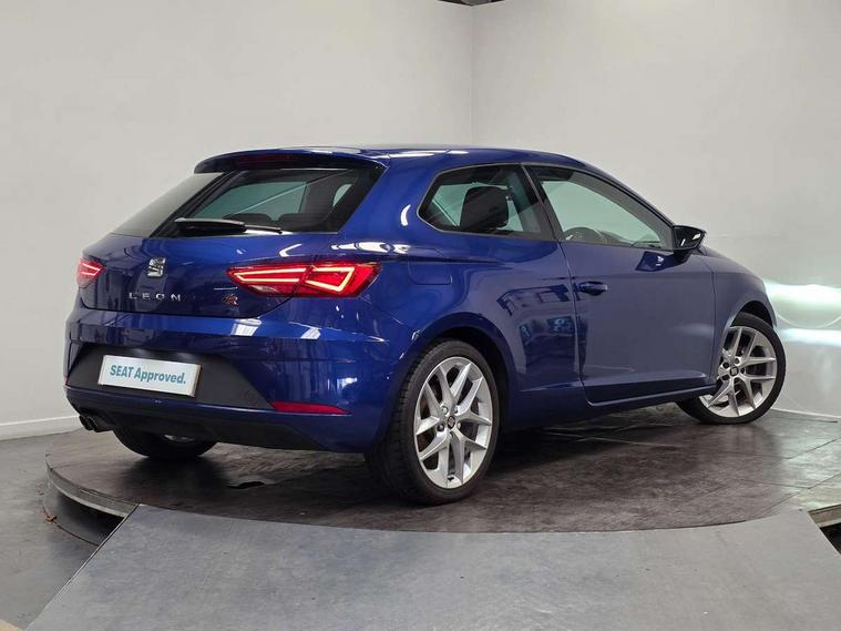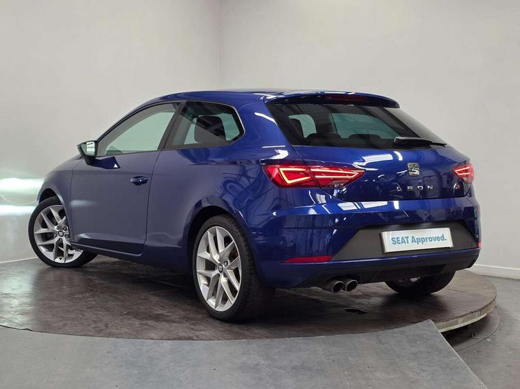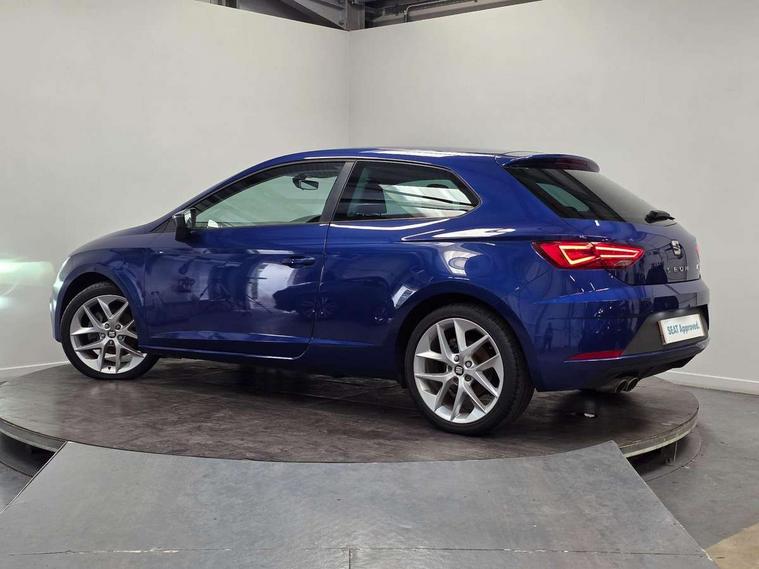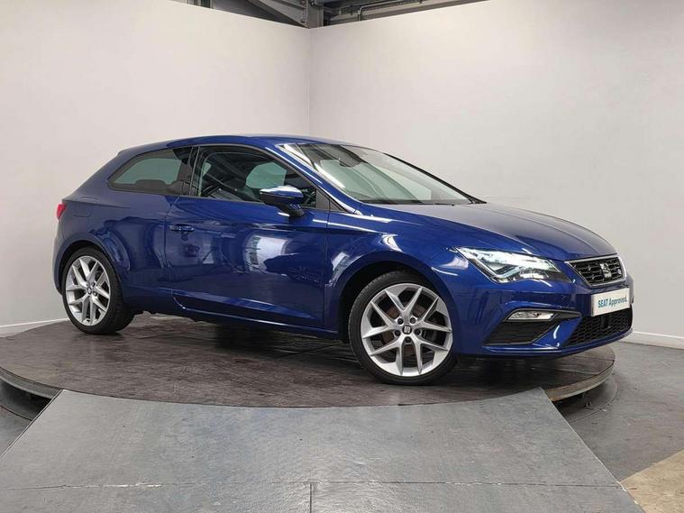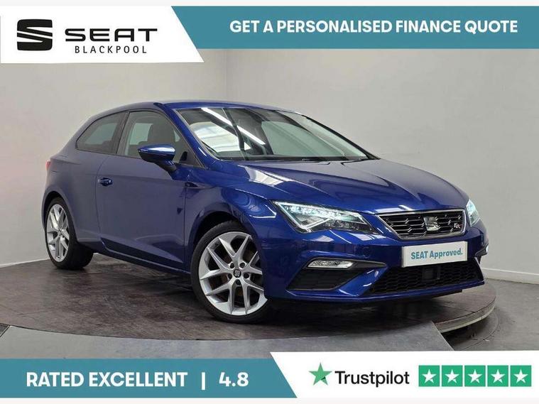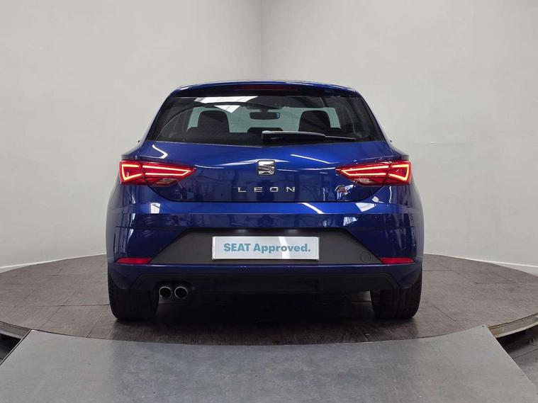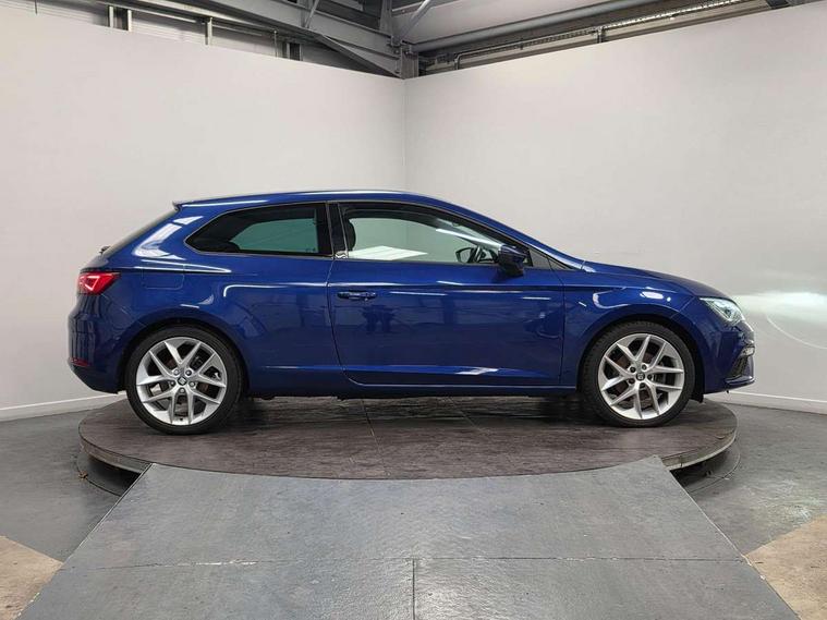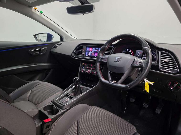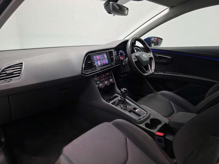 'Lights On' Reminder warning buzzer, 8" touch screen, Bluetooth Handsfree Phone Connection, Low fuel warning light, Outside temperature gauge, Rear parking sensors, Remote fuel flap release, SEAT Drive profile, SEAT logo boot release, Service interval indicator, Trip computer, Voice control system, XDS electronic differential lock, 2 USB ports, 2 USB sockets in rear, 2x SD card slot, Auxiliary input socket, Bluetooth audio streaming, DAB Digital radio, Radio/CD + MP3, Steering wheel mounted audio/phone controls, Aluminium front door sills, Black grille with chrome surround, Body colour door handles, Body coloured bumpers, Body coloured door mirrors, Dark tinted rear windows, Electric adjustable/heated/folding door mirrors, Electric front windows + one touch + anti-pinch, Electric headlamp adjustment, High gloss black finish B and C pillars, LED daytime running lights, LED front fog lights, LED Headlights, LED indicators in door mirrors, LED number plate light, LED tail lights, Rear wash/wipe, Reverse activated kerb-view adjustment on passenger's door mirror, Twin exhaust pipes, 12v power point in centre console, 3 height adjustable rear headrests, 60/40 split folding rear seat, Active head restraints, Additional heating and ventilation outlet in rear of centre console, Boot net, Cloth upholstery, Driver seat height adjust, Driver seat lumbar adjustment, Driver/passenger sunvisors with illuminated vanity mirrors, Dual zone climate control, Dust/pollen filter, Front adjustable head restraints, Front armrest with storage box, Front cupholders x 2, Front seat and rear pockets, Front seats - 'Easy Entry', Front sports seats, Front/rear floor mats, Height/reach adjust steering wheel, Illuminated boot, Illuminated glovebox, Instrument lighting with brightness control, Leather handbrake, Luggage tie-down hooks, Passenger seat height adjuster, Passenger seat lumbar adjust, Perforated leather steering wheel with red stitching + gear knob, Rear top tether child seat ISOFIX attachment, Storage box under drivers seat, 3 point seatbelts on all rear seats, ABS + traction control, Active pedestrian safety system, Collision mitigation braking system, Curtain airbags, Driver/Front Passenger airbags, Drivers knee airbag, Electronic parking brake with auto hold, ESP+EBA, Front seatbelt pretensioners, Front Seatbelt warning, Front side airbags, Hill hold control, Passenger airbag deactivation system, Tyre pressure monitoring system, 2 folding remote keys with window open/close function, Engine immobiliser, Locking wheel bolts, Remote central locking + deadlocks, Volumetric alarm with back up horn, Chrome interior trim,