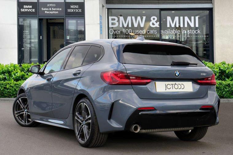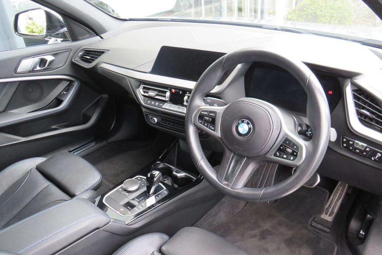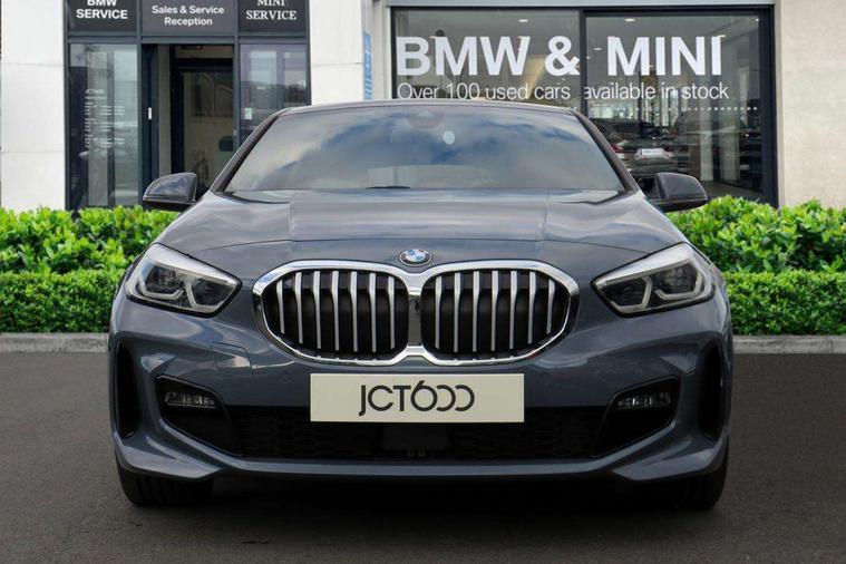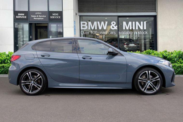 Active guard plus, Attentiveness assist, BMW ConnectedDrive online services, BMW Teleservices, Check Control warning system for monitoring of lights and door/luggage compartment open warning, Cruise control with brake assist, Eco pro mode, Front axle single joint with specific axle kinematics to minimise drive influences on steering + provide increased rigidity agile driving behaviour, Integrated owners handbook, Lane departure warning system, Oil sensor for level and grade, On board computer, Optimum shift indicator, Personal Profile, Pull away assistant, Rigidly mounted rear subframe - Multi link construction with separate spring / damper configuration and excellent driving characteristics, Speed limit Info including no-overtaking indicator, Speed limiter, Aluminium lightweight construction, Anti roll bar front and rear, Balancer shaft, Double VANOS twin scroll turbocharging system, Drive Performance Control, Electronic differential lock, High precision injection, M sport suspension, Petrol Particulate Filter, Twin tube gas filled shock absorbers with degressive characteristic curve, VALVETRONIC engine management, DAB Digital radio, Auto dimming rear view mirror, Automatic headlight beam throw control, Automatic windscreen wipers and automatic headlight, Body colour door handles, Body colour mirror caps, Body colour roof trims, Chrome 'M' logo side designation, Chrome exhaust twin tailpipes round 90mm in left, Chrome kidney grille frame with Satin Aluminium struts, Direction indicator side lights in exterior mirrors, Fading support, Folding side mirrors with auto dimming/folding wing mirrors with auto dimming, Follow me home headlights, Front and rear bumper system with replaceable deformation elements, Front and rear electric windows with open and close fingertip control, anti trap facility and comfort closing, Front door sill finishers in black plastic with M designation in metallic look, Green tinted heat protection glazing, Heated, electrically adjustable exterior mirror aspheric on driver side, convex on passenger side, High gloss shadowline window frame, Recess cover mirror frames and B/C pillar embelisher trim, High level third brake light, Integrated front windscreen with washer jets, LED daytime running lights, LED eyebrow turn indicators, LED front fog lights, LED Headlights, Lightweight engineering, Matt black air guide grilles, Matt black wheel arch trim, Model designation on electric bootlid, Nearside reverse light in rear light cluster, Preparation for high beam assistant, Rear fog lights, Rear side wing doors, Rear window wiper, Shark fin antenna, Trailer stabilisation logic, Visible VIN plate, Welcome lighting, 12V power socket in front centre console with blanking plug, 3 rear seat head restraints, 3 seat bench in 2nd row, 3 spoke sports leather steering wheel with black leather and stitching, pearl chrome decorative finish, specific M Badge, Anthracite headlining, Black boot net with lashing eyes, Cargo function on 2nd seat row, Child seat ISOFIX attachment for two outer rear seats and front passenger seat with anchorage points, Conditioned based service, Driver and front passenger seat heating, Folding rear clothes hook, Four grab handles integrated in roof lining, Front and rear door pockets with bottle holders, Front and rear side armrest integrated into door trim, Front armrest, Front sports seats, Glove compartment, Height adjustable front head restraints, Luggage compartment for bag hooks on left and right, foldable luggage compartment liner and four lashing eyelets, Manual adjust steering wheel, Multi-function controls for steering wheel, Single front passenger seat, Storage compartment in centre console, Sun visors with vanity mirrors and insert tab, Two front centre console cupholders, Two zone automatic air conditioning, Velour floor mats, Additional interior lighting pack - 1 Series, BMW live cockpit professional pack- 1 Series, Connected pack professional - 1 Series, Interior lights pack - 1 Series, M Sport exterior styling aerodynamics pack - 1 Series, 2 tone horn, 3 point seatbelts on all seats, front pyrotechnic belt tensioners, stopper and belt force limiters, rear coded belt buckles, Airbags - Front driver/passenger, front and rear curtain head protection, front side, manual deactivation of front passenger airbag, Anti lock braking system (ABS) with brake assist, BMW emergency call, Brake drying, Braking readiness, Child proof locking system in rear door, City braking function, Comfort modes, Cornering brake control, Crash sensor activating central locking release, hazard warning lights, fuel cut off, interior lighting + activation of safety battery terminal clamp, Driver and front passenger seat belt security check, Dynamic stability control + (DSC+), Dynamic Traction Control - DTC, Electrically operated hand brake including automatic hold function, Front and rear disc brakes, Seatbelt warning, Side impact protection, Tyre pressure monitoring system, Warning triangle and first aid kit, Central locking switch for all doors, fuel filler cap and luggage compartment, Deadlocking function system to all doors, Drive away locking system on all doors and luggage compartment with de-activated in iDrive settings, Locking wheel bolts, Remote control with integrated key with High-gloss Black inlay and M designation and 1 button for open/ close lock, window, open luggage compartment, Start/stop button illuminated in centre console with keyless engine start and auto start stop deactivation button, Thatcham Cat.1 alarm and immobiliser, Wheel slip limitation close to the actuator (ARB), Contrast stitching on instrument panel, Electrically powered 12V compressor, Reduced rolling resistance tyres,