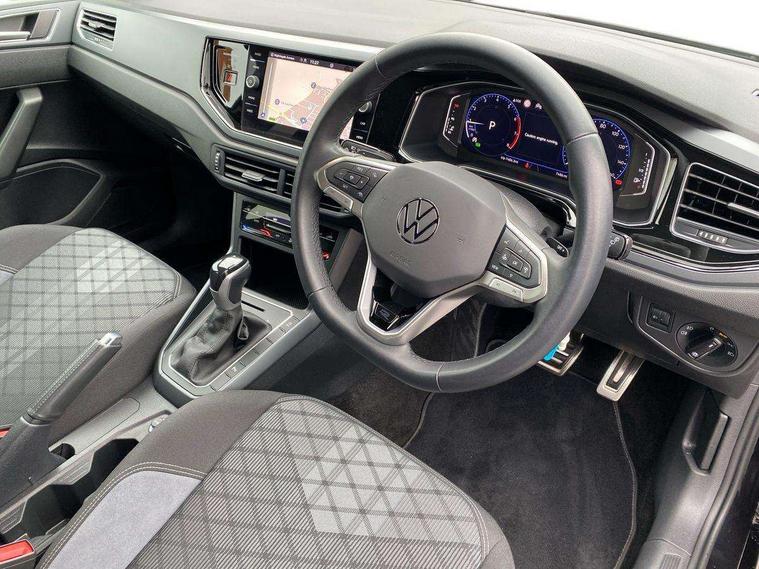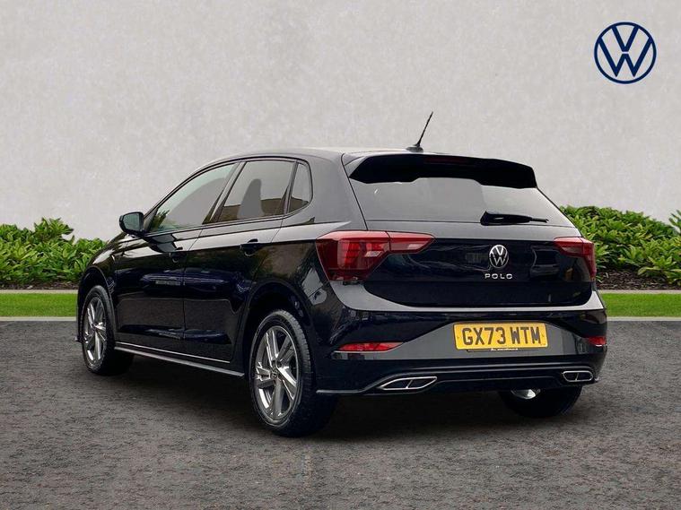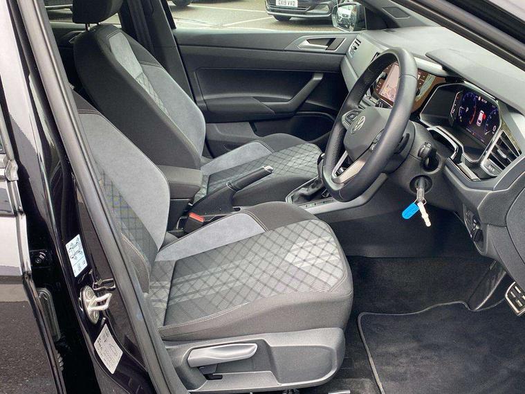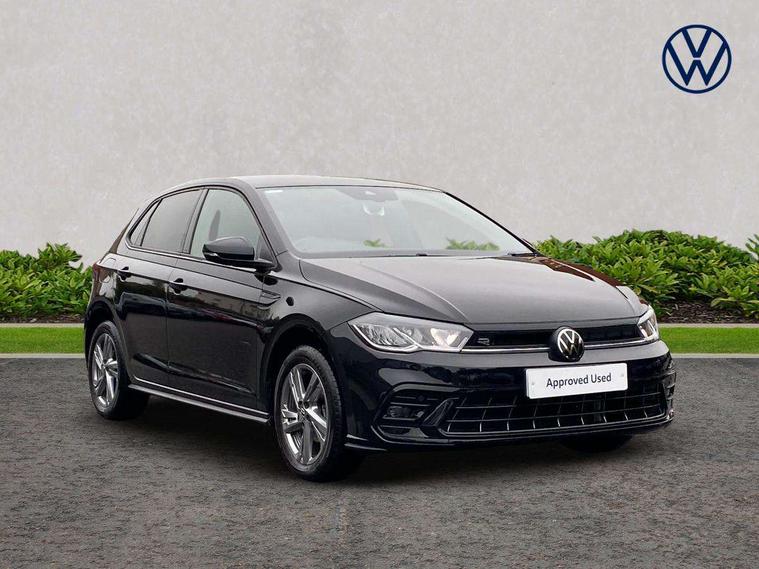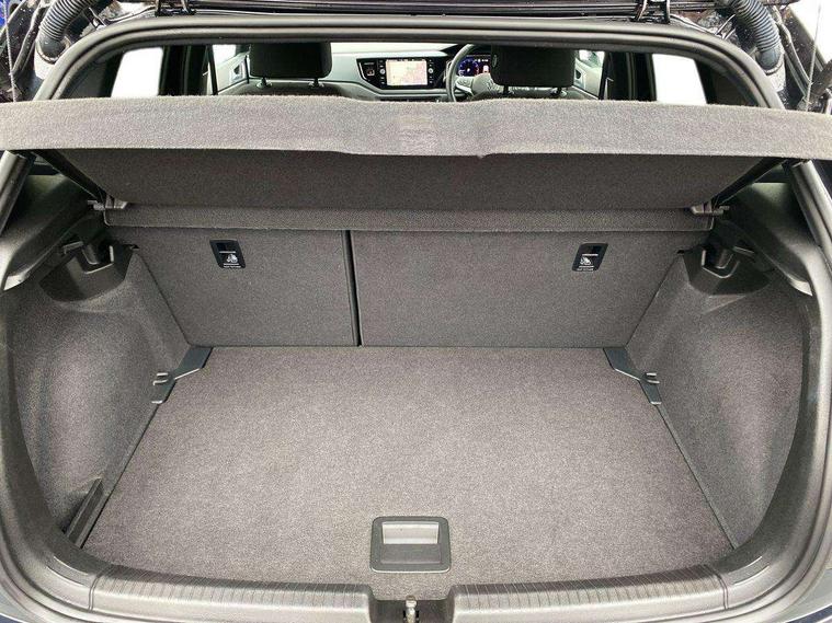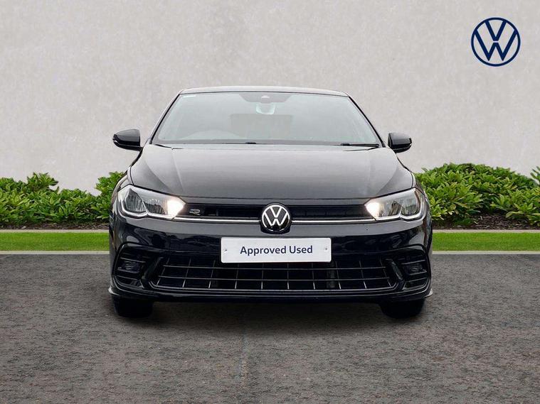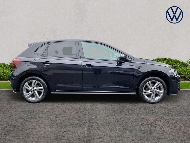 Adaptive cruise control with follow-to-stop and speed limiter, Bluetooth mobile phone interface, Digital Cockpit Pro with 10.25" Display, Driver alert system, Dynamic road sign display, Emergency call service, Power assisted speed sensitive steering, Preparation for We connect and We connect plus, Speedo and rev counter, electronic odometer, trip, service interval display and fuel gauge, Standard rear axle, Travel Assist - Lane keeping system and traffic jam assist, Travel assist including emergency assist, Trip computer, Warning signal and warning light for front and rear seatbelts not fastened, Washer fluid level indicator, Wireless app connect, Front wheel drive, Rear shock absorpion, Start-stop system with battery regeneration (recuperation - energy recovery during braking), DAB Digital radio, Diversity antenna for FM reception, Front and rear 6 speakers, Body colour bumpers, Body colour door handles, Body colour door mirrors, Electric front windows, Front scuff plates with R-Line logo, Heat insulating darkened glass in side and rear windows, Heat insulating glass windscreen, Power folding adjustable/heated exterior mirrors and front passenger exterior mirror lowering function, Rear electric windows, Rear fog light, Rear side wing doors, Rear tinted glass from B-pillar backwards approx 65% tinted, Rear windscreen washer and wiper with interval delay, Third brake light, 12V power socket in centre console, 2 USB-C ports in the front, 2 USB-C charging sockets on the center console in the rear, 3 rear head restraints, 60/40 split folding rear seat and rear seat bench not split, Air care climatronic air conditoning system with active combination filter and 2-zone temperature control, Black roof lining, Chrome plated radiator grille inserts, air vent surrounds and light switch surrounds, Door and side trim panel, Driver and front passenger seat height adjustment, Driver/passenger sunvisors with illuminated vanity mirrors, Front + rear carpet mats in recycled material, Front centre armrest, Front footwell illumination, Front seat backrest storage pockets, Front sports comfort seats, Handbrake lever handle in leather, Headliner in recycled material, Isofix child seat preparation easy-fit (for two outer rear seats, and front passenger seat) compatible with I-size, Karoso artvelours cloth upholstery, Leather trimmed gear knob, LED interior light with switch off delay and dimmer, 2 reading lights front and rear, Luggage compartment cover, Luggage compartment floor, Luggage compartment lighting, Lumbar adjustment for front seats, Single front passenger seat, Stainless steel pedals, Standard pedal cluster, Three spoke leather wrapped multifunction steering wheel with shifting paddles, Light and sight pack - Polo R-Line/Black Edition, 3 point height adj front seatbelts + pretensioners, 3x3 point rear seatbelts, ABS, Driver and front passenger airbag with front passenger airbag deactivation, Drivers and front passengers safety optimised head restraints, ESC (Electronic stability control) + EDL (Electronic Differntial lock) and ASR (Traction control), Extended and predictive pedestrian/ cyclist protection, Front curtain and side airbags with center airbag, Hill hold control, Manual child lock in rear doors, Single tone horn, Tyre pressure loss indicator, Alarm with interior protection, Anti-theft alarm system with interior monitoring, backup horn, and towing protection, Anti-theft wheel bolts, Electronic engine immobiliser, Chrome applications on rotary light, mirror adjustment, window regulator switches, outlet with frame in black, Dark grey anodised matt decorative inserts in dash and front door panels, Low rolling resistance tyres,