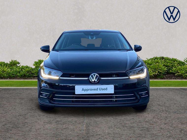 Adaptive cruise control without follow-to-stop and speed limiter, Bluetooth mobile phone interface, Digital Cockpit Pro with 10.25" Display, Driver alert system, Dynamic road sign display, Emergency call service, Power assisted speed sensitive steering, Preparation for We connect and We connect plus, Speedo and rev counter, electronic odometer, trip, service interval display and fuel gauge, Standard rear axle, Travel Assist - Lane keeping system and traffic jam assist, Travel assist including emergency assist, Trip computer, Warning signal and warning light for front and rear seatbelts not fastened, Washer fluid level indicator, Wireless app connect, Front wheel drive, Rear shock absorpion, Start-stop system with battery regeneration (recuperation - energy recovery during braking), DAB Digital radio, Diversity antenna for FM reception, Front and rear 6 speakers, Automatic dimming interior rear view mirror, Automatic headlights, Body colour door handles, Body coloured bumpers and radiator grille with chrome trims, Electric front windows, Heat insulating darkened glass in side and rear windows, Heat insulating glass windscreen, LED separate daytime running lights with coming/leaving home function, Power folding adjustable/heated exterior mirrors and front passenger exterior mirror lowering function, Rain sensor, Rear electric windows, Rear fog light, Rear side wing doors, Rear windscreen washer and wiper with interval delay, Third brake light, 12V power socket in centre console, 2 USB-C ports in the front, 2 USB-C charging sockets on the center console in the rear, 3 rear head restraints, 60/40 split folding rear seat and rear seat bench not split, Air care climatronic air conditoning system with active combination filter and 2-zone temperature control, Ambient lighting, Chrome plated radiator grille inserts, air vent surrounds and light switch surrounds, Door and side trim panel, Driver and front passenger seat height adjustment, Driver/passenger sunvisors with illuminated vanity mirrors, Front + rear carpet mats in recycled material, Front centre armrest, Front footwell illumination, Front seat backrest storage pockets, Front sports comfort seats, Handbrake lever handle in leather, Headliner in recycled material, Isofix child seat preparation easy-fit (for two outer rear seats, and front passenger seat) compatible with I-size, Leather trimmed gear knob, LED interior light with switch off delay and dimmer, 2 reading lights front and rear, Luggage compartment cover, Luggage compartment floor, Luggage compartment lighting, Lumbar adjustment for front seats, Multifunction steering wheel, Single front passenger seat, Standard pedal cluster, IQ LED matrix headlights pack - Polo, Light and vision pack - Polo, 3 point height adj front seatbelts + pretensioners, 3x3 point rear seatbelts, ABS, Driver and front passenger airbag with front passenger airbag deactivation, Drivers and front passengers safety optimised head restraints, ESC (Electronic stability control) + EDL (Electronic Differntial lock) and ASR (Traction control), Extended and predictive pedestrian/ cyclist protection, Front curtain and side airbags with center airbag, Front disc brakes, Hill hold control, Manual child lock in rear doors, Rear drum brakes, Single tone horn, Tyre pressure loss indicator, Alarm with interior protection, Anti-theft alarm system with interior monitoring, backup horn, and towing protection, Anti-theft wheel bolts, Electronic engine immobiliser, Chrome applications on rotary light, mirror adjustment, window regulator switches, outlet with frame in black, Low rolling resistance tyres,