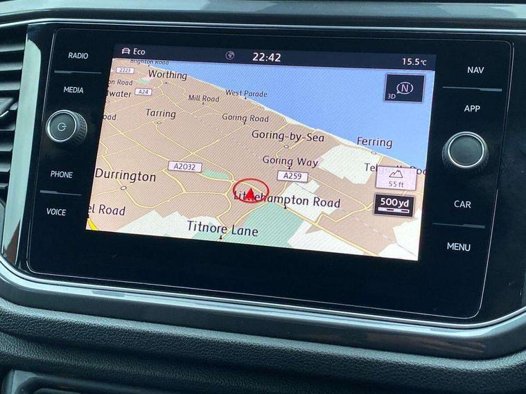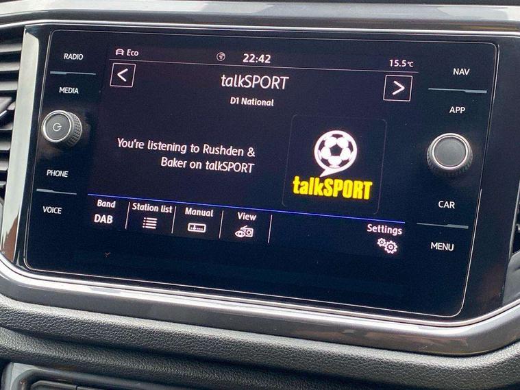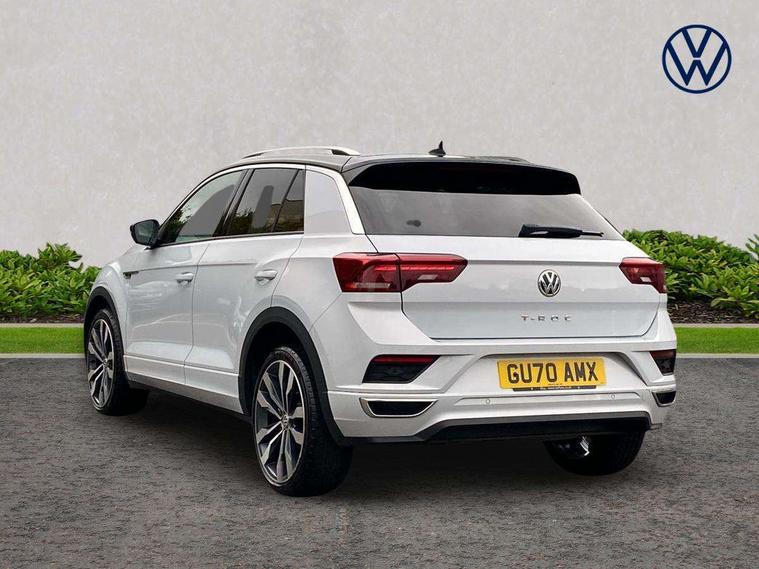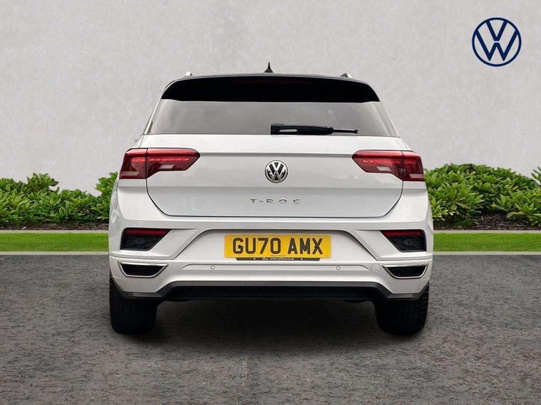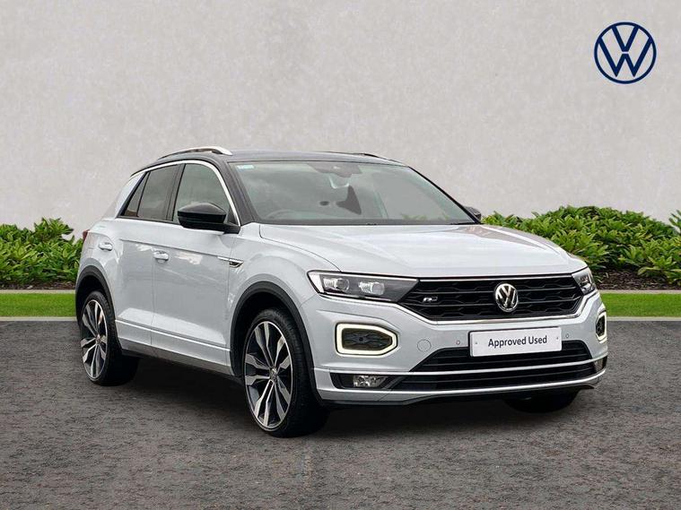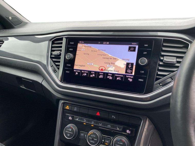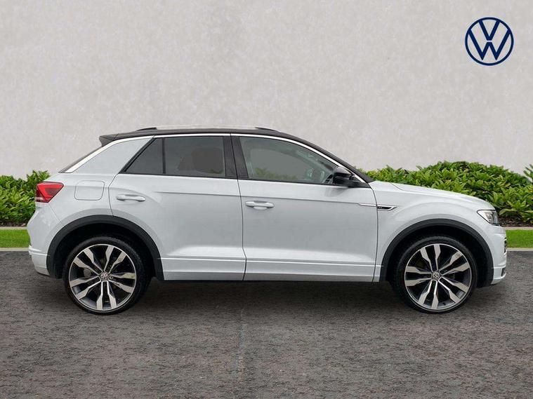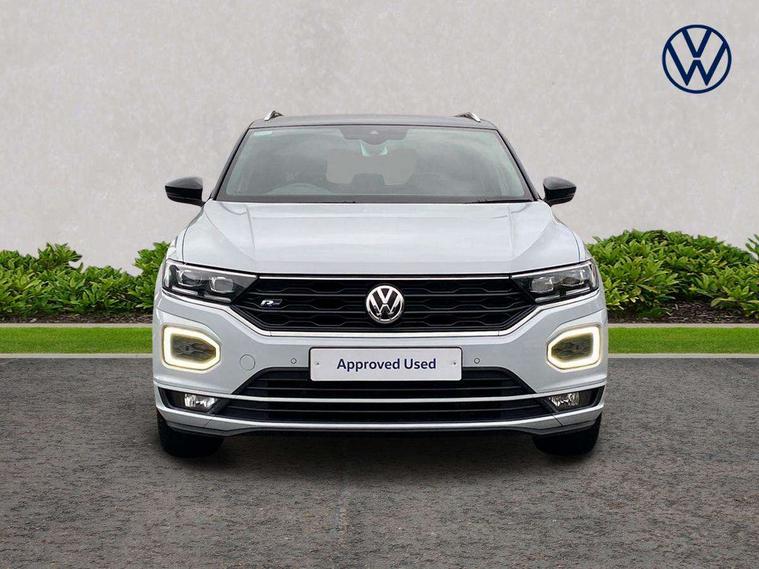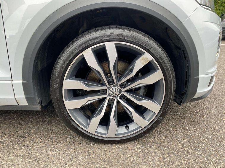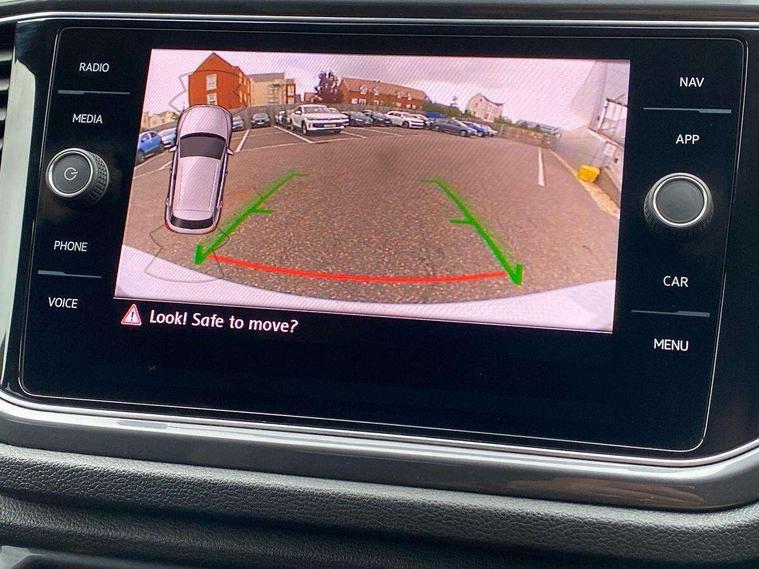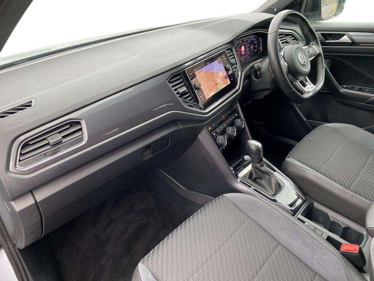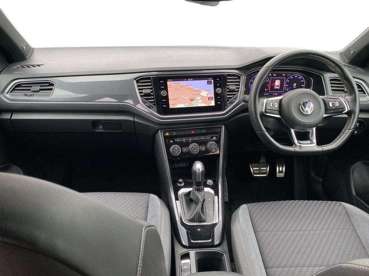 'Lights On' Reminder warning buzzer, Adaptive cruise control with front assist, radar sensor controlled distance monitoring, city emergency braking, Automatic start/stop system, Bluetooth telephone and audio connection for compatible devices, Car information display, Digital Cockpit Pro - Active info display, Discover navigation including 8" touch screen display, streaming and internet, Driver alert system with audible and visual fatigue detection system, Driver tips and journey analysis, Lane assist with warning text instrument cluster, Modified key software - reduce switch off time for key status change to Long no motion, Multifunction computer with visual gear change recommendation for fuel consumption, Service interval indicator, Think blue trainer driver tips and journey analysis, Voice activation, Wireless app connect for apple carPlay, Battery regeneration during braking, Centre arm rest including USB type C interface and USB charging socket, DAB Digital radio, Diversity antenna for FM reception, Front USB type C Interface 2X and USB charging socket, Music playback - MP3, WMA and AAC files, Premium USB cable in choice of either Apple or Android smartphone compatibility, SD card slot, Simultaneous pairing of 2 compatible mobile devices, SMS functionality - read, compose and send SMS messages using touch-screen display, Storage compartment with longitudinal and height adjustable in armrest and two rear air vents, Three route options - Fast, Short, Eco, Title and cover art display, Auto dimming interior rear view mirror, Black grained lower door protectors, Body colour door handles, Body colour rear roof spoiler, Chrome effect left and right trapezoid exhaust tailpipe fascia surround, Chrome trim on upper and lower radiator grille, Dusk sensor, Electrically foldable, adjustable and heated door mirrors with puddle lights and reverse activated kerb-view adjustment on passenger's door mirror, Front and rear electric windows, Front fog lights with static cornering function, Front windscreen wiper with intermittent wipe and 4 position delay, Fully galvanised body, Heated rear window, High level 3rd brake light, LED darkened rear light clusters, LED rear number plate lights, Manual coming/automatic leaving home lighting function, Rain sensor, Rear tinted glass from B-pillar backwards approx 65% tinted, Rear wash/wipe with intermittent wipe setting, Volkswagen roundel, 2 Front and rear reading lights incorporating LED technology, 3 rear head restraints, 4 load lashing points in luggage compartment, Aluminium pedals, Ambient lighting in front footwell and light strips below trim in front doors, Black roof lining and sun visors, Branded points of interest, Carbon flag cloth upholstery, Climate control - 2 zone electronic air conditioning with automatic air recirculation and allergy filter, Drawer under drivers seat, Front + rear carpet mats, Front cupholders x 2, Front seat back storage pockets, Front sports seats with R-Line logo on seat backrest, Glovebox, Height adjustable front seats, Height/reach adjust steering wheel, Illuminated vanity mirrors, Instrument lighting, white adjustable panel illumination, Interior light delay, Isofix easy fit child seat preparation for 2 outer rear seats, Load through provision with single cup holder when folded down, Luggage compartment cover, removable, Luggage compartment lighting, R Line badge, Split folding rear seat backrests with centre armrest, Storage compartment in left and right luggage area, Storage compartment in rear doors, Storage compartments in driver and front passenger doors, Three spoke multi function leather trimmed steering wheel and gear knob including paddle shift, Unique R Line door sill protectors, R line styling pack - T-Roc, 3 rear three point seatbelts, ABS, Curtain airbags, Driver and front passenger safety-optimised head restraints, Drivers and front passengers airbags with passengers deactivation switch, Drivers seatbelt reminder, Electronic parking brake with auto hold, Electronic stability control (ESC) includes ASR, EDL, EDTC and trailer stabilisation function, Front seat side impact airbags, Predictive pedestrian protection, Rigid safety cell with front and rear crumple zones, Three point height adjust front seatbelts + pretensioners, Tyre pressure loss indicator, Ventilated front and rear disc brakes, Volkswagen roadside assistance, Alarm with remote central locking and interior protection, Electronic engine immobiliser, Remote central locking with 2 remote folding keys, Shadow steel decorative inserts in dash and door panel, 19" Suzuka alloy wheels with low rolling resistance tyres and anti wheel bolts,