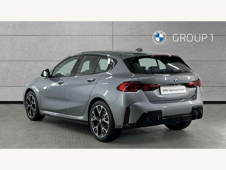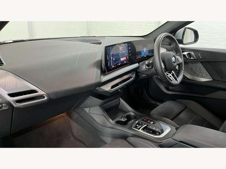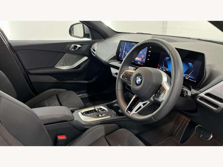 Active guard plus, Attentiveness assist, Bluetooth / WiFi interface for wireless connection of mobile terminal devices and audio streaming, BMW ConnectedDrive online services, BMW Live cockpit plus, BMW Teleservices, Check Control warning system for monitoring of lights and door/luggage compartment open warning, Eco pro mode, Electric power steering with Servotronic steering optimised at all speed ranges, Evasion assistant, Flat airvents in instrument panel with adjustable slats, Front and rear parking sensors, Front axle single joint with specific axle kinematics to minimise drive influences on steering + provide increased rigidity agile driving behaviour, Gearshift time display in manual mode, Integrated owners handbook, Left turn warning with brake function, My modes (Personal / Efficient / Sport), Oil sensor for level and grade, On board computer, Optimum shift indicator, Park assist including reversing assistant, lateral parking aid and reversing assist camera, Personal e-SIM, Personal Profile, Pull away assistant, Rigidly mounted rear subframe - Multi link construction with separate spring / damper configuration and excellent driving characteristics, Speed limit Info including no-overtaking indicator, Speed limiter, 49 litre fuel tank, Aluminium lightweight construction, Anti roll bar front and rear, Balancer shaft, Double VANOS twin scroll turbocharging system, Drive Performance Control, Electronic differential lock, Electronic selector lever, High precision injection, M Adaptive suspension, Petrol Particulate Filter, Steptronic transmission with double clutch, Twin tube gas filled shock absorbers with degressive characteristic curve, VALVETRONIC engine management, DAB Digital radio, Auto dimming rear view mirror, Automatic windscreen wipers and automatic headlight, Body colour door handles, Body colour mirror caps, Body colour roof trims, Chrome 'M' logo side designation, Chrome exhaust twin tailpipes round 90mm in left, Chrome kidney grille frame with Satin Aluminium struts, Direction indicator side lights in exterior mirrors, Electrically adjustable exterior mirror with mirror adjustment switch on drivers armrest and aspheric on driver side, convex on passenger side, Exterior M sport design elements, Fading support, Folding side mirrors with auto dimming/folding wing mirrors with auto dimming, Follow me home headlights, Front and rear bumper system with replaceable deformation elements, Front and rear electric windows with open and close fingertip control, anti trap facility and comfort closing, Front bumper panel with M specific design in vehicle colour with inserts in black high gloss, Front door sill finishers in black plastic with M designation in metallic look, Green tinted heat protection glazing, Heated rear window, High gloss black exterior mirrors, High gloss shadowline window frame, Recess cover mirror frames and B/C pillar embelisher trim, High level third brake light, Integrated front windscreen with washer jets, LED daytime running lights, LED eyebrow turn indicators, LED front fog lights, LED Headlights, Lightweight engineering, M identification on the sides, Matt black air guide grilles, Matt black wheel arch trim, Model badge on tailgate right, Nearside reverse light in rear light cluster, Preparation for high beam assistant, Rain sensor, Rear bumper panel with M-specific design in vehicle colour with inserts in black high gloss, Rear fog lights, Rear side wing doors, Rear window wiper, Shark fin antenna, Side sill covers with M specific design in body colour, Trailer stabilisation logic, Visible VIN plate, Welcome lighting, 12V power socket in front centre console with blanking plug, 3 rear seat head restraints, 3 seat bench in 2nd row, 3 spoke sports leather steering wheel with black leather and stitching, pearl chrome decorative finish, specific M Badge, Anthracite front and rear floor mats, Anthracite headlining, Black boot net with lashing eyes, Cargo function on 2nd seat row, Child seat ISOFIX attachment for two outer rear seats and front passenger seat with anchorage points, Conditioned based service, Driver and front passenger backrest net on rear, Driver and front passenger seat heating, Driver side folding compartment in instrument panel, Folding rear clothes hook, Footrest and pedals in black plastic, Four grab handles integrated in roof lining, Front and rear door pockets with bottle holders, Front and rear side armrest integrated into door trim, Front armrest with storage compartment, Gearshift paddles on steering wheel, Glove compartment, Height adjustable front head restraints, Luggage compartment for bag hooks on left and right, foldable luggage compartment liner and four lashing eyelets, Manual adjust steering wheel, Multi-function controls for steering wheel, Rear seat backrest with manual 60:40 split folding with 3 top tether clips integrated on rear of seat panels, Single front passenger seat, Storage compartment in centre console, Storage compartment in luggage compartment, Stowage of the parcel shelf in luggage compartment trim, Sun visors with vanity mirrors and insert tab, Two front centre console cupholders, Type C two USB ports in rear centre console, Upper retaining strap integrated into backrest rear panels, Connected pack professional - 1 Series, Interior lights pack - 1 Series, M Sport exterior styling aerodynamics pack - 1 Series, 2 tone horn, 3 point seatbelts on all seats, front pyrotechnic belt tensioners, stopper and belt force limiters, rear coded belt buckles, Airbags - Front driver/passenger, front and rear curtain head protection, front side, manual deactivation of front passenger airbag, Anti lock braking system (ABS) with brake assist, BMW emergency call, Brake drying, Braking readiness, Child proof locking system in rear door, Comfort modes, Cornering brake control, Crash sensor activating of airbags, Unlocking doors, hazard warning lights, interior light, safety battery terminal, Driver and front passenger seat belt sec