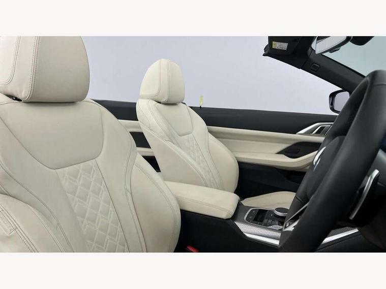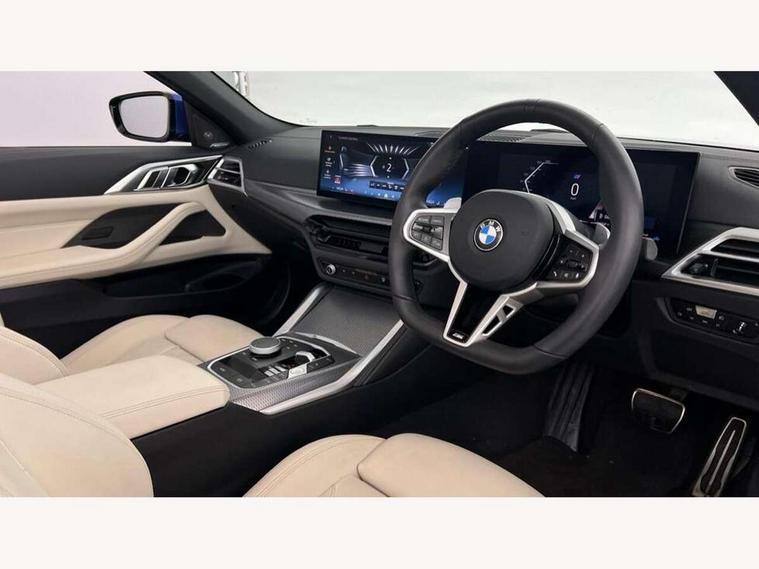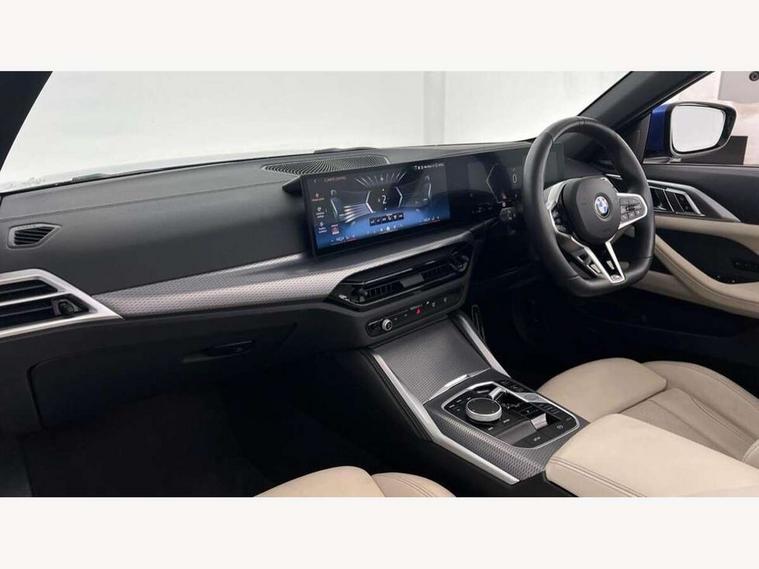 Active guard plus, Attentiveness assist, Auto start-stop, Bluetooth hands free facility with USB audio interface with audio streaming, BMW ConnectedDrive online services, BMW iDrive controller on centre console, BMW Live Cockpit Plus Nav-12.3" instrument&14.9" control Widescreen curved display/Intelligent Voice Assist/iDrive touch/Access 3rd party app/4G LTE, BMW service history, BMW Teleservices, Brake pad wear indicator in front and rear, Check Control warning system for monitoring of lights and door/luggage compartment open warning, Condition based service, Electric power steering with Servotronic steering optimised at all speed ranges, Gearshift time display in manual mode, Instrument cluster with speedometer with mph readout, tachometer, fuel gauge and oil temperature gauge, Integrated owners handbook, Language version English, Oil sensor for level and grade, warning by check control system, On board computer - average speed, fuel consumption, outside temp display with acoustic warning, clock/date, service interval, odometer/trip meter, Optimum shift indicator, Run flat indicator, Shifting point display, Smartphone integration compatible with Apple CarPlay and Android Auto, Variable sport steering, 8 speed automatic steptronic transmission with gearshift paddles, Balanced 50/50 weight distribution, Double joint spring strut front axle, Double VANOS, Drive performance control - ECO PRO, comfort and sport modes, High precision injection, Low centre of gravity, Petrol Particulate Filter, Stroke dependent dampers, VALVETRONIC engine management, 1x USB type A with data transfer and 1.5 Amp charging function in the centre console, 1x USB type C with 3 Amp charging function in the front centre armrest, DAB tuner, Electronic service booklet, Personal eSim, Acoustic glazing, Automatic headlight beam throw control with load dependent regulating reaction, dynamic compensation of braking dive and acceleration squat, Automatic windscreen wipers and automatic headlight, Automatically dimming electrochromatic rear view mirror, BMW emblem on engine compartment lid and tailgate, BMW kidney grille with mesh grille front side of the nuggets in matt aluminium and frame in chrome high gloss, Body colour fuel filler flap, Body colour roof fin, Brushed aluminium inserts in the front door sill finishers with BMW designation, Door sill strips, Dynamic brake lights, Electric windows - front and rear, with open/close fingertip control, anti trap facility and comfort closing function all round, Exterior mirrors - electrically folding with anti-dazzle, Fading support, Follow me home headlights, Front and rear bumper system, Front apron plastic in body colour, Green tinted heat protection glazing, High gloss shadow line exterior trim, Illuminated bow type door handles in body colour drivers side with door lock, Interior rear view electrochromatic mirror with automatic anti dazzle function, LED daytime running lights, LED front fog lights, LED front indicators, Licence plate panel integrated into front bumper and tailgate, Lightweight engineering, M designation on front side panels, left and right, One piece front bumper cover including towing eye cover in body colour, Preparation for high beam assistant, Rear boot, Reversing light, Side frame decorative moulding black matt, Third brake light, Two part LED tailights in L-shape with components in smoked glass, brake light, LED turn indicator and rear fog light, Visible exhaust tailpipe finisher, Visible VIN plate, Welcome lights in interior and door handle area, Widened track and increased camber values for max transverse dynamics, agility and steering precision, Wind deflector, Window recess finisher strip in matt black, Windscreen wipers with integrated heated washing jets, 12V power socket in front centre console, 2 2nd row folding seats, 2 front cupholder in centre console with clamping elements and matt black inlay, 2 Rear seat headrests, 2 zone automatic air conditioning, 2nd row centre armrest with built-in cupholders, 3 spoke flat bottom M sport leather multifunction steering wheel, 4 pieces lashing eyelets in luggage compartment, Anthracite headlining, Armrest integrated in front and rear door trim + front centre console armrest, Battery in luggage compartment, BMW ID, Driver seat backrest width adjustment, Electric seat adjustment with memory, Extended storage - Luggage compartment partition net on left side trim panel, Bag hook on both sides of the luggage compartment, Front and rear door pockets, Front and rear reading lights, Front sport seats, Heated driver and front passenger seats, Height adjustable front headrests, Height adjustable mechanically and infinitely variable steering column, Illuminated armrest storage compartment, Illuminated glove compartment with separate small compartment, Luggage compartment light, Make-up mirror lights, Single front passenger seat, Storage compartment in rear centre console, Sunvisors with illuminated vanity mirrors and ticket pocket, Toolkit located in luggage compartment, Velour front floor mats, Ambient lighting pack - 4 Series, Connected professional package - 4 Series, M sport exterior styling pack - 4 Series, 2 x 3-point rear seatbelts, Battery safety cut-off, BMW emergency call, Brake energy regeneration, Braking pre-tensioning, Child seat ISOFIX attachment for the two outer rear seats, Coasting in idle in ECO PRO mode, Cornering brake control (CBC), Crash sensor activating of airbags, Unlocking doors, hazard warning lights, fuel cut off, interior lighting+activation of safety battery terminal clamp, Driver and front passenger side airbags, integrated in the door side seat backrest bolsters for all seat variants, Driver/Front Passenger airbags, Dry braking, Dynamic brake control, Dynamic stability control + (DSC+) - Anti-lock Braking System (ABS) with brake assist and cornering brake control + Automatic Stability Control (ASC), Dynamic Traction Control - DTC, Electric parking brake including automatic hold 