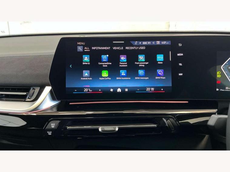 4G LTE connectivity, Attentiveness assist, Automatic start/stop function, Bluetooth / Wi-Fi interface with hands free system, BMW ConnectedDrive store and BMW Remote softwre upgrade, BMW Intelligent Personal Assistant, BMW Live Cockpit Plus - Widescreen display with 10.25" instrument cluster and 10.7" CID display, BMW Maps, BMW Operating System 9 with variable, confirgurable widgets, BMW Teleservices, Brake pad wear indicator, Condition based service, Connected drive services, Drive off assistant, Electrically opening/closing tailgate with opening/closing with remote control and contactless opening and closing, Gear display in instrument cluster including recommended gear, iDrive controller, Language version English, My modes (Personal / Efficient / Sport), Parking assistant with reversing assistant, active PDC, lateral parking aid and rear view camera, Personal Profile, Servotronic PAS, Smartphone integration for Apple CarPlay/Android Auto, Speed limiter, Touch operation on control display, Dynamic stability control, Larger Fuel Tank, Performance Control, Petrol Particulate Filter, Steptronic transmission with double clutch and gear shift paddles, BMW Personal eSim, DAB Digital radio, Tuner with diversity reception and RDS, AM radio and FM radio, B-pillar and front/rear door trim panels and exterior mirrors in matt black with mirror cap in vehicle colour, BMW radiator grille with mesh grid in black high gloss, radiator grille frame in pearl chrome, Dynamic brake lights, Electric adjustable heated door mirrors, Electric windows - front and rear, with open/close fingertip control, anti-trap facility and comfort closing, Folding door handles integrated flush with surface, Front bumper cover with air inlet trims for air curtains in matt black, Front door exit lights, Heated rear window, High Gloss Black rear spoiler, Home light, Invisible exhaust tailpipe, LED 3rd brake light integrated in rear window frame, LED daytime running lights, LED number plate light, Matt black roof strips, Rain sensor including auto headlights activation, Rear side wing doors, Rear wiper, Side sill trim panel in black matt grained, Trailer stabilisation logic, Welcome lighting, Window recess finisher strips and side window frames in matt black, Windscreen washer nozzle for rear view camera, Windscreen wipers front with heated washer nozzles, 12V - Power sockets with front centre console and luggage compartment, 12V socket in right side trim panel, 2 bag hooks in luggage compartment, 2 cup holders in front centre console, 2 front reading lights, 2 x USB Type C ports for charging and data transmission (front centre console) and 1 USB Type C ports for charging (rear centre console), 3 rear headrests, 3 seat bench in 2nd row, 3 upper retaining strap clips integrated into rear panels of seat backrests, 40:20:40 split folding rear seats, Ambient interior lighting, Anthracite front and rear floor mats, Bottle trays in all doors, Child seat ISOFIX attachment for two outer rear seats and front passenger seat with anchorage points, Driver and front passenger heated seats, Dual zone automatic air conditioning, Flat air vents on instrument panel in high gloss black, adjustable seats with elements in pearl chrome, Footrest and pedals in stainless steel look, Front and rear door pockets, Front and rear footwell lights, Front armrest with integrated control panel, Front centre console storage compartment, Front/rear adjustable head restraints, Glove compartment, Interior door handle recess light on all doors, Light on right in luggage compartment, M headliner Anthracite-A pillar trim panels, headliner in anthracite & B, C, D pillar upper trim panels, sun visors, grab handles, microphone cover in black, M leather steering wheel, Map pockets on the seats (version depending on equipment), Middle centre console storage compartment, One piece parcel shelf opens together with tailgate and removable, Rear armrest in door trim panel, Rear coat hooks, Selector lever with toggle operation, Single front passenger seat, Storage compartment lighting in centre console and storage tray in centre stack, Storage compartment net in left side trim panel, Storage compartment with folding cover under centre console armrest cushion, Storage tray in right side trim panel, Sun visors with illuminated vanity mirrors, Tilt adjustment incl. cargo function of 2nd row of seats, ABS, Automatic hold function, BMW emergency call, Braking readiness, Child lock for rear electric windows, Cornering brake control (CBC), Crash Sensor - activates hazard/interior lighting + unlocks doors, Driver/Front Passenger airbags, Driver/front passenger side airbags, Dry braking, Dynamic brake control, Electromechanical parking brake, Energy recovery system, First aid kit, Front and rear brake discs, Front centre airbag between driver and front passenger seats, Front passenger airbag deactivation, Head airbags for all 4 outer seats, Integrated brake system, Locking of doors after driving off, PC iBrake PostCrash approach control warning with light braking function, Rear door child safety locks, Three point seat belts in all seats, Tyre pressure monitor, Warning triangle, Alarm system with tilt sensor, monitoring doors, bonnet interior and tailgate, Closing system with central locking including 2 vehicle keys with integrated emergency key, Locking wheel bolts, Front centre console trim in high gloss black, Luxury instrument panel, Tyre repair kit plus,