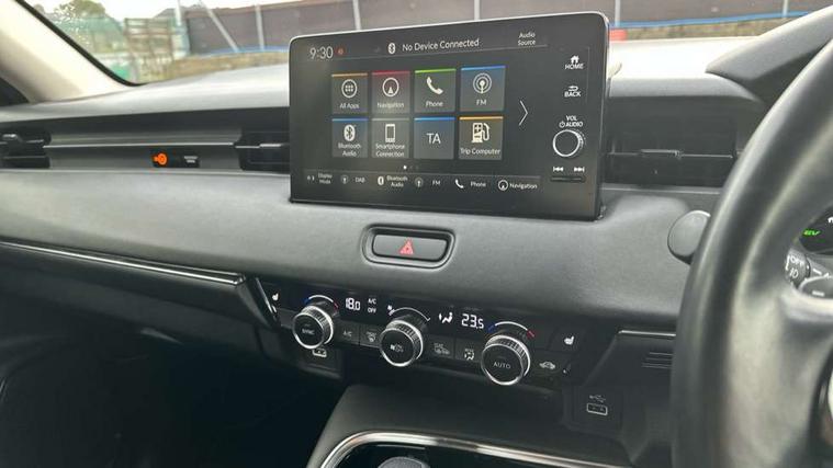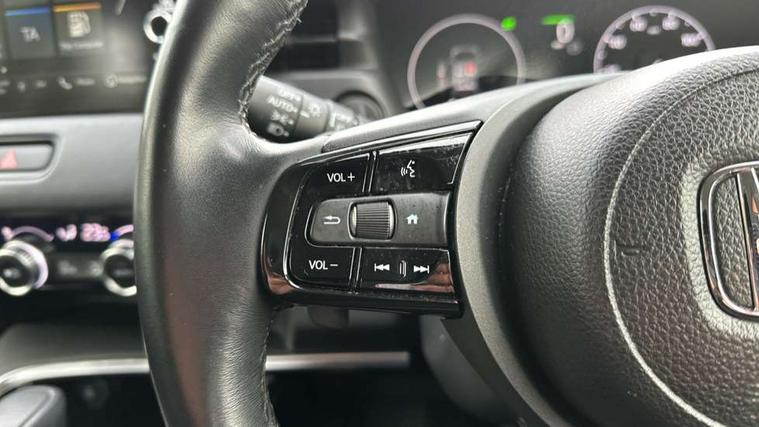 7" TFT instrument cluster, Adaptive cruise control, Adjustable speed limiter, Agile handling assist, BLIS (Blind Spot Information System) with Cross Traffic Monitor, Bluetooth hands free telephone connection, Drive modes select (Eco, normal and sport), eCall emergency system, Electric power steering, Emergency stop signalling system, Forward collision warning, Front parking sensors, Handsfree power tailgate with walkaway close, Honda CONNECT with navigation, 9" touchscreen, AM/FM/DAB/Apple Carplay and android auto, Idle stop, Intelligent speed limiter, Lane departure warning, Lane keep assist, Low speed following, Multi info display, Power meter, Rear parking sensors and rear view camera, Road departure mitigation, Tachometer, Traffic sign recognition, WiFi connectivity, Vehicle stability assist, 'Shark fin' mobile antenna, 2 USB sockets in rear, 2x USB Front socket (1 data & 1 charge), 4 speakers + 2 tweeters, Steering wheel mounted remote controls, Auto dimming rear view mirror, Auto folding door mirrors, Auto high beam, Automatic coming home lighting, Automatic headlights, Automatic rain sensing wipers, Body colour bumpers, Body colour tailgate spoiler, Body coloured door handles, Electric front and rear windows, Electrically adjustable and heated door mirrors, Exclusive styling in lower bumper black, Fog garnish paint emblem gray black lower door garnish with silver accent, Bumper skid garnish sharp silver, Front sequential turn, Front wiper de-icer, Headlight washers, Heated front windscreen, Heated rear window, High gloss side window surrounds, High level third brake light, LED daytime running lights, LED front fog lights, LED headlamps, Manual headlight levelling, Rear side wing doors, Rear wiper, Red and clean lens LED rear lights, Retractable/reverse auto tilt door mirrors, Variable front intermittent wipers, Windscreen shadeband, 3 rear headrests, 3 seat bench in 2nd row, 60/40 split folding rear seat, Ambient interior lighting, Cargo net hooks, Courtesy lights, Driver seat back pocket, Driver's seat height adjustment, Driver/passenger sunvisors with illuminated vanity mirrors, Dual automatic air conditioning, Front and rear map reading lights, Front head restraints, Front seat armrests, Heated front seats, Heated steering wheel, Isofix points, Luggage area under floor storage box, Magic seat flexibility system, Manual height/reach adjust steering wheel, Meter illumination light, Paddle shift controls, Passenger seat back pocket, Rear centre armrest, Rear ventilation, Silver interior door handles, Silver interior panels, Single front passenger seat, Smooth leather steering wheel, Tonneau cover, Trunk light, 3x3 point rear seatbelts, ABS+EBD+Brake assist, Anti-whiplash front headrests, Auto hold function, Collision mitigation braking system, Collision mitigation throttle control, Deflation detection system, Dual front SRS airbags, Electric child locks, Electronic parking brake, Front and rear curtain airbags, Front and rear safety belts with Emergency Locking Retractor, Front side airbags, Hill descent control, Hill start assist, Low speed safety system, Paddle deceleration control, Passenger SRS airbag cut-off device, Regenerative braking system, Door deadlocks, Honda super locks, Immobiliser, Keyless smart entry with push button start, Mirrors and windows key fob operation, Remote central locking with 2 remote folding keys, Security alarm, Tyre repair kit,