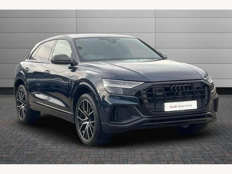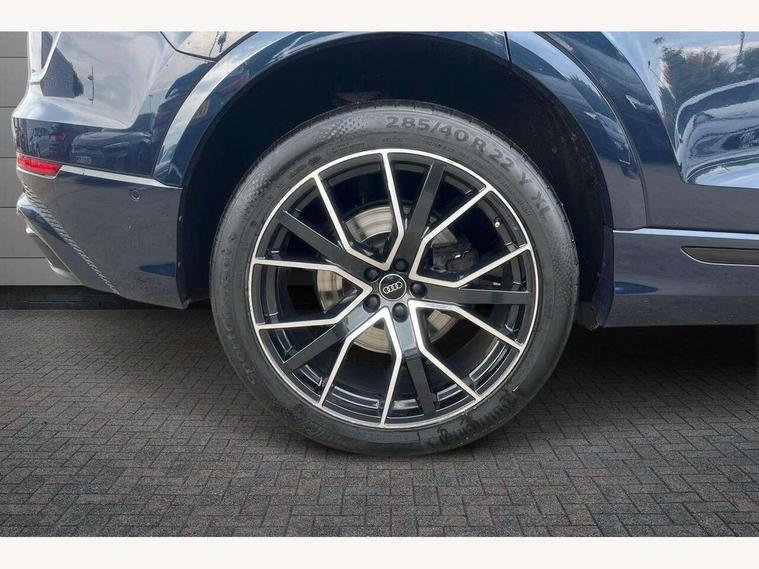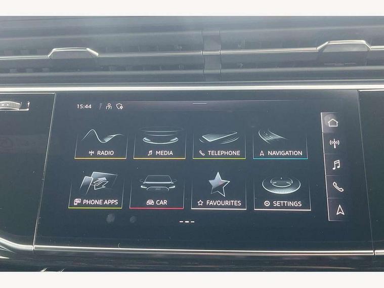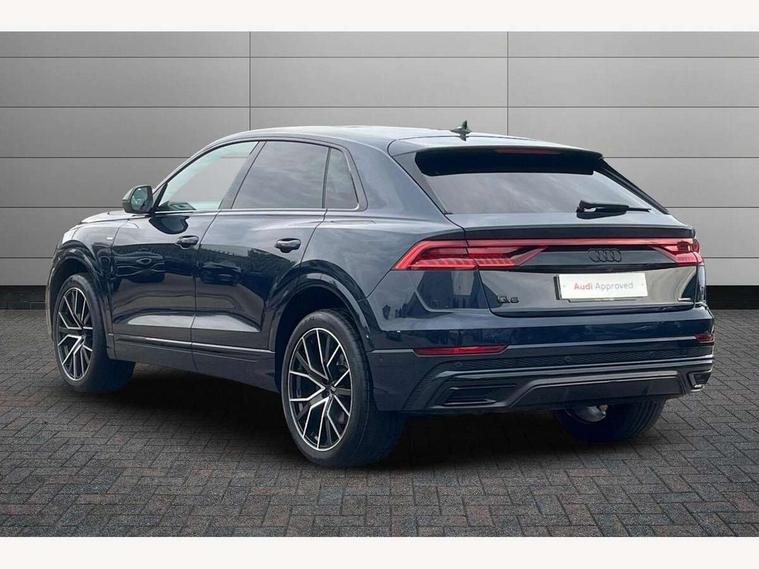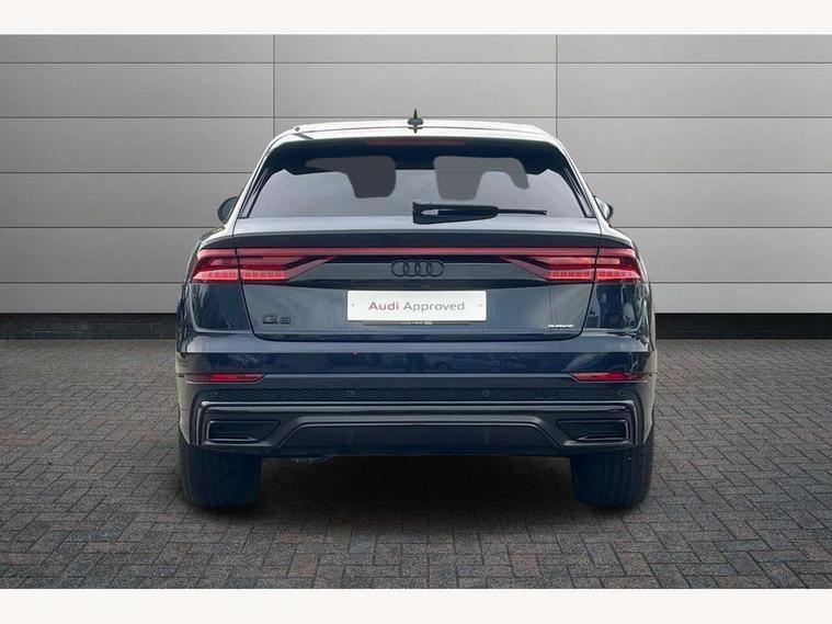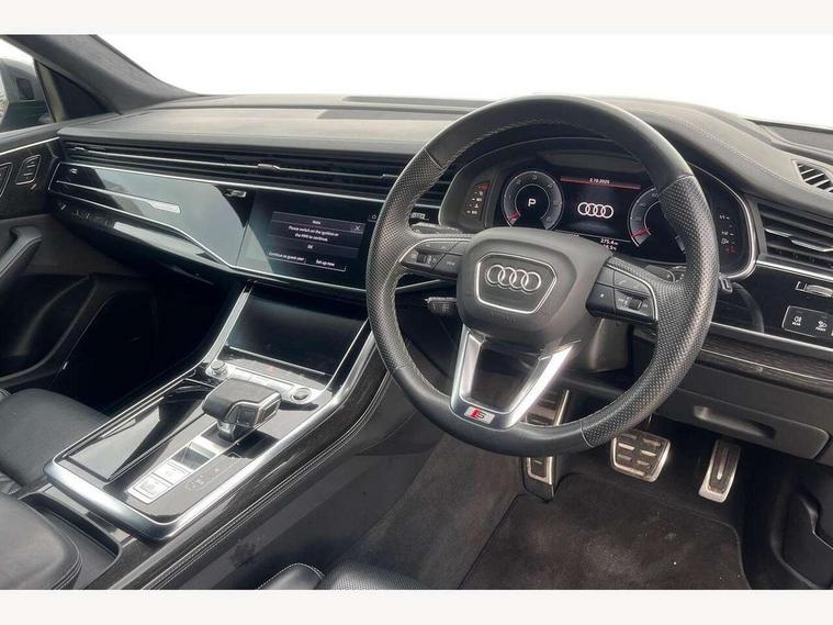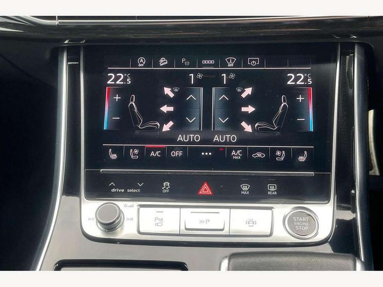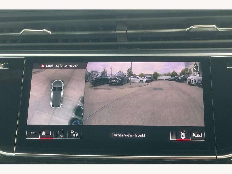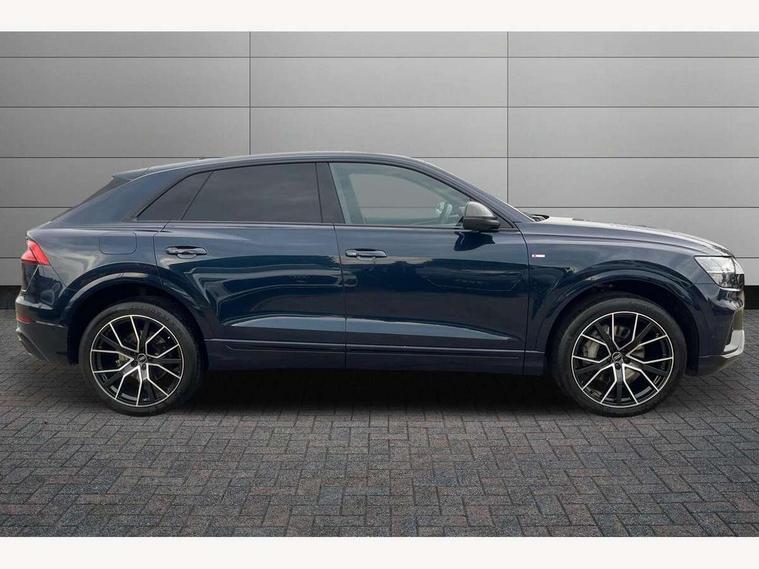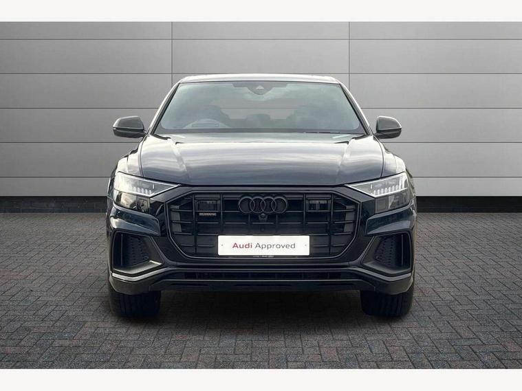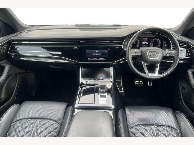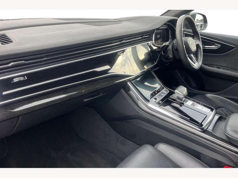 10.1" and 8.6" Dual colour touchscreens, 2 USB C ports with charging functionality in the rear, 360 camera, Adaptive cruise control, All wheel steering, Audi connect safety and service (e-call), Audi connect with Amazon Alexa Integration, Audi drive select, Audi phone box light with wireless charging, Audi side assist, Audi virtual cockpit plus, Automatic start/stop system, Camera based traffic sign recognition, Collision avoidance assistant, Cross traffic assist front and rear, Electro-mechanical PAS, Head up Display, Lane departure warning with emergency assist, Low washer fluid indicator, MMI - Multi Media Interface control system, MMI navigation plus with MMI touch, Natural voice recognition, On board computer, Operating buttons in black, glass look with haptic feedback, Power door closure, Power operated tailgate, Predictive efficiency assistant, Remote park assist plus, Service interval indicator, Smartphone interface includes wireless Apple carplay/Android Auto, Turn Assist, 48V Mild hybrid technology, Adaptive sport air suspension, Diesel particulate filter, Quattro all wheel drive with self locking centre differential, Audi music interface with 2 USB ports with charge and data functions, Aux-in socket, Bang + Olufsen sound system, DAB Digital radio, 3rd brake light, Acoustic windscreen, Adaptive windscreen wipers with integrated washer jets, Aluminium window trim, Audi beam, Audi HD Matrix LED headlights with dynamic front and rear indicators, Auto dimming frameless rear view mirror, Coming/leaving home lighting function, Electric front+rear windows, Electric panoramic glass sunroof, Electrically folding auto dimming/adjustable/heated door mirrors with memory function, LED side indicators and kerb view function for passenger side, Gloss black finish for exterior Audi rings and Q8 logo without engine badging, Headlight washers, Heat insulating glass in windshield, LED signature daytime running lights, Platinum grey front spoiler lip and diffuser insert with honeycomb grille in black, Privacy glass - dark tinted rear and rear side windows from B-pillar backwards, Rain and light sensors, Rear side wing doors, Rear wiper, 3 bench rear seats in 2nd row, 3 spoke heated leather multi-function sport steering including paddle shift, 4 zone deluxe automatic climate control, 4-way lumbar support for front seats, 40:20:40 split folding rear bench seat, Audi phone box light, Black dinamica headlining, Comfort front centre armrest, Double sun visor with illuminated vanity mirror on driver and passenger side extendable, Driver and front passenger seat memory function for electrically adjustable front seats, Electric luggage compartment cover, Electric sunblind for the rear side windows and manual sunblind for the rear window, Front head restraints, Front/rear floor mats, Heated front and outer rear seats, ISOFIX child seat mounting for front passenger seat and 2 outer rear seats with top tether child seat mounting for all 3 rear seats, Luggage compartment sill protection in stainless steel, Massage and ventilation function for front seats, Power adjustable steering wheel, Rear centre armrest with 2 cupholders, Rear headrests, Seat cushion displaceable by 100mm in the ratio 60:40, Single front passenger seat, Stainless steel pedals, Valcona leather upholstery + front super sport seats with S embossed logo, Ambient lighting package plus - Q8, Extended leather pack - Q8, Multi coloured extended LED Interior lighting pack - Q8, 3 point seatbelts on all seats, Audi pre sense basic, Audi pre sense front, Audi pre sense rear, Child locks on rear doors, Driver and front passenger, front side and curtain airbags, Electromechanical parking brake, Electronic Stability Control (ESC) including ABS, ASR and EDL, Exit warning, Front passenger airbag deactivation, Hill descent control, Hill hold assist, Predictive pedestrian protection, Seatbelt monitoring, Traction control, Tyre pressure loss indicator, Warning triangle and first aid kit, Advanced key, Anti theft alarm with tow away protection, Anti-theft wheel bolts and wheel loosening detection, Immobiliser, Polished oak trim with grey finish inlay, Tool kit, Tyre repair kit,