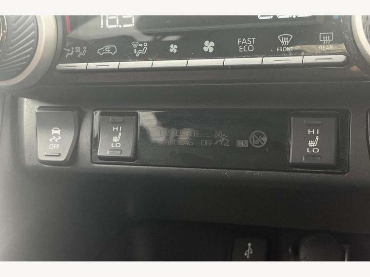 7" Coloured TFT multi informational display, Analog tachometer, Apple car play and Android auto, Blind spot monitoring with rear cross traffic alert, Bluetooth system, Cyclist Detection, Day and night time pedestrian detection, Digital speedometer, Drive mode selector, Driver attention alert system, eCall emergency call system, ECO-driving indicator, Electric power steering, EV audible alert, Front parking sensors, Hybrid system indicator, Intelligent adaptive cruise control, Lane departure alert with steering control, Lane trace assist, Lights on warning, Memory on adjustable speed limiter, My T Connected services, Power boot opening and closing, Push button start, Rear parking camera, Rear parking sensors, Remote boot door release in cabin, Remote boot door release in key, Road sign assist - RSA, Smartphone integration, Touch 2 Go navigation system, Traffic sign recognition, Trip computer, Voice control system, Wireless Mobile Phone Charger, 6.6 kw fast charger, 7.5m cable with home charging plug, Vehicle Stability Control (VSC), 2x USB sockets in front armrest, 2x USB sockets in rear, 6 speakers, 9" Multimedia display, Auxiliary socket for external MP3 player, DAB audio, Toyota touch 2 multimedia system, USB in front centre console, Anti-jam protection on power windows, Auto high beam, Auto up and down function on all power windows, Automatic headlamp levelling, Automatic headlights, Automatic wipers, Automatically retractable door mirrors, Bi-tone black roof, Black door mirrors, Black door moulding, Black front bumper, Black front grille, Black front under-run, Black rear bumper, Black rear spoiler, Black rear under-run, Black roof rails, Black Shark-fin antenna, Body colour door handles, Chrome window surround, Door mirror puddle lights, Dual exhaust pipes, Electric adjustable door mirrors, Emergency brake-light signal (EBS), Follow me home headlights, Framed electrochromatic rear view mirror, Front fog lights, Heated door mirrors, Honeycomb upper front grille, LED daytime running lights, LED dual beam projector headlights, LED front light guide, LED High mounted stop lamp, LED rear lights, Power front windows, Power rear windows, Privacy glass, Rear side wing doors, Rear windscreen defogger, Rear wiper, Retractable tonneau cover, Trailer Sway Control, Turning signal integrated indicators in door mirrors, 1.5L front and rear bottle holder, 12V socket in boot, 12v socket in front, 220v power socket in boot, 2x Rear coat hooks, 3 rear headrests, 3 seat bench in 2nd row, 60/40 split fold rear seat back with toyota easy flat system, Adjustable speed limiter switch on steering wheel, Array microphone, Black roof lining, Blue ambient lighting on front cupholders and open tray on passenger dashboard, Boot light, Clean air filter, Driver and front passenger personal light, Driver and front passenger Whiplash Injury Lessening seats, Driver and passenger seatback pockets, Driver and passenger sunvisors with illuminated vanity mirrors, Dual sided deck board in boot, Dynamic sports seats, Floor mats, Folding rear centre armrest, Front centre armrest, Front cupholders, Front footwell lights, Front headrests, Front/rear roof mounted assist grips, Heated driver and front passenger seats, Heated rear seats, Illuminated entry system, Isofix child seat preparation, Leather gearshift, Lockable glovebox, Manual telescopic and tilt 3-spoke nappa leather steering wheel, Manually reclining and sliding front passenger seat, Multimedia switches on steering wheel, Pollen filter, Power height-adjustable sliding reclining and lumbar support for driver seat, Rear console box, Rear door armrests with cupholder, Rear passenger air vents, Rear view display in display audio screen with dynamic guide lines, Reclining rear seats, Remote dual zone automatic air conditioning, Satin chrome interior door handles, Silver gear shift surround on centre console, Sunglasses holder, Synthetic leather upholstery, Telephone and voice recognition switches on steering wheel, Under floor storage in luggage area, 3x3 point rear seatbelts, ABS/EBD, Acoustic vehicle alerting system, Adjustable front driver and passenger seat belt extender, Brake assist function, Brake hold function, Child proof door locks, Collision mitigation braking system, Driver/Front Passenger airbags, Driver/front passenger side airbags, Drivers knee airbag, Electronic parking brake, Electronic Stability Programme (ESP), Front and rear curtain airbags, Front and rear seatbelt reminder, Front passenger airbag detector, Hill start assist, Passenger airbag cut-off device, Pedestrian detection, Pre collision system, Seatbelt pretensioners with load limiters, Toyota safety sense, Traction control, Tyre pressure warning, Glass-breaking alarm sensors, Immobiliser, Intrusion alarm, Light - on and Key in reminder, Motion sensor alarm, Remote central locking, Smart entry + Smart start, Speed sensitive auto door locking, Tilt detection sensors, Black centre air vent surround, Black centre console, Soft-touch black upper dashboard with silver insert, Soft-touch texture on lower dashboard, 19" 5 spoke black machined face alloy wheels, Tyre repair kit,