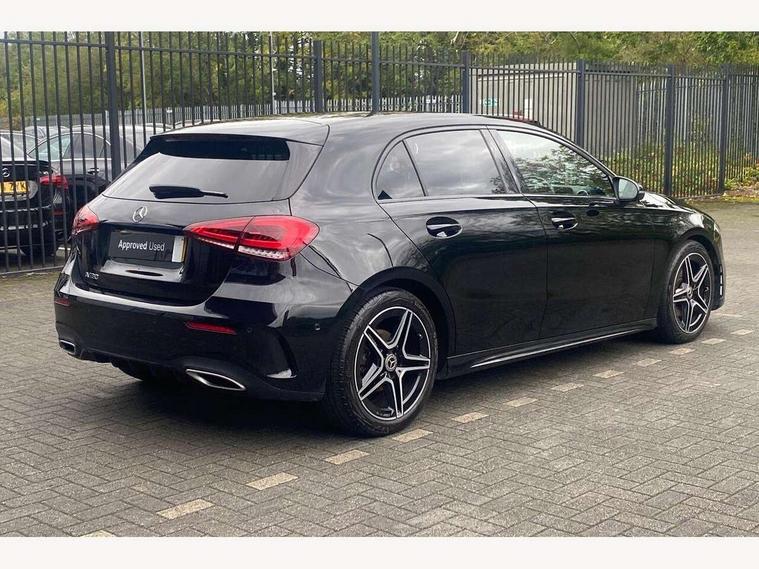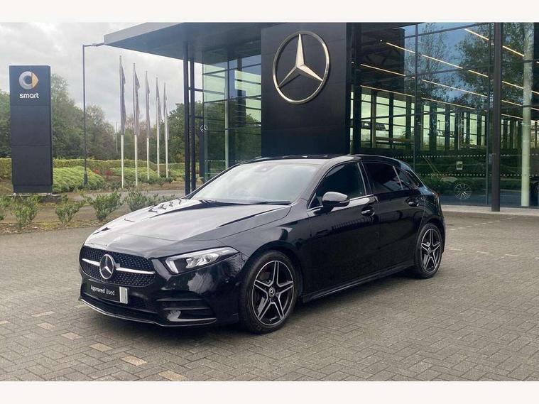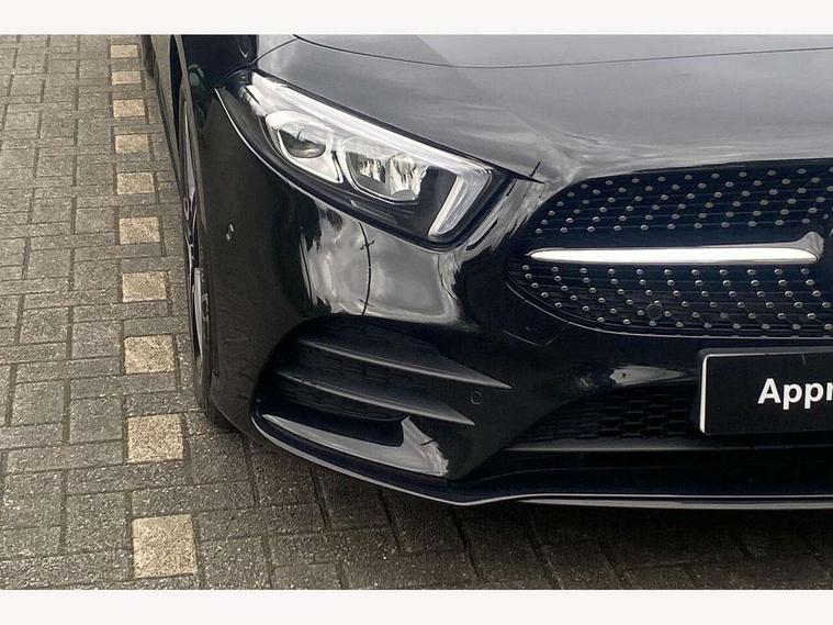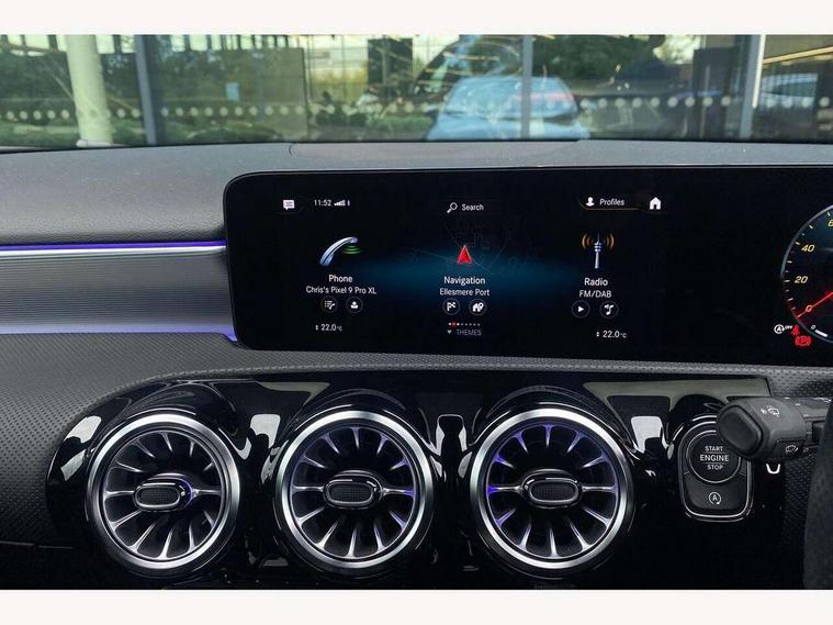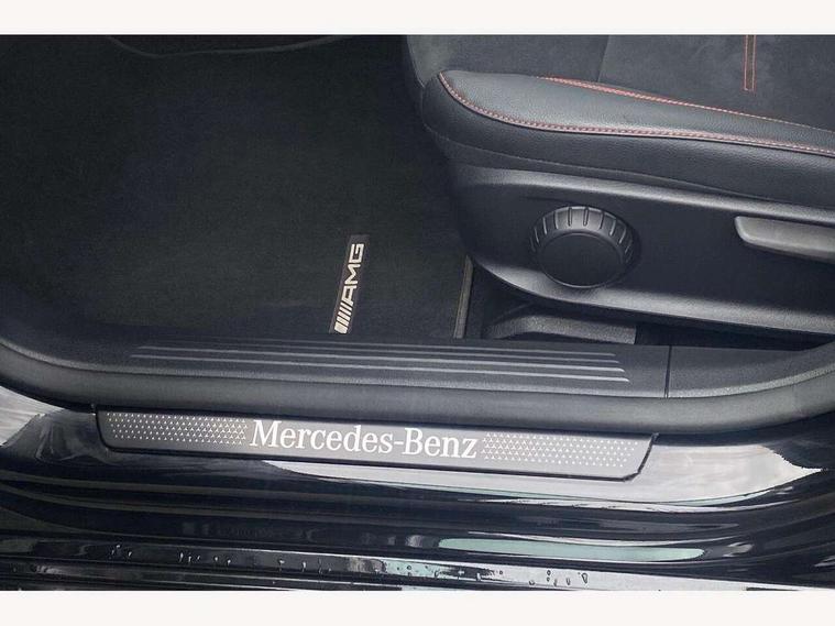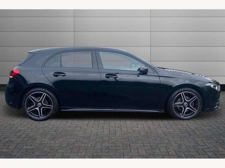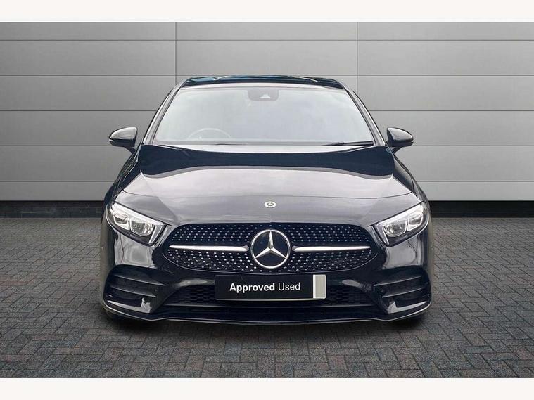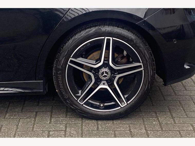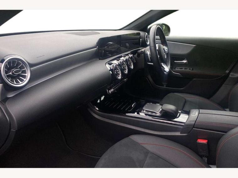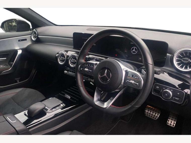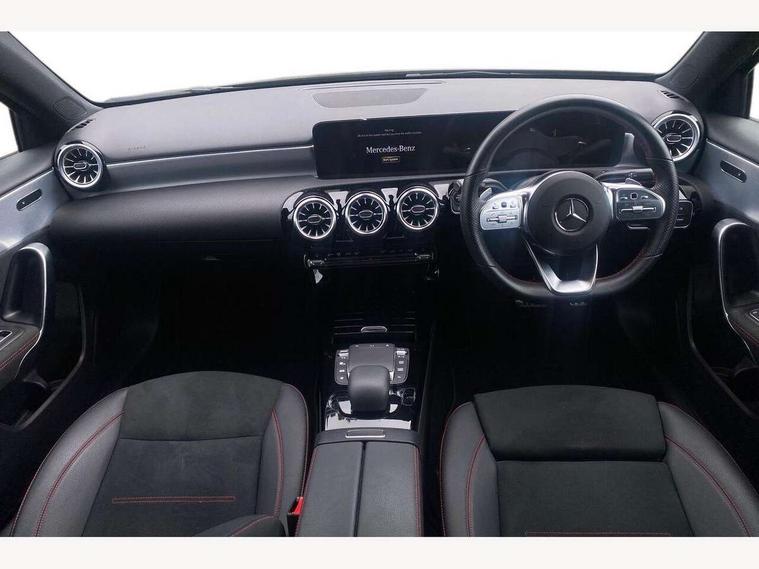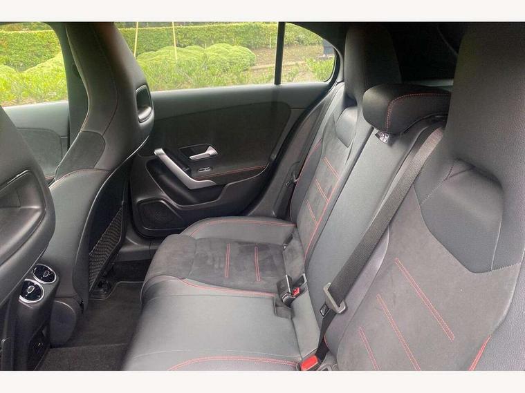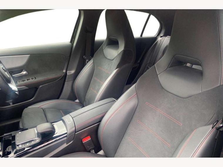 10.25" Digital instrument cluster display screen, 10.25" media display, 180 degree rear view camera with parking guidelines, Active parking assist with visual and audible warning of detected obstacles, Attention assist, Brake pad wear indicator warning light, Car wash mode, Cruise control + speed limiter, Direct steering, Dual bluetooth interfaces, DYNAMIC SELECT with a choice of driving modes (ECO, Comfort, Sport and Individual), ECO start/stop function, Fluid level warning indicator for fuel, oil, coolant and washer fluid, Hard-disk navigation, Hey Mercedes Voice activation, Lamp failure indicator, Lane keeping system, Mercedes me connect including emergency call system, accident recovery, breakdown and maintenance management, Mercedes me remote services, Outside temperature gauge, Owners manual in English, Pre-installation for private car sharing, Preinstallation for Mercedes Benz link, Service indicator (ASSYST), Smartphone integration with Apple CarPlay and Android auto, Speed limit assist, Speed sensitive power steering, Trip computer, Ultrasonic sensors positioned in the front and rear bumpers, Lowered comfort suspension, Rear axle torsion beam, 2 USB ports (type C) in rear stowage compartment and one in front of center console, 6 speakers, DAB Digital radio, MBUX multimedia system with DAB digital radio and touchpad including satellite navigation, Mercedes-Benz sound system - 100W, 4 Electric Front and Rear windows, Adaptive brake lights, AMG bodystyling - Front apron with splitter in chrome, rear apron with chrome trim and chrome visible trim elements in tailpipe, Automatic headlights, Black weather strip, Body colour bumpers, Body colour door handles with chrome inserts, Body colour side skirt, Electric adjustable and heated door mirrors with integrated LED side indicators, Exclusive diamond radiator grille, Exhaust system - Twin visible tailpipes in polished stainless steel, Headlamp assist automatic headlamp activation, Heated glass rear windscreen + timer control, LED High level third brake light, LED high performance headlamps with integrated LED daytime running lights, LED tail lamp, Privacy glass, Radio aerial, Rain sensing windscreen wipers with two sensitivity settings, Rear fog lights, Rear side wing doors, Rear wiper, 3 seat bench in 2nd row, 3 Spoke flat bottom leather multi function steering wheel with perforated leather in grip area, 40:20:40 split folding rear seats, Artico man-made leather/Microfibre Dinamica upholstery with red contrast stitching, Auto Mercedes-Benz child seat recognition sensor, Black air vents with surround in silver chrome, Black roof lining, Brushed stainless steel sports pedals with rubber studs, Controller on centre console with chrome surround, Floor mats with AMG lettering, Front centre armrest with storage compartment, Front seat backs luggage nets, Galvanished gear shift paddles on steering wheel, Heated front seats, Height/reach adjustable steering column, Illuminated Mercedes Benz lettering front door sills with changeable cover, Interior lighting - 64 colour Ambient lighting, Interior mirror with reading lamps in black and frameless, Manual height adjustable front seats, Rear head restraints, Seat occupancy sensor for front passenger seat, Single front passenger seat, Sports seats with integrated headrests, Stowage compartment in centre console with retractable cover, Sunvisors with illuminated vanity mirrors, Touchpad on center console, Twin front cupholders, Two zone thermotronic luxury automatic climate control, Light and sight pack - A Class, Mirror package - A Class, Night pack - A Class Saloon/Hatchback, Seat comfort pack - A Class, 3 rear 3 point seatbelts, ABS with Brake Assist, Active bonnet, Active brake assist includes forward collision warning system with autonomous braking, Adaptive brake assist with hold function and hill start assist, Black seatbelts, Childproof locks manually operated for rear doors and electrically operated for rear power windows, Crash responsive emergency lighting, Driver and passenger head and side airbags, Drivers knee airbag, Dual stage driver/passenger airbags, Electronic parking brake, ESP curve dynamic assist, ESP with ASR, Front and rear seatbelt reminder, Front brake callipers with Mercedes Benz lettering, ISOFIX and top tether child seat fixing points in two outer rear seats, Tyre pressure monitoring system, Warning triangle and first aid kit, Window airbags, Alarm system/interior protection/immobiliser, Keyless Go, Remote central locking and crash sensor with emergency opening function, Urban guard vehicle protection system with immobiliser and interior protection, Matrix look light longitudinal grain aluminium trim element, 18" AMG 5 twin spoke light alloy wheels aerodynamically optimised painted in black with highsheen finish, Summer tyres, Tirefit sealant kit,