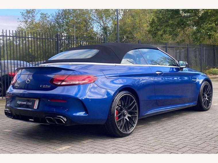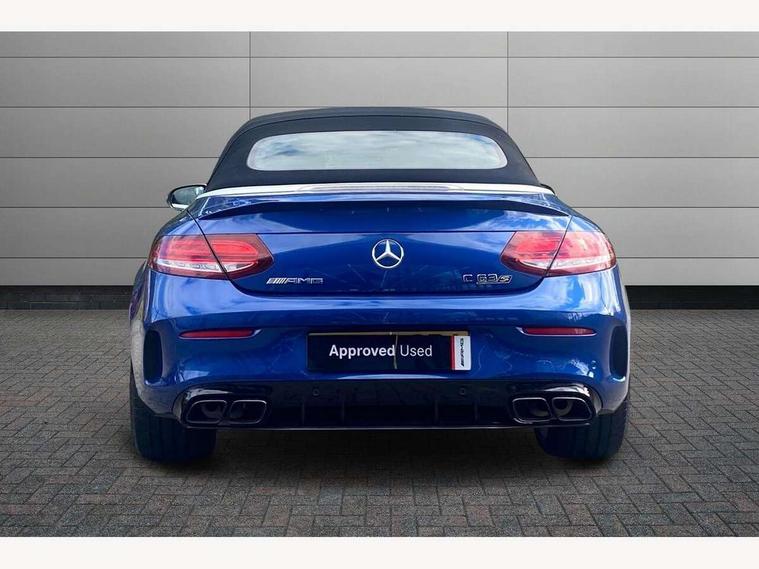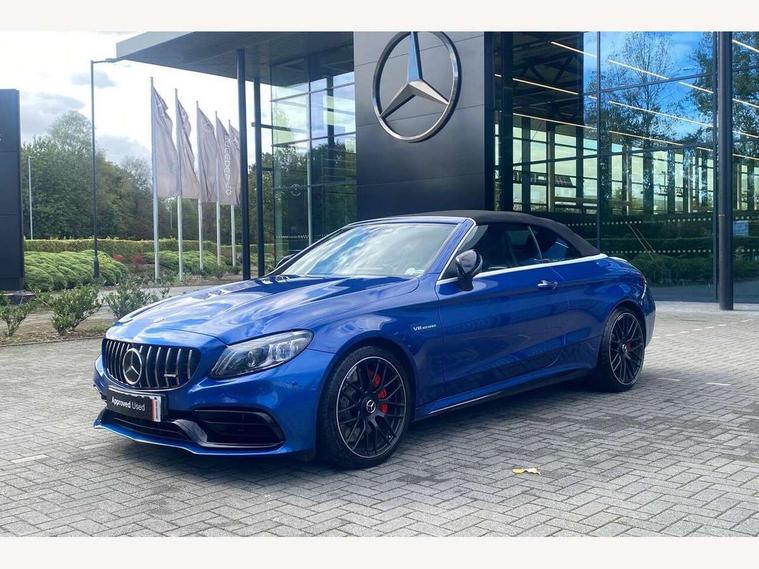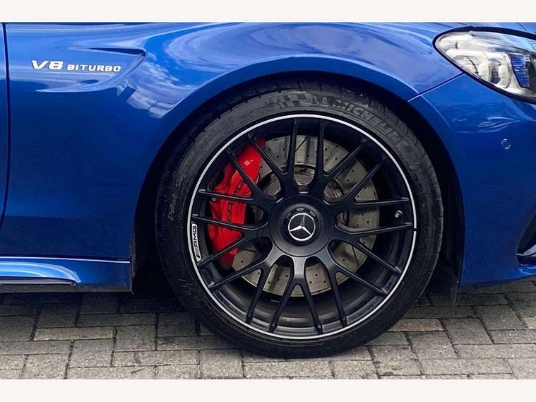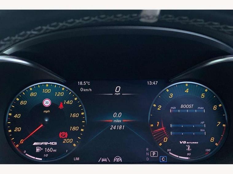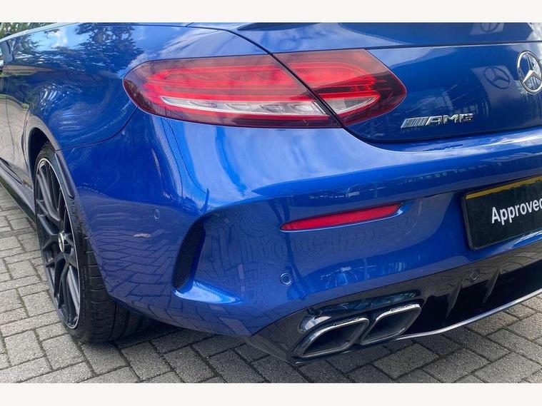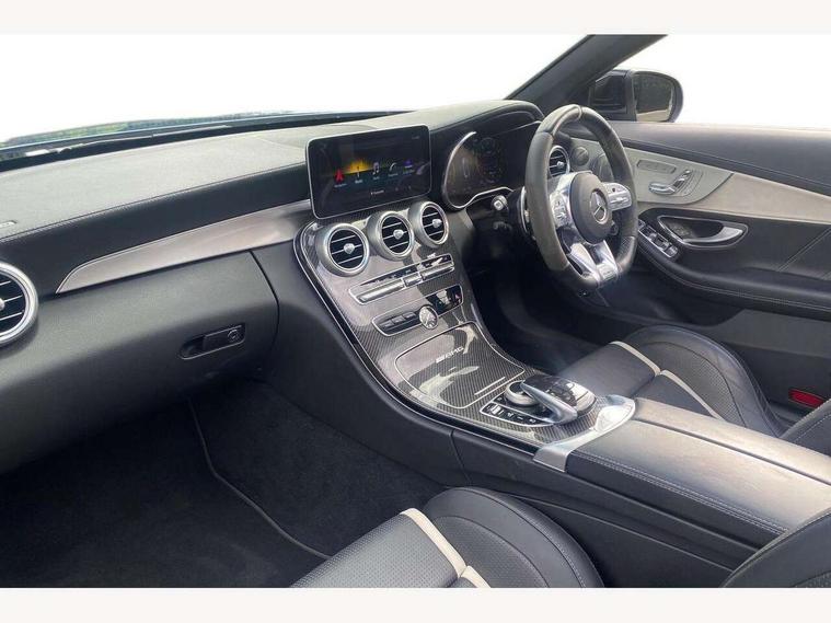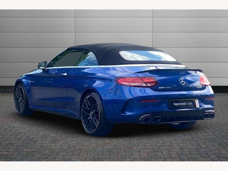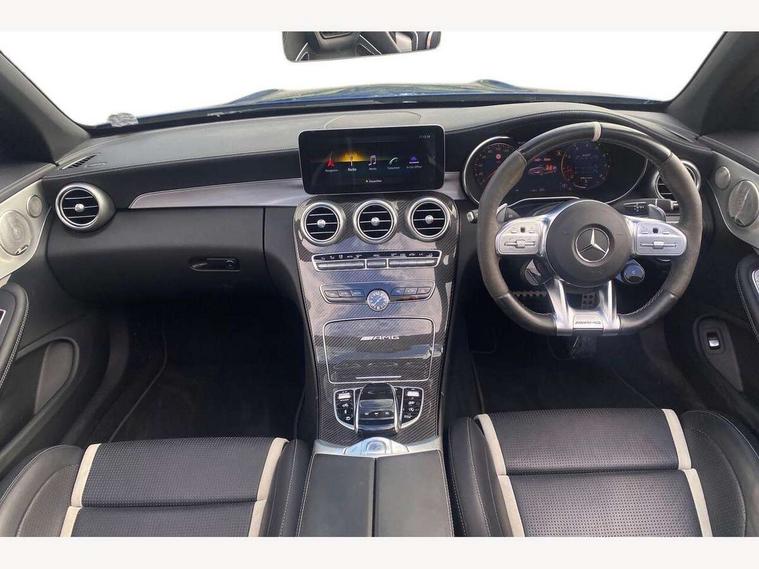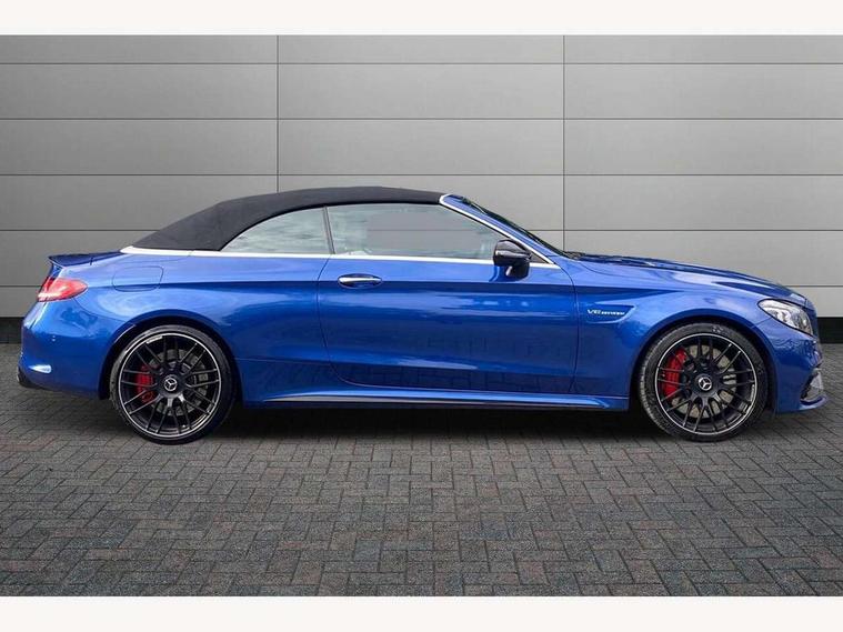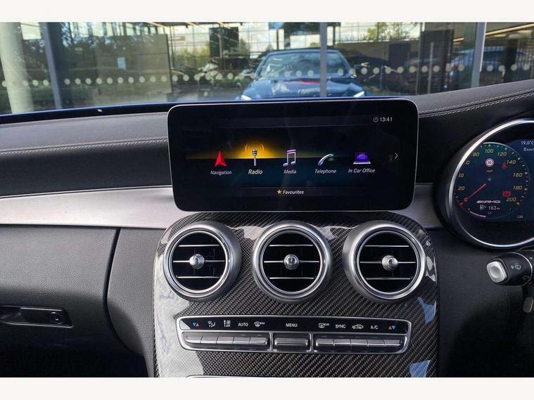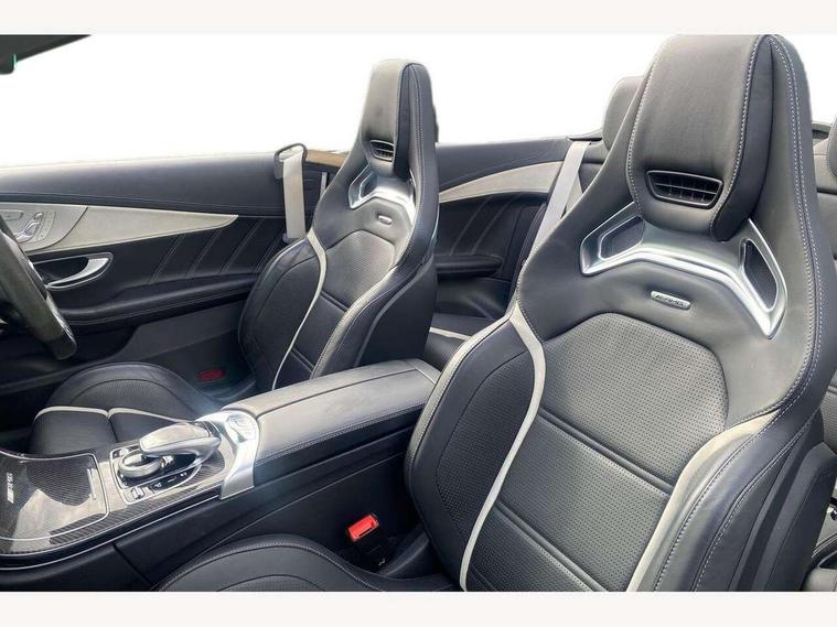 12.3" digital instrument cluster display with AMG specific selectable display "Supersport", 3 stage speed sensitive sport steering, 360 degree camera, Active park assist with parktronic system, AMG boot logo in central screen, AMG DYNAMIC SELECT with a choice of driving modes - Comfort, Sport, Sport+, Individual and Race, AMG track pace, Attention assist, Bluetooth interface for hands free telephone, Collision prevention assist plus, Comand Online HDD Nav with media interface, radio/CD/DVD/MP3, 10.25 screen, linguatronic voice control, Cruise control with speedtronic variable speed limiter, ECO start/stop function, Head up Display, High resolution 10.25" multimedia colour display, Mercedes me connect including emergency call system, accident recovery, breakdown and maintenance management, Multi function trip computer, Outside temperature display, Pre-wiring for SD navigation system, Remote boot release, Reversing camera, Service indicator (ASSYST), Status display for rear seat belts in instrument cluster, 66l fuel tank with increased capacity, AMG rear axle limited slip differential lock, AMG Ride Control sports suspension, AMG SPEEDSHIFT MCT 9 speed automatic sports transmission, Petrol Particulate Filter, Burmester surround sound system, DAB digital radio tuner, Frontbass loudspeakers, SD card slot, Two USB ports and one SD Card slot in centre console, Acoustic soft-top with enhanced climate and noise comfort, Adaptive brake lights, AIRCAP wind deflector and draught stop, AMG bodystyling - front apron with distinctive air intakes and AMG rear apron with diffuser look, AMG bonnet with powerdomes, AMG boot lid spoiler in body colour, AMG front apron with A-wing in high-gloss black, AMG performance exhaust system, AMG rear apron with 4 diffuser fins, diffuser board plus trim strip painted in matt iridium silver, AMG side sill panels with silver chrome inserts, AMG specific radiator grille in high sheen chrome with AMG lettering, Automatic headlights, Body coloured bumpers, Electric windows with one touch opening/closing and obstruction sensors, Exterior mirrors heated and electronically adjustable, Front door sill panels with AMG lettering, Full LED tail lamps, Green tinted glass, LED daytime running lights, LED Indicators, LED third brake light, Mercedes AMG C 63 S badging at the rear, Multi beam LED headlights, Radio aerial integrated into rear window, Rain sensor windscreen wipers, Rear boot, Semi-automatic boot separator, Side windows surround in polished aluminium, V8 BITURBO badging with flared AMG wings, 2 cupholders in front centre console, 2 rear head restraints, 2 seat bench in 2nd row, 3-spoke AMG performance flat lower lthr steeringwheel in nappa lthr/dina microfibre 12ock black silver alumin gearshift paddle + touch control button, 40:20:40 split folding rear seats, Airscarf - neck level heating, AMG emblem in front head restraints, AMG performance seats, Auto Mercedes-Benz child seat recognition sensor, Floor mats with black leather edging, red piping and AMG logo, Front centre armrest with storage compartment, Front head restraints, Front LED reading lights, Heated front seats, Height/reach adjustable steering column, Illuminated glove compartment stowage, Interior lighting - 64 colour Ambient lighting, Nappa leather upholstery, Single front passenger seat, Sports pedals with stainless steel surfaces and rubber studs, Steering wheel gearshift paddles, Steering wheel touch control buttons for audio and onboard settings, Sunvisors with illuminated vanity mirrors, THERMATIC 2 zone automatic climate control, AMG Driver's Package - C Class Cabriolet, AMG night package - C Class, Driving Assistance plus pack - C Class, Interior lighting package - C Class, Memory pack with steering column memory - C Class, Mirror package - C Class, Stowage space pack - C Class, 2 rear seatbelts, 3 point automatic seatbelts, Active bonnet, Adaptive brake system with hold function and brake drying function, AMG high performance braking system, Anti-lock braking system (ABS), Automatic seatbelt pretensioner for driver and front passenger, Dual stage airbags - driver and front passenger, front sidebags, driver kneebag, pelvis bag and windowbags for driver, front and rear passengers, Electronic parking brake, Electronic Stability Programme (ESP), ISOFIX child seat attachment points with top tether in rear, Red brake calipers with AMG lettering, Seat belts in Crystal grey, Tyre pressure monitoring system, Warning triangle and first aid kit, Anti-theft alarm system/interior protection with tow-away protection and interior monitoring systems, Central locking with interior switch, automatic locking and crash sensor with emergency opening function, Chrome surround electric key, Immobiliser, KEYLESS-GO starting function, AMG carbon fibre/light longitudinal grain aluminium trim, Artico man-made leather dashboard with contrast stitching, Light longitudinal grain aluminium trim painted, 19" front / 20" rear forged AMG cross spoke design matt black alloy wheels, TIREFIT with tyre inflation compressor,