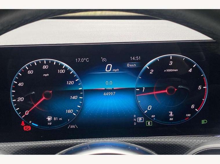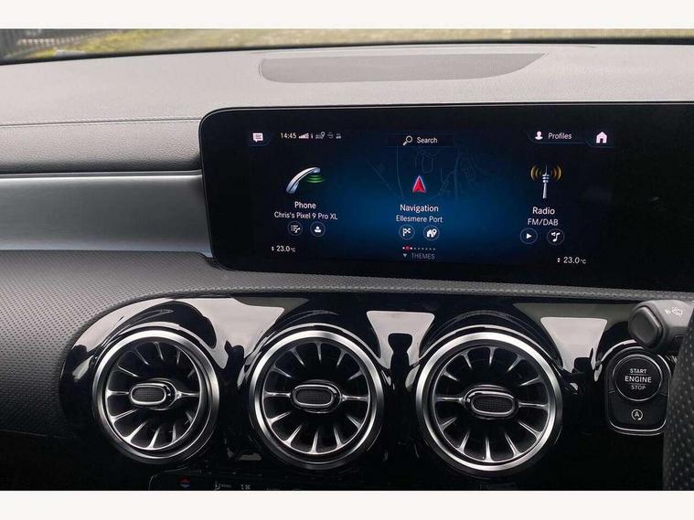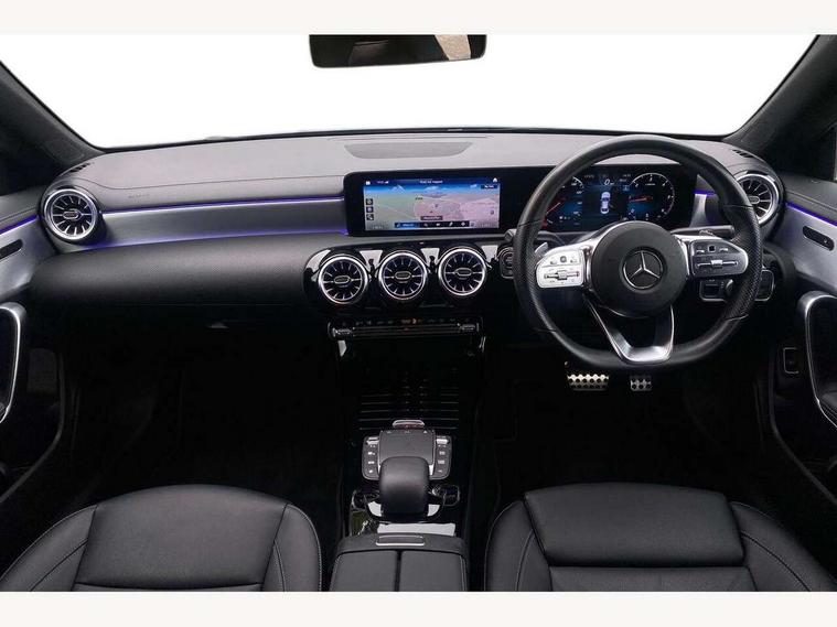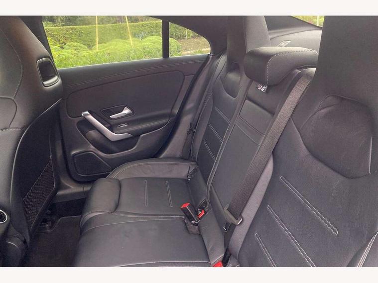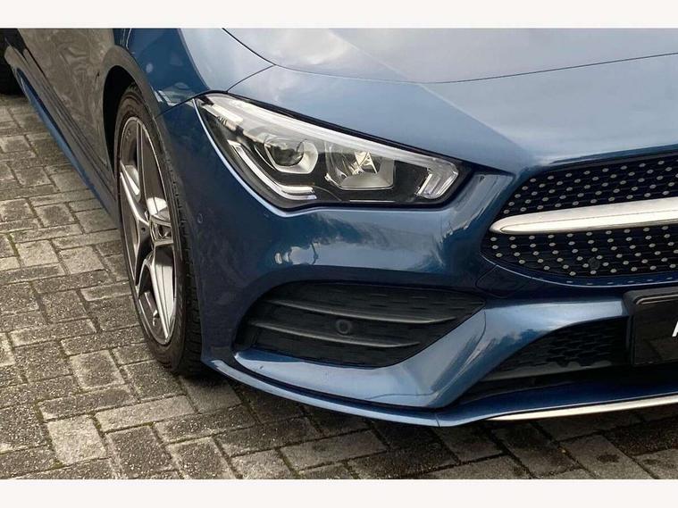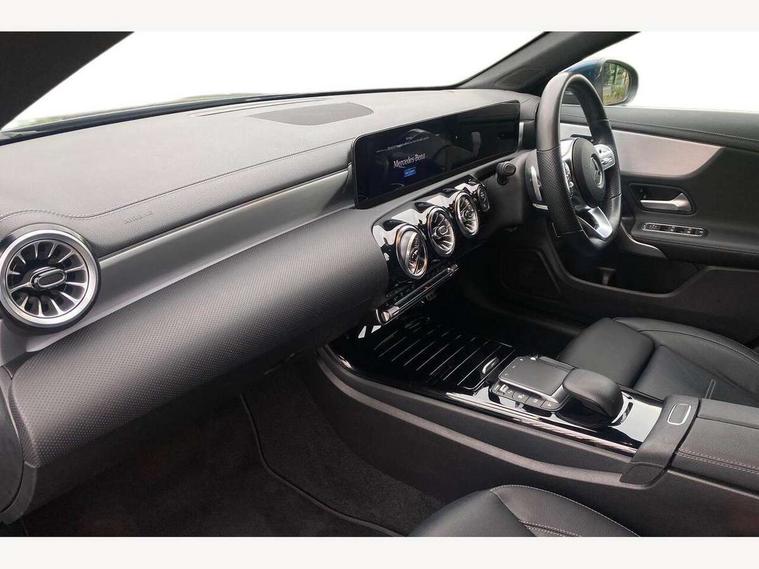 10.25 inch Instrument display with digital cockpit, 10.25 inch touchscreen central media display, Active lane keeping assist, Attention assist - Monitors steering behaviour and long journey fatigue, Bluetooth connection, Car wash mode, Cruise control with limiter, Direct steer system with speed sensitive power steering, DYNAMIC SELECT with a choice of driving modes (ECO, Comfort, Sport and Individual), ECO start/stop function, Fluid level warning indicator for fuel, oil, coolant and washer fluid, Hard-disk navigation, Hey Mercedes Voice activation, Lamp failure indicator, Mercedes me connect including emergency call system, accident recovery, breakdown and maintenance management, Mercedes me remote services, Outside temperature gauge, Owners manual and service booklet in English, Pre-installation of private car share, Preinstallation for Mercedes Benz link, Radio aerial integrated into front and rear windshields, Service indicator (ASSYST), Smartphone integration with Apple CarPlay and Android auto, Speed limit assist, Trip computer in multifunction display with current consumption indicator, Lowered comfort suspension, Rear axle multi-link, DAB digital radio tuner, MBUX multimedia system with DAB digital radio and touchpad including satellite navigation, Mid-range sound system, USB (type C) ports (2) in stowage compartment and 1 in front of centre console, Adaptive brake lights, AMG body styling with AMG front apron and rear apron and visible exhaust tailpipe in chrome trim elements, AMG bodystyling side skirts, Body colour bumpers, Body colour door handles, Chrome beltline strips, Chrome weather strip, Diamond radiator grille pins in chrome with silver painted louvres and chrome insert, Electric windows, Electrically adjustable and heated door mirrors with integrated LED indicators, Exhaust system with 2 Visible tailpipe trim elements and rear apron with trim in chrome, Headlamp assist automatic headlamp activation, Heated glass rear windscreen + timer control, High level LED third brake light, Interior mirror with black reading lamps and frameless, LED high performance headlamps with integrated LED daytime running lights, LED tail lamp, Privacy glass with dark tinting on rear side windows and rear window, Rain sensing windscreen wipers with two sensitivity settings, Rear boot, Rear fog lamp, Rear side wing doors, Window line trim strip in chrome, 3 seat bench in 2nd row, 3 spoke flattened bottom nappa leather multifunction steering wheel with perforated leather in grip area, 40:20:40 split folding rear seat backrests, Air conditioning - Two zone thermotronic luxury automatic climate control with display, Air vents with surround in silver chrome, Automatic child seat recognition sensor, Black roof lining, Brushed stainless steel sports pedals with rubber studs, Floor mats with stitched AMG lettering, Front centre armrest with stowage, Galvanished gear shift paddles on steering wheel, Heated front seats, Illuminated front door sills with changeable cover, Illuminated glove compartment stowage, Interior lighting - 64 colour Ambient lighting, Luggage net on driver/front passenger seat backrest, Manually adjustable front seats, Manually height and reach adjustable steering column, Rear armrest with two integral cup holders for drinks, Rear head restraints, Single front passenger seat, Sport seats with fixed head restraints, Stowage compartment in centre console with retractable cover, Sunvisors with illuminated vanity mirrors, Touchpad on center console, Twin front cupholders, Two outer rear seat isofix and top tether child seat fixing points, Keyless go pack - CLA, Light and sight pack - CLA, Mirror pack - CLA, Parking package - CLA, Seat comfort pack - CLA, Active bonnet pedestrain safety measure which detects an impact and raises bonnet by 65mm, Active brake assist includes forward collision warning system with autonomous braking, Adaptive brake assist with hold function and hill start assist, Anti-lock braking system (ABS), Black seat belts, Bonnet with power domes, Brake pad wear warning indicator, Childproof locks manually operated for rear doors and electrically operated for rear power windows, Crash responsive emergency lighting, Driver and front passenger head and sidebags, Driver and front passenger windowbags, Drivers knee airbag, Dual stage driver and front passenger airbags, Electric parking brake, Electronic stability programme with acceleration skid control, ESP curve dynamic assist, Front and rear seatbelt reminder, Front passenger seat occupancy sensor, Three point rear seat belts, Tyre pressure monitoring system, Warning triangle and first aid kit, Remote central locking and crash sensor with emergency opening function, Urban guard vehicle protection system with immobiliser and interior protection, Light aluminium with longitudinal grain interior trim, 18" 5 twin spoke design alloy wheels painted in titanium grey with high sheen finish, Summer tyres, Tirefit tyre sealant kit,