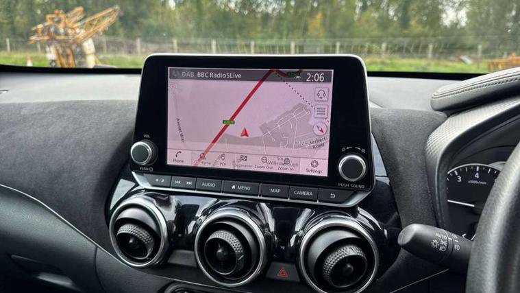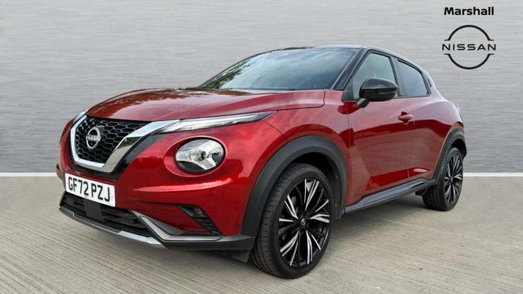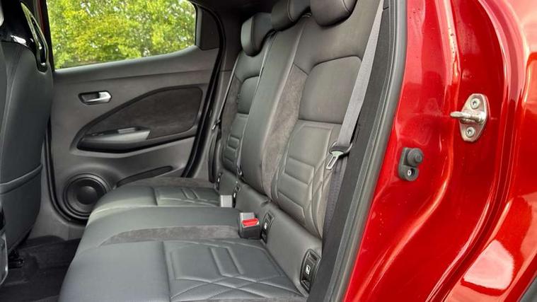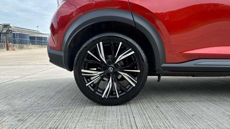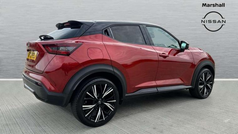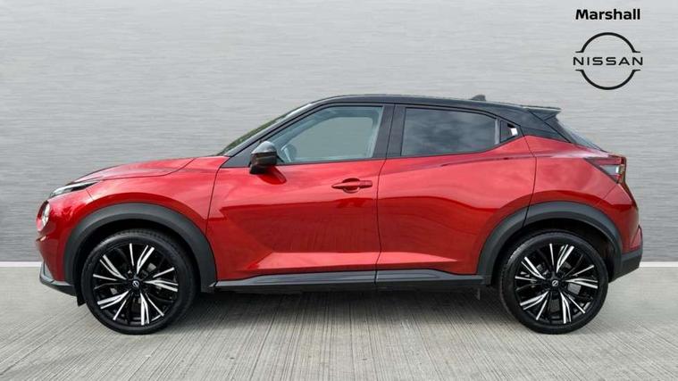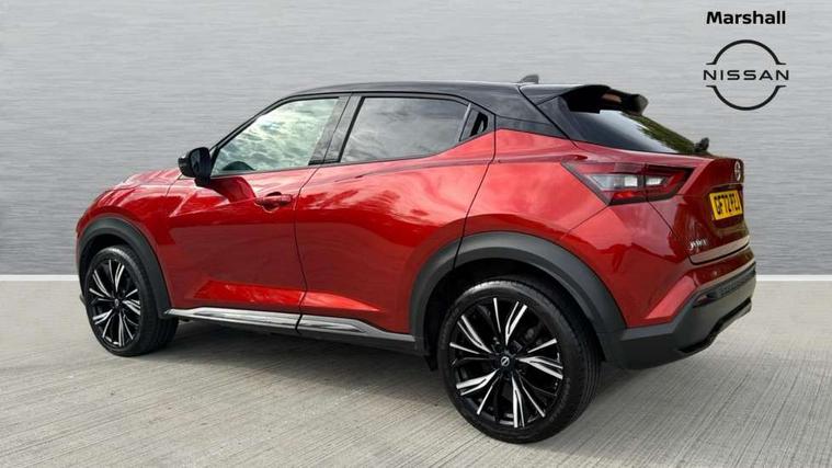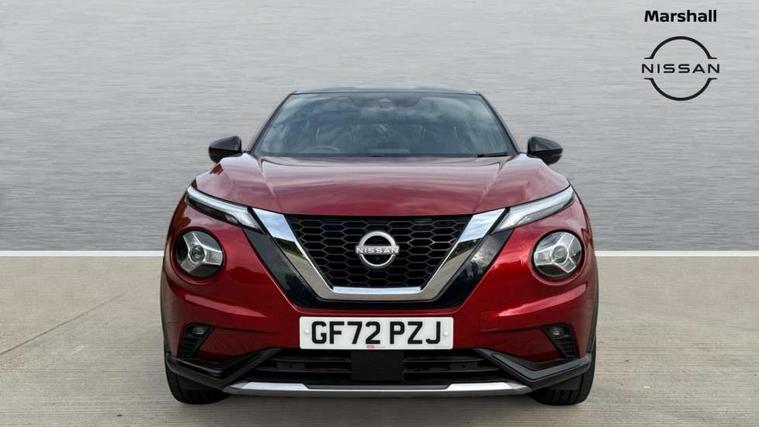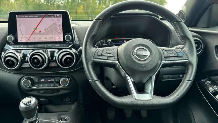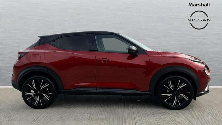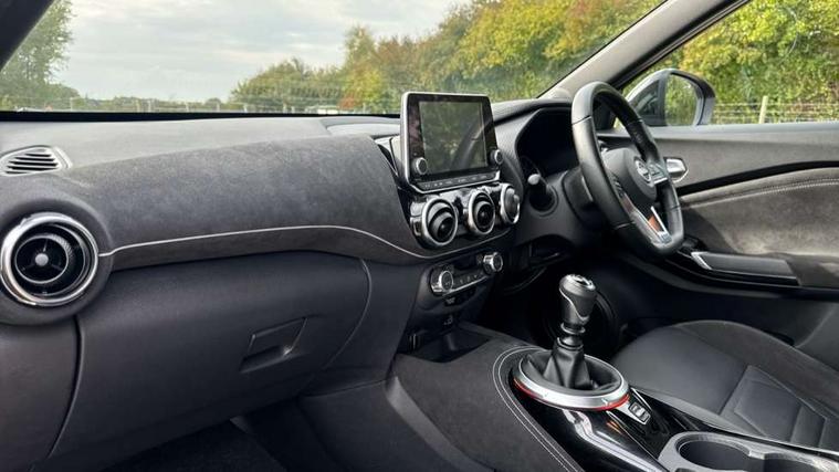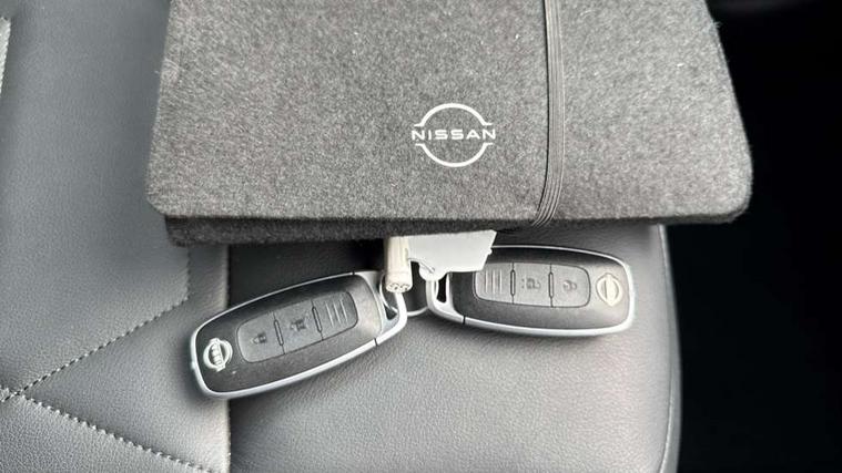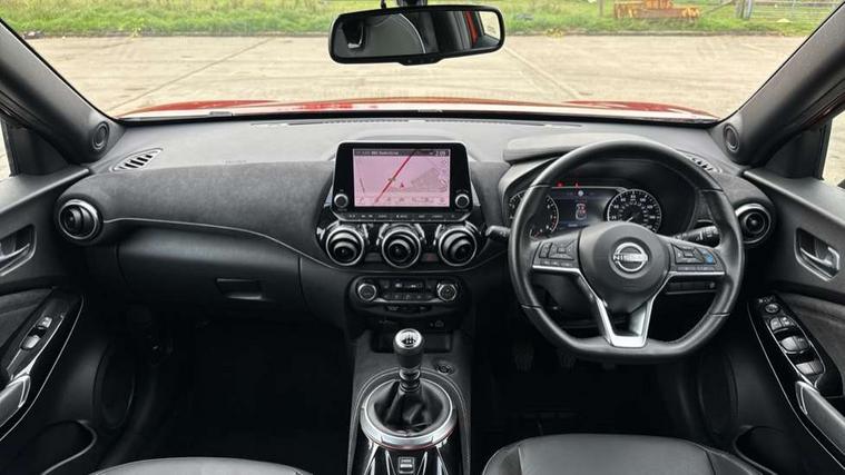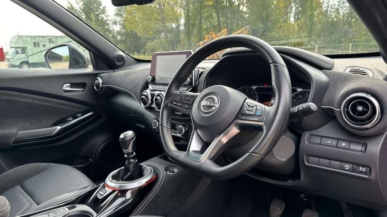 7" full colour TFT screen combimeter, Apple CarPlay and Google Android auto, Drive modes select (Eco, normal and sport), Emergency and breakdown call, Front parking sensor, Idle start/stop system, Intelligent lane intervention, Lane departure warning system, Nissan connect 8" touch screen entertainment system, Nissan connect nav with TomTom traffic, Nissan connect services and Wifi connection, Outside temperature sensor, Power Steering, Rear parking sensor, Traffic sign recognition, Trip computer, Voice recognition, Gasoline particulate filter, 10 Bose speakers 6 speakers and 2 headrest speakers for driver/passenger seats, Bluetooth system, USB, Aux-in and 12V socket, Bose personal sound stage control, DAB Digital radio, Rear console USB port, Auto dimming interior rear view mirror, Auto headlights, Automatic hazard signal with emergency stop signal, Body colour bumpers, Body colour door handles, Electrically adjustable door mirrors with integrated indicators, Follow me home headlights, Front and rear electric window with one touch driver window, Heated and auto folding door mirrors, High beam assist, LED daytime running lights, LED front fog lights, LED headlamps, LED rear fog lamp, LED rear lamps, Rain sensor windscreen wipers, Rear privacy glass, Rear side wing doors, Rear wiper, Satin silver front bumper finisher, Thermaclear heated windscreen, Three blink turn signal, 3 height adjustable rear headrests, 3 seat bench in 2nd row, 60/40 split folding rear seat, Automatic climate control, Card holder on driver sunvisor, Door ambient lighting, Driver and passenger sliding and reclining seats, Driver seat back pocket, Driver side rear coat hanger, Driver/passenger sunvisors and vanity mirrors, Front and rear cabin lights, Front armrest, Front door pockets with bottle holders, Front head restraints, Front passenger isofix child seat anchorage point, Front/rear passenger grab handles, Gear console ambient circle lighting, Grey synthetic leather kneepad, Heated front seats, Height adjustable driver's seat, Height adjustable passenger seat, Internal chrome door handles, Leather gearshift knob, Leather steering wheel, Luggage board, Luggage space lighting, Monoform sporty seats, Multifunction steering wheel, Passenger seat back pocket, Rear door bottle holders, Single front passenger seat, Telescopic steering wheel adjustment, Two cupholders in front centre console, Two rear isofix child seat anchorage points with top tether, Welcome light and console tray ambient lighting, Advanced safety shield pack - Juke, ABS with EBD and brake assist, Active ride control, Active Trace Control, Driver and passenger airbags, Driver and passenger side airbags, Electric handbrake with auto hold function, Electronic Stability Programme (ESP), Front and rear curtain airbags, Height adjustable seatbelts, Hill start assist, Intelligent emergency braking with pedestrian and cyclist recognition, Rear door child safety locks, Seatbelt reminder for driver/front passenger and rear seats, Single tone horn, Three 3 point rear seatbelts, Traction control, Tyre pressure monitoring system, VDC Dynamic Vehicle Control, Ventilated rear brake discs, Alarm, Immobiliser, Intelligent key and start push button with walk away lock and approach unlock functions, Remote central locking, 19" Akari alloy wheels,