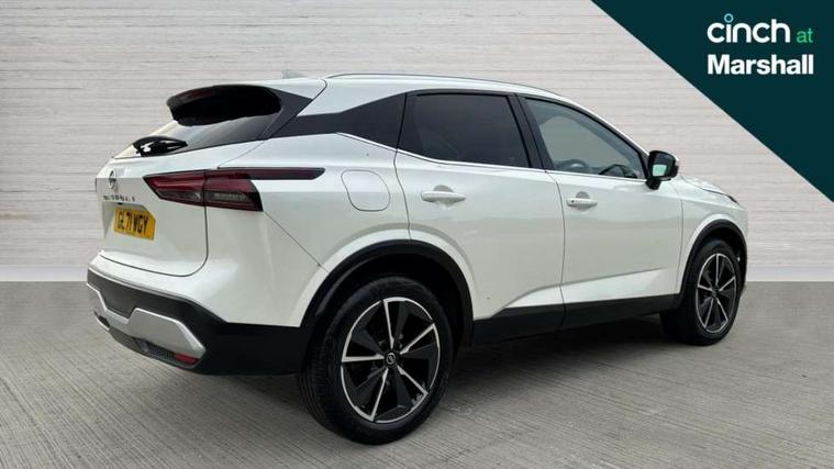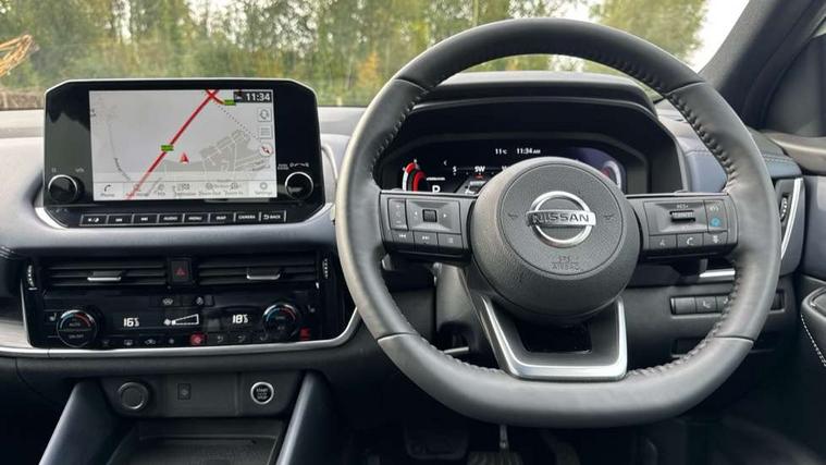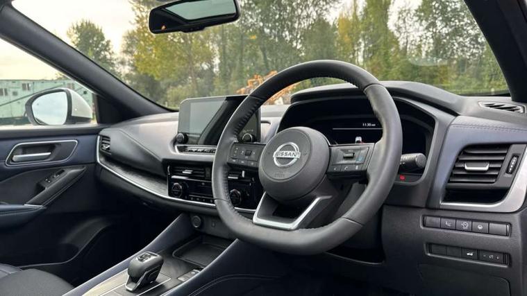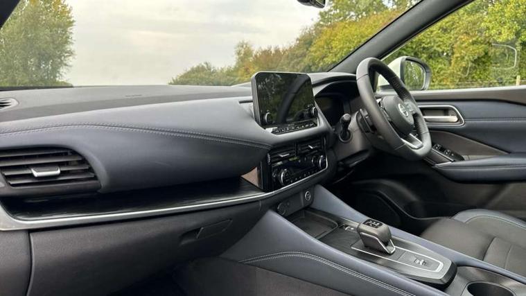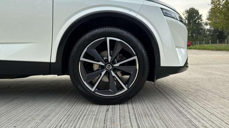 Blind spot warning, Drive modes (sport, normal, eco), Electric speed sensitive power steering, Emergency and breakdown call, Front and rear parking sensors, Full Digital 12.3" TFT Digital Combimeter, Google maps services - search, weather, 3D maps and Google street view, Hands free power tailgate, Idle stop/start system, Intelligent around view monitor, Intelligent Cruise control (ICC), Intelligent driver alert system, Intelligent forward collision warning, Intelligent lane intervention, Lane departure prevention, Lane departure warning system, Moving object detection, Nissan connect 9" touchscreen infotainment system, Nissan connect navigation, Push button starter, Rear cross traffic alert, Remote control services - door locks, lights, horn and car locator, Telematics - notifications and connectivity services, TomTom live traffic services, Traffic sign recognition with legal speed adjustment, Trip computer, Virtual personal assistant and firmware over the air capability, Wireless Apple CarPlay and wired Android Auto, Wireless charging pad, 6 speakers, AM/FM audio system with DAB, Bluetooth audio streaming, Front USB connections (Type-A and Type-C), Rear USB charging only ports (Type-A and Type-C), Auto dimming rear view mirror, Auto rear wiper when reversing, Body colour mirror caps, Body coloured door handles, Bodyside mouldings, Chrome side window finisher, Door handle with button, Dusk sensor, Electric auto folding door mirrors, Electrically adjustable and heated door mirrors with LED turn indicator, Fixed panoramic glass roof with electric sunshade, Follow me home headlights, Front and rear LED turning signals, Intelligent auto headlights, LED daytime running lights, LED rear lights, One touch front and rear electric windows with remote opening and closing, Partially body coloured bumpers, Privacy glass, Rear roof spoiler, Rear side wing doors, Rear styling plate, Roof rails, Shark fin antenna, Splash free rain sensing wipers, Super UV and infrared cut glass, Three blink turn signal, 12v power socket in dashboard and luggage, 2 way electrical driver lumbar adjustment, 2x Rear coat hooks, 3 bench rear seats in 2nd row, 3 rear headrests, 4 folding assist grip, 6 Luggage hooks - 4 on floor, 2 on side, 60/40 split folding rear seat bench, 8 way electric adjustable drivers seat, Ambient lighting around centre console, Ambient lighting in front doors, Centre console storage tray, Chrome interior door handles, Cloth/syntech leather monoform upholstery, Dark headlining, Driver and front passenger sunvisors with illuminated vanity mirrors, Driver seat back pocket, Dual zone automatic climate control with pollen filter, Front and rear door storage, Front cupholders x 2, Front door with bottle holders, Glovebox with light, Hard trunk cover, Height adjustable front headrests, Leather steering wheel, Luggage board system, Luggage space lighting, Manual lumbar support on passenger seat, Manually adjustable passenger (slide recline + lifter), Multifunction steering wheel, Passenger seat back pocket, PVC front centre console and armrest, Rear armrest with 2 cupholders, Rear door bottle holders, Single front passenger seat, Soft PVC kneepad, Steering wheel gearshift paddles, Steering wheel switches, Tilt/telescopic adjustable steering wheel, Two rear isofix child seat anchorage points with top tether, Welcome light and doors with console tray ambient lighting, Heat pack - Qashqai, Tech Pack (ProPILOT + HUD), 3x3 point rear seatbelt pretensioners + load limiters, ABS, ESP, EBD and brake assist, Active brake limited slip, Auto hold function, Child locks on rear doors, Curtain and front side, far side airbags, Driver and passenger airbags, Driver, passenger and 2nd row rear seat belt reminder, Electronic parking brake, Front seatbelt pretensioners + load limiters, Height adjustable front seatbelts, Hill start assist, Intelligent blind spot intervention, Intelligent front emergency braking with pedestrian, cyclist recognition and junction assist, Intelligent rear automatic braking, Tyre pressure monitoring system, Vehicle dynamic control, Capless fuel filler, Engine immobiliser, Nissan i-key, Rear bumper with silver insert, Remote central door locking with deadlocking, Thatcham Cat.1 alarm, 19" Alloy wheels,