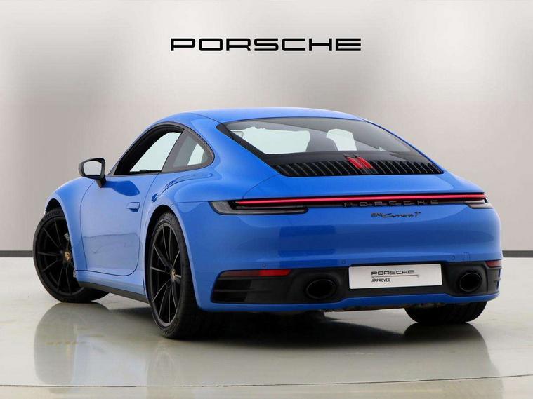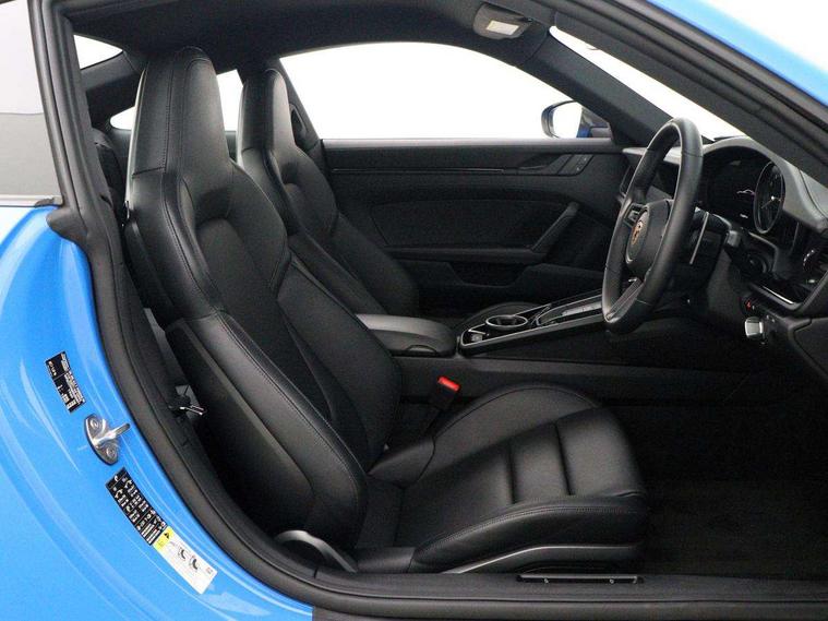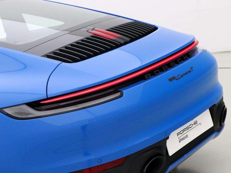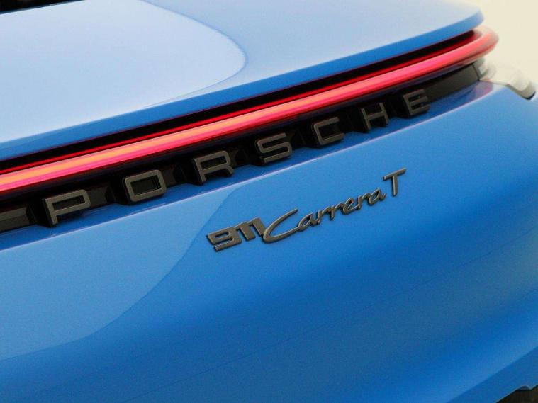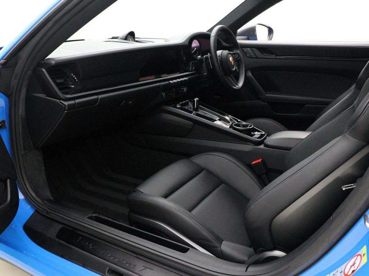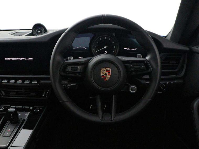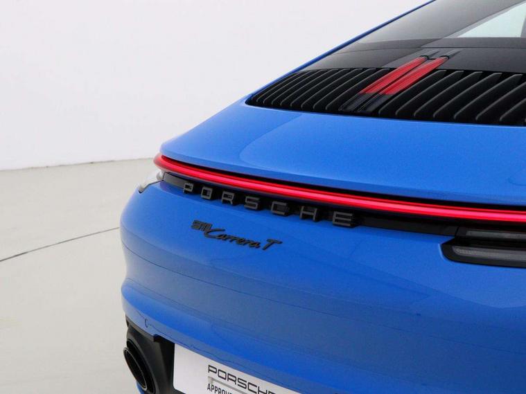 10.9 inch centre display, Automatic start/stop system, eCall emergency system, Gear indicator in rev counter, Instrument cluster with central analogue rev counter and two 7-inch TFT displays, Porsche Communication Management (PCM) including online navigation module, mobile phone preparation, audio interfaces and voice control system, Porsche WET Mode, Service indicator, Smartphone integration with Apple CarPlay and Android auto, Stationary management with HOLD function, Trip computer, Warn and brake assist including pedestrian protection, 8 Speed Porsche Doppelkupplung (PDK), Aluminium block and cylinder heads, Direct fuel injection (DFI), Expansion intake manifold, Four valve per cylinder, Integrated dry-sump lubrication with an on-demand oil pump, McPherson front axle with anti roll bar, Multi-link suspension with anti-roll bar at rear, PASM sport suspension 10mm lowered with helper springs added to rear, Porsche Stability Management (PSM), ABS with extended brake functions, Rear wheel drive, Twin turbocharger intercooled, Two gasoline particulate filter, Two three-way catalytic converters and on-board diagnostics for monitoring emission control system, VarioCam Plus variable valve timing and switchable valve lift, Water cooled with thermal management, 2 USB-C connectivity and charge ports in the centre console storage compartment, DAB Digital radio, "PORSCHE" lettering integrated in taillight strip, 911 Carrera T decorative side logo in agate grey, Auto deploying rear spoiler, Automatic headlight activation including welcome home lighting, Automatically dimming interior and exterior mirrors with integrated rain sensor, Black trim strips, Body coloured bumpers, Electrically adjustable heated exterior mirrors on door waist rails, aspherical on driver's side, Green tinted thermally insulated glass, Heated rear windscreen, Intelligent lightweight body in Aluminium/Steel composite construction, LED auxiliary light units in the front end with position lights, direction indicators and side indicators, Power windows with one touch operation and door seal protection, Rear boot, Retractable door handles, Side air intakes at front with active cooling flaps and air blades, Side skirts trim in black, Slat Inlays on rear lid painted in in high gloss agate grey, Sports exhaust system tailpipes in black, Taillight strip including integral parking lights and rear fog light, Trims on sideskirts in black, Windscreen washer system with aero wiper blades and washer jets, 12V socket in front passenger footwell, 2-zone automatic climate control with separate temperature settings for driver and front passenger, Ascending centre console with storage compartment, Clothes hooks on seat backrests, Driver and front passenger illuminated vanity mirrors, Embossed leather on front center seat, side bolsters and front seat headrests, Front head restraints, Heated front seats, ISOFIX child seat mounting points on passenger seat, Leather headrests embroidered with 911 logo in black, LED door lights, LED footwell lights, LED glove compartment lighting, LED ignition light, LED luggage compartment lighting, LED orientation light, LED reading lights, Lockable glove compartment, Luggage compartment at front, Luggage compartment lid release, Particle/pollen filter with active carbon filter, PDK gear selector with automatic mode, manual gear selection via shift paddles on the steering wheel, Single front passenger seat, Smooth finish leather on steering wheel rim, door handles, door panel armrests and centre console storage compartment lid, Split folding rear seats, Storage compartments in each doors, Two individual cupholders 1x as inlet in centre console and 1x passenger side, 4 piston aluminium monobloc fixed + brake calipers at front and rear + brake calipers with black finish, Brake discs with 330mm diameter at front and rear, internally vented and cross-drilled, Electric parking brake, Electromechanical power brake, Full size two stage airbags for driver and front passenger, Porsche side impact protection system includes side impact protection in doors, curtain, head/thorax airbags for driver/front passenger in each door, Tyre pressure monitoring system, Dashcam prep, Engine immobiliser with remote central locking and alarm system with ultrasonic sound based interior surveillance, Porsche vehicle tracking system (PVTS Plus), Tyre repair kit with sealing compound and electric air compressor,